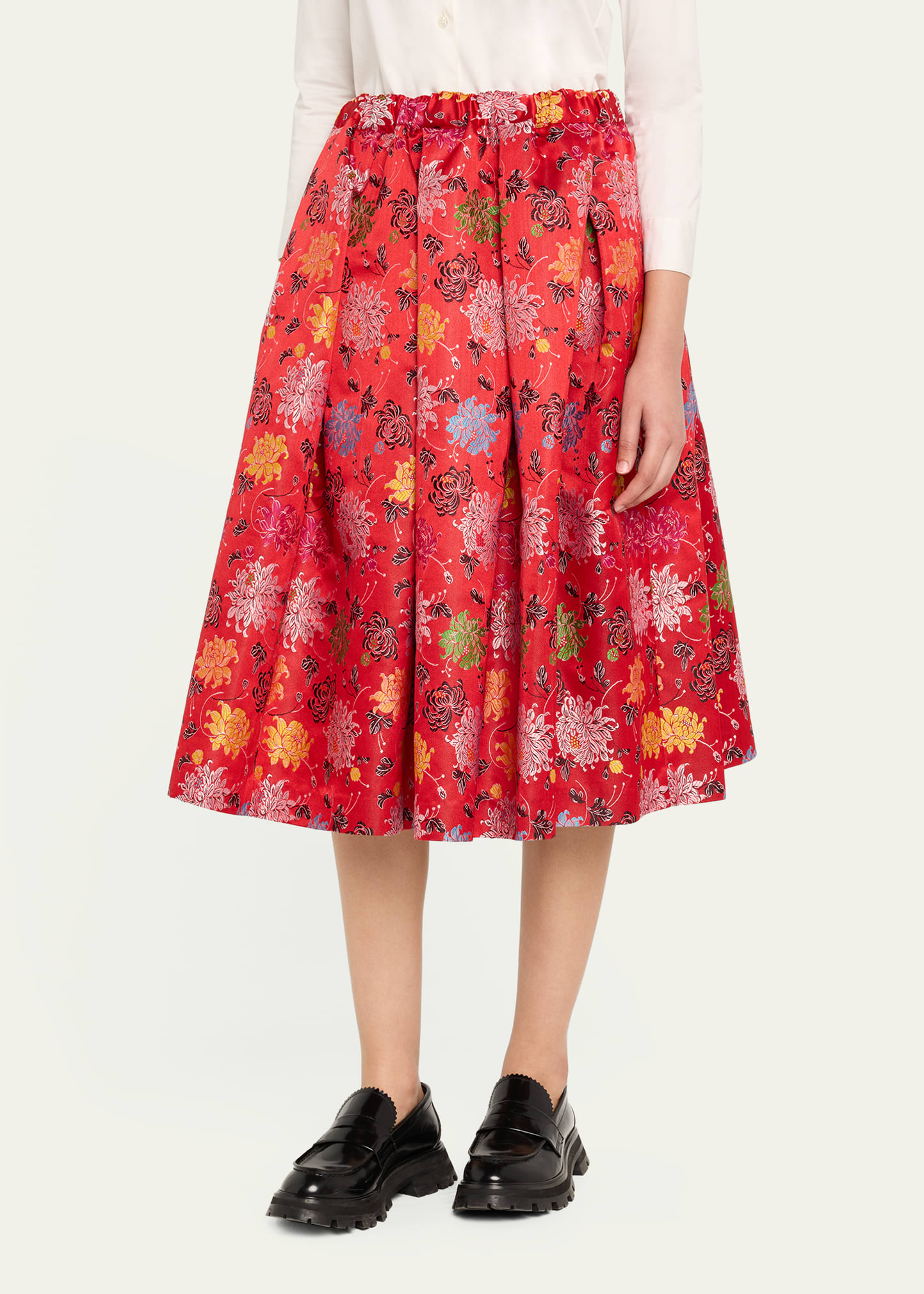 The Red Flower Jacquard Pleated Midi Skirt is not currently available.