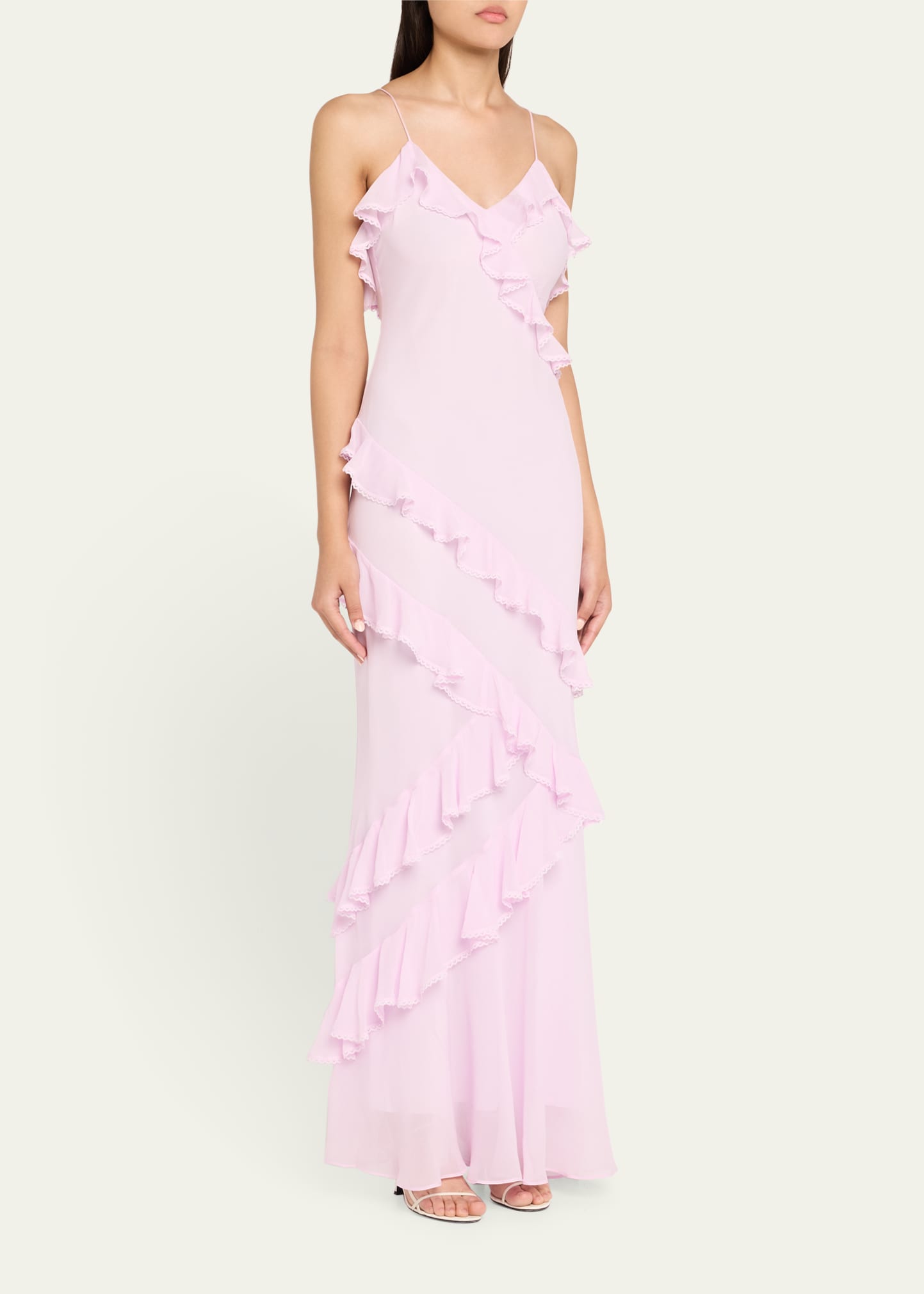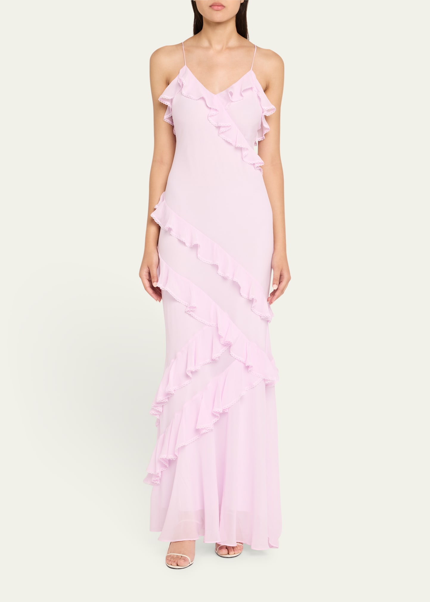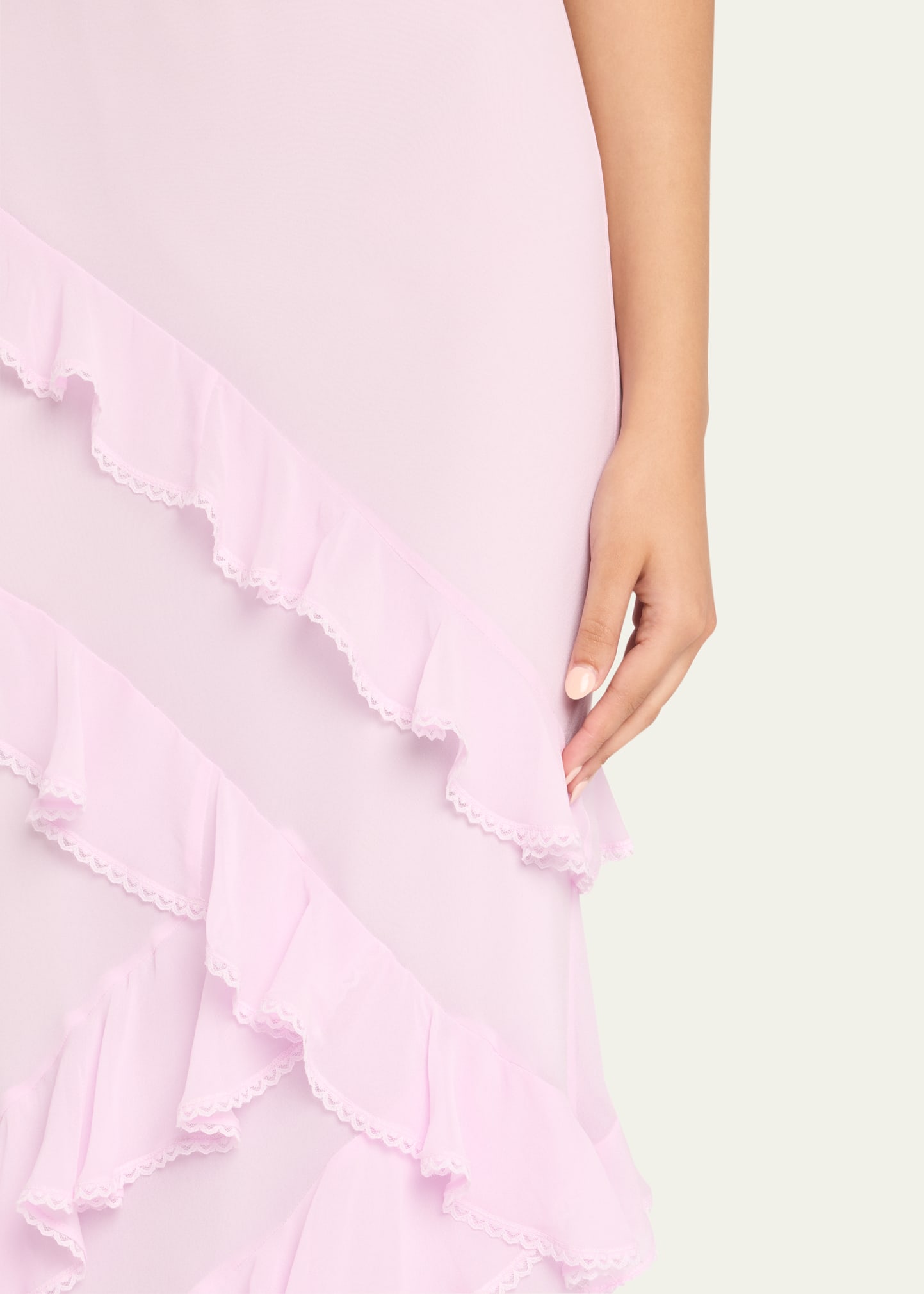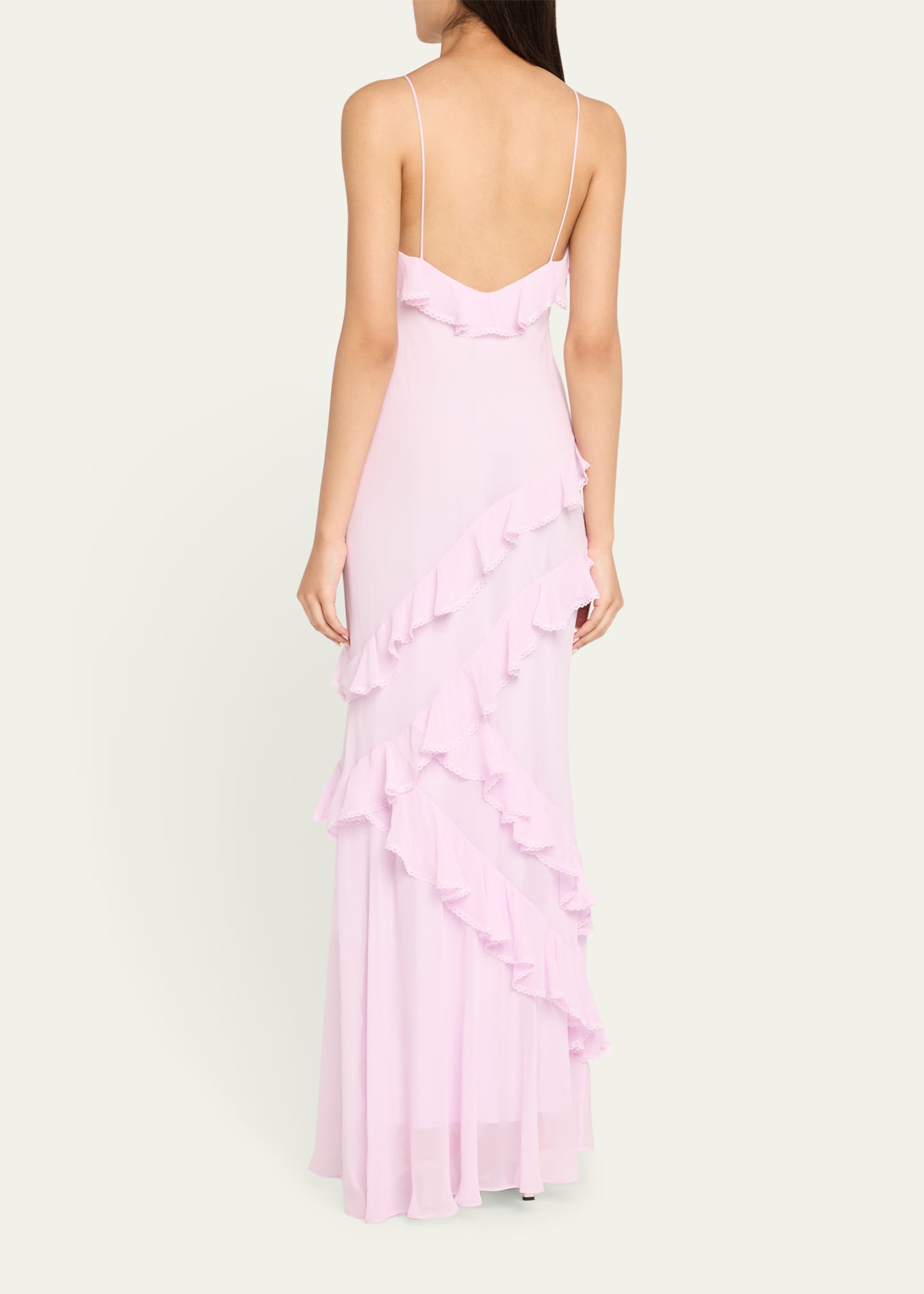 • LoveShackFancy "Rialto" dress designed with a silky charmeuse fabric with asymmetrical ruffles throughout