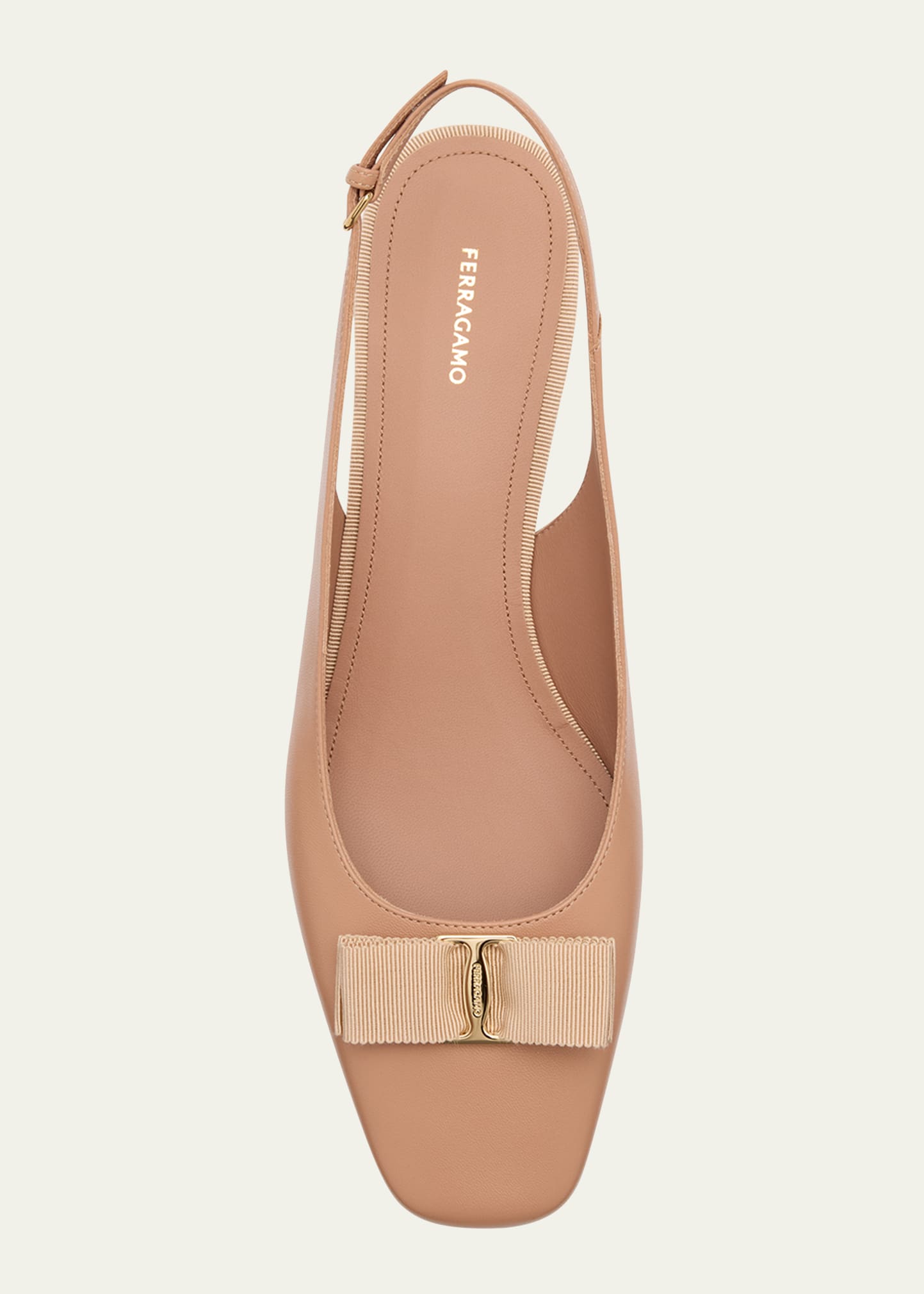 • Ferragamo "Rivada" lambskin leather pumps are new contemporary icon; this chic slingback is simply perfect for the modern lady. With a low heel and elasticated slingback strap, the fit is easy and comfortable, while the leather insole and covered heel match the color of the grosgrain bow, held by a slim signature buckle at the tip.