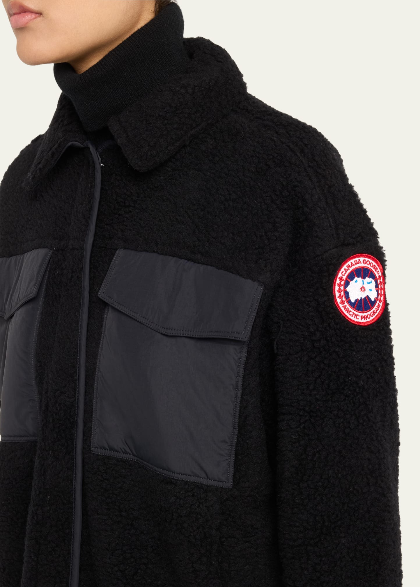 • Canada Goose "Simcoe" lightweight sherpa shirt jacket crafted with Kind High Pile Fleece fabric