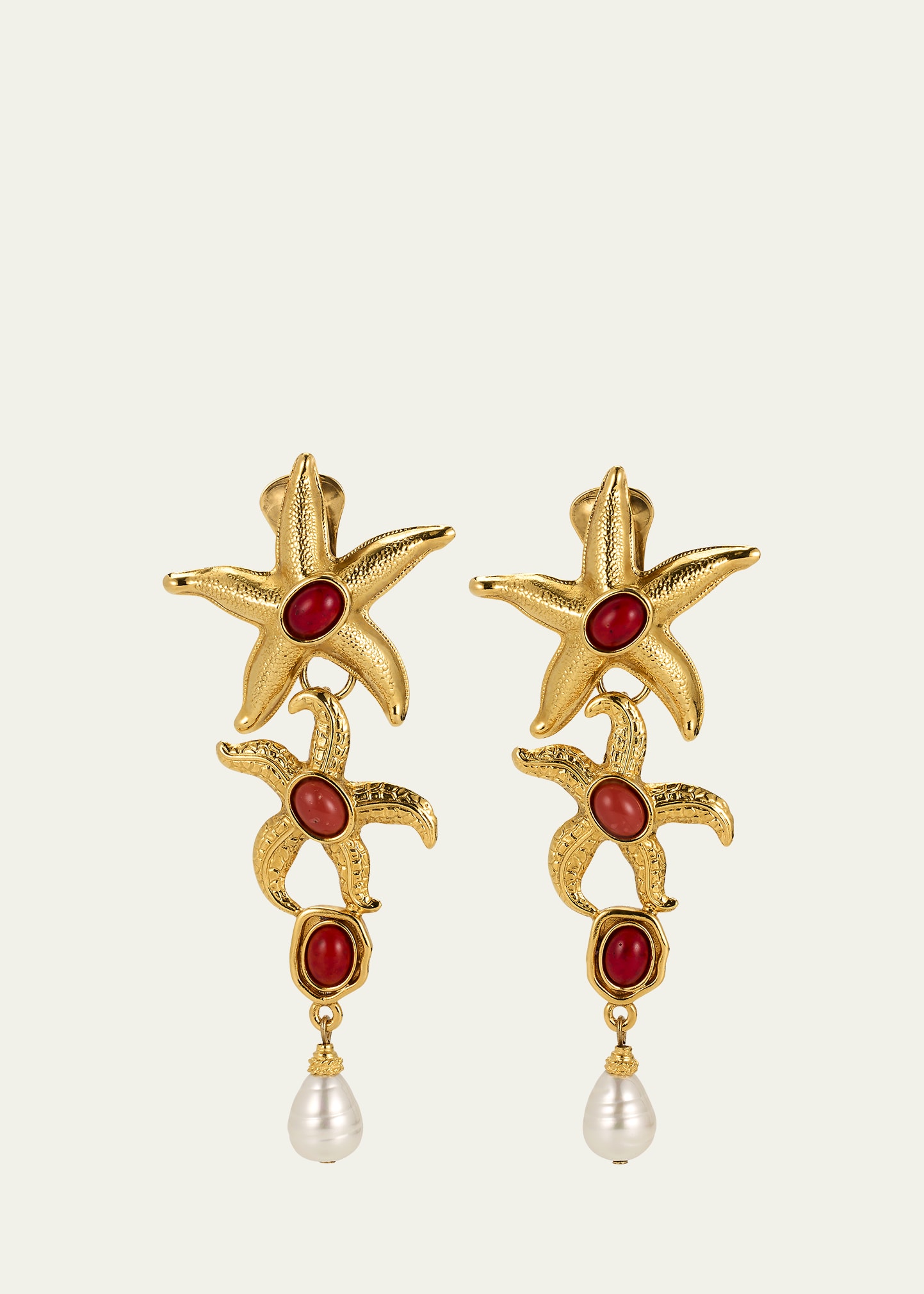 Ben-Amun Starfish Clip On Earrings with Pearly Drops and Coral Stones