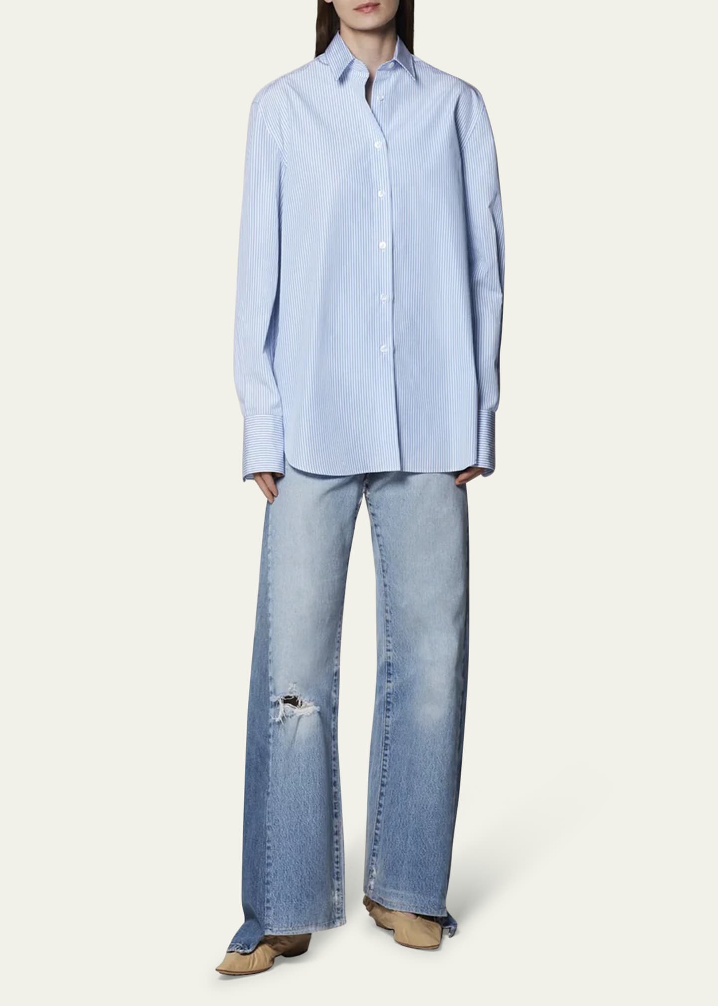 How much does the Another Tomorrow Stripe Oversized Mens Button Down Shirt cost?