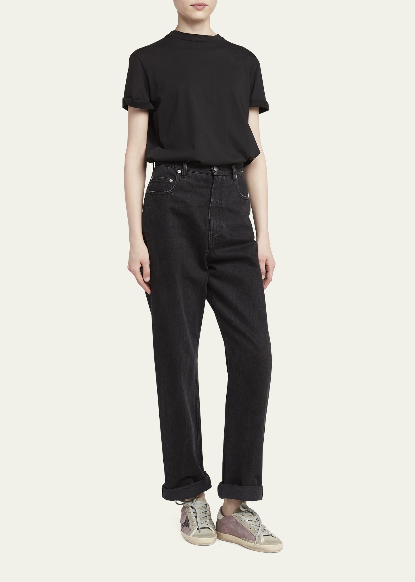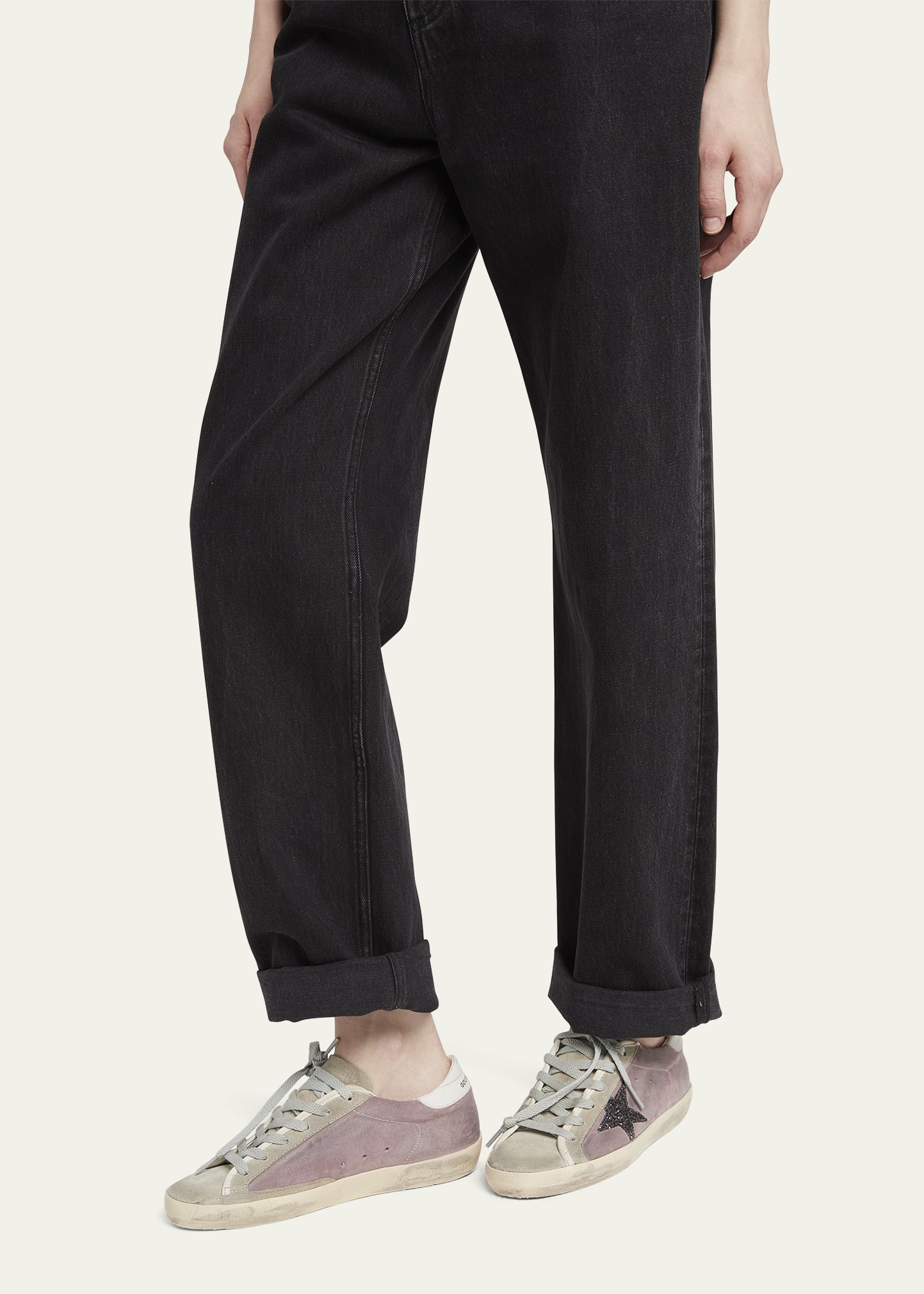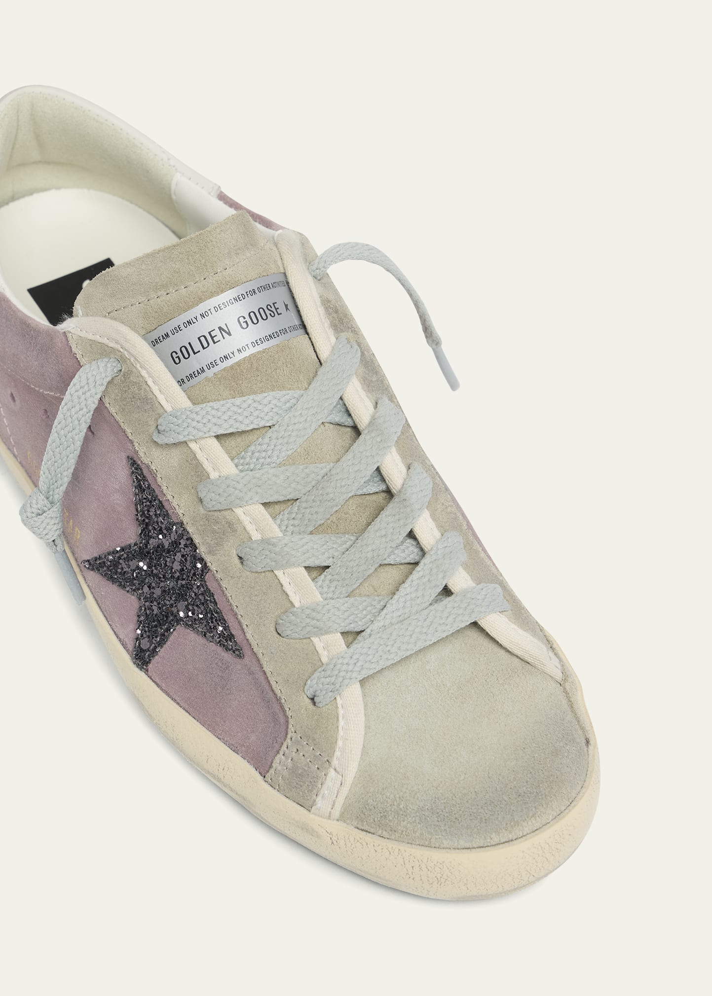 • Golden Goose low-top suede and leather sneakers with glitter trim.