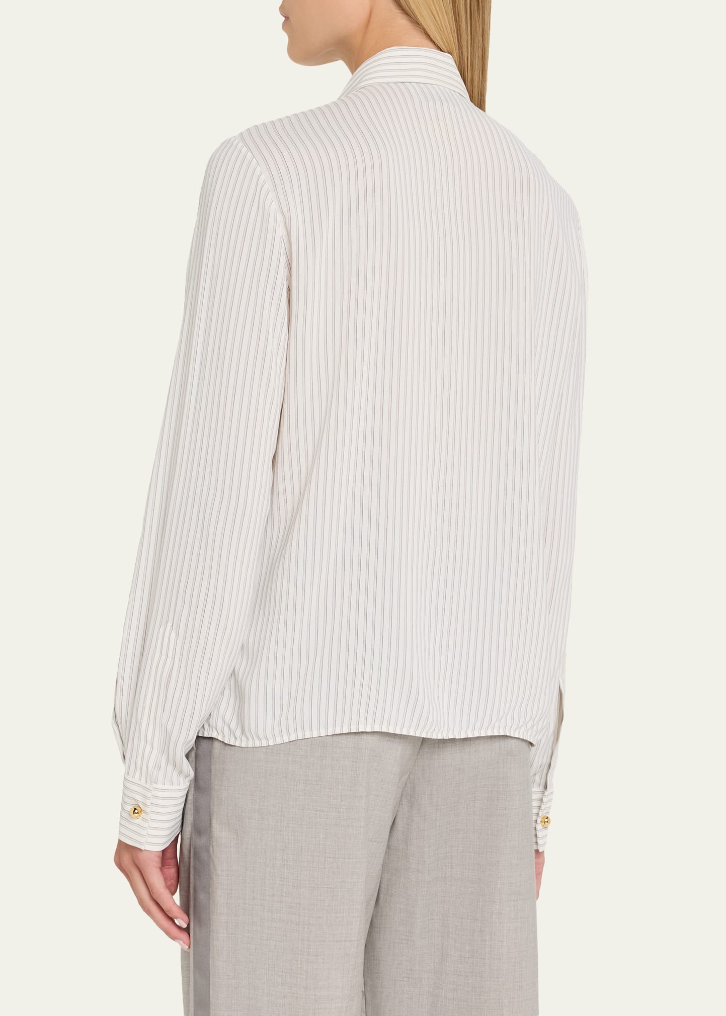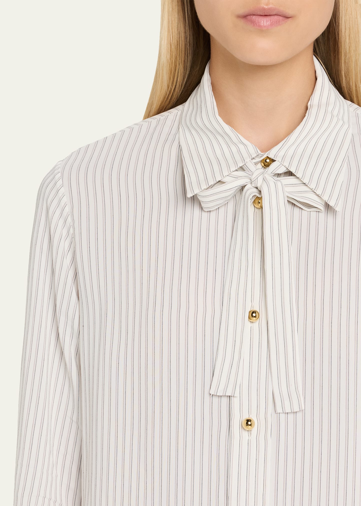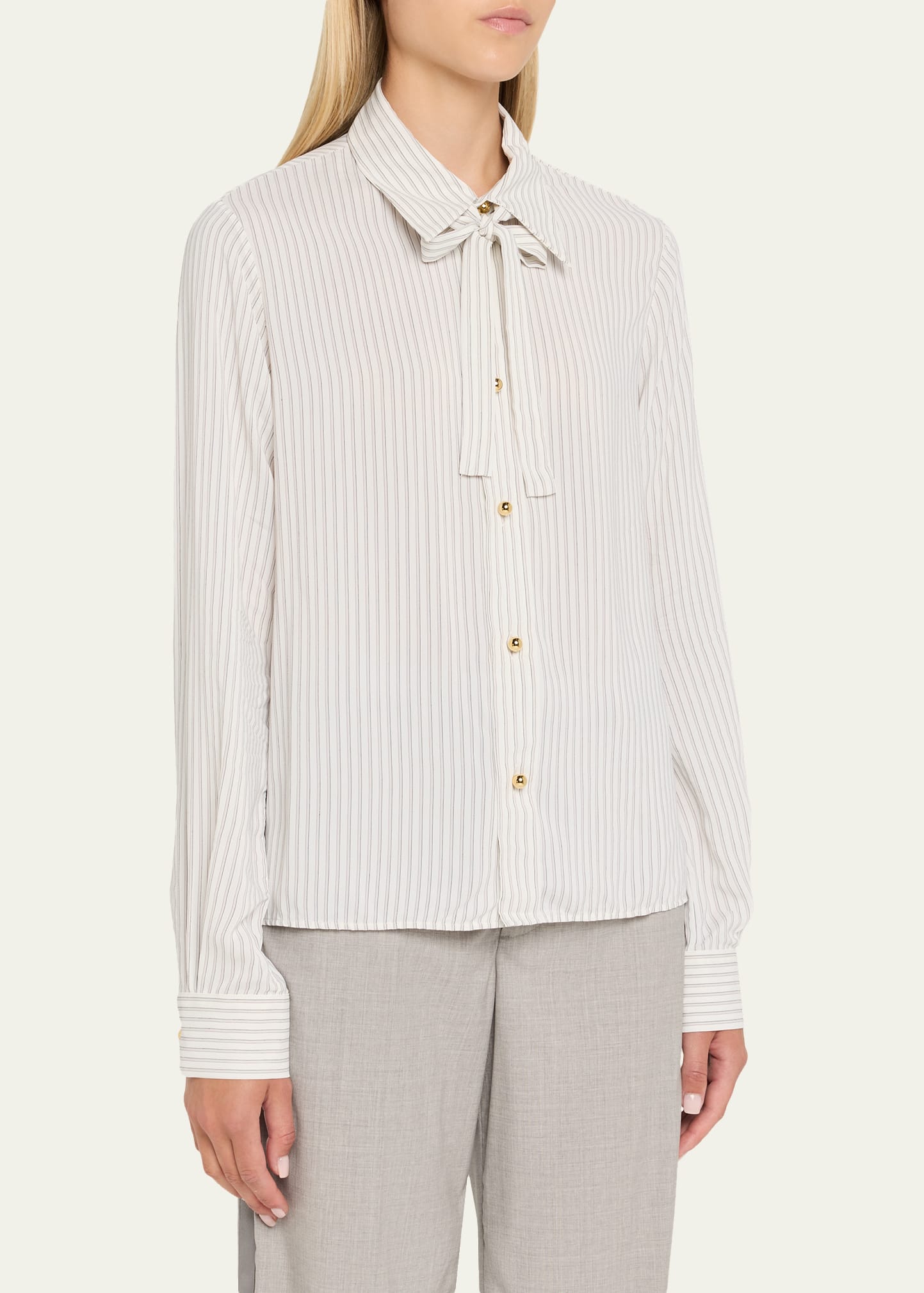 • WE-AR4 "The Academy II" stripe tie-neck blouse in upcycled viscose