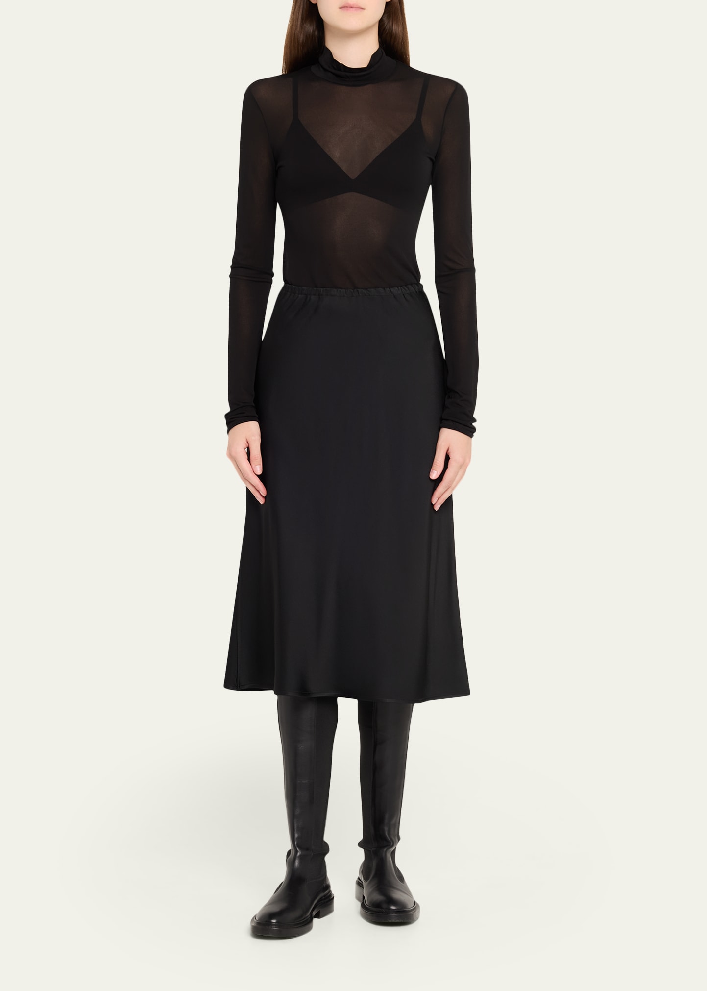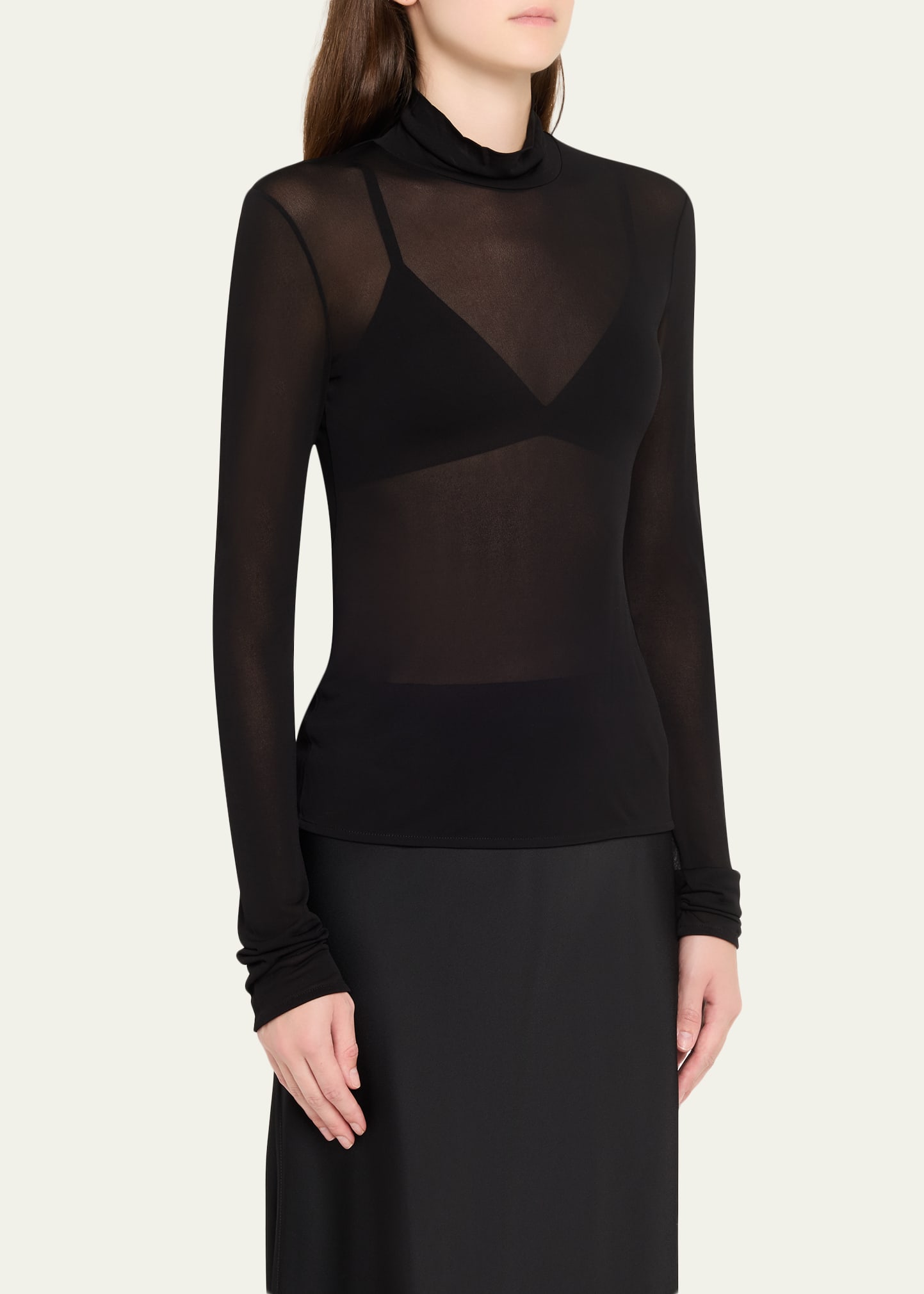 Jil Sander Turtleneck Sheer Long-Sleeve Top
