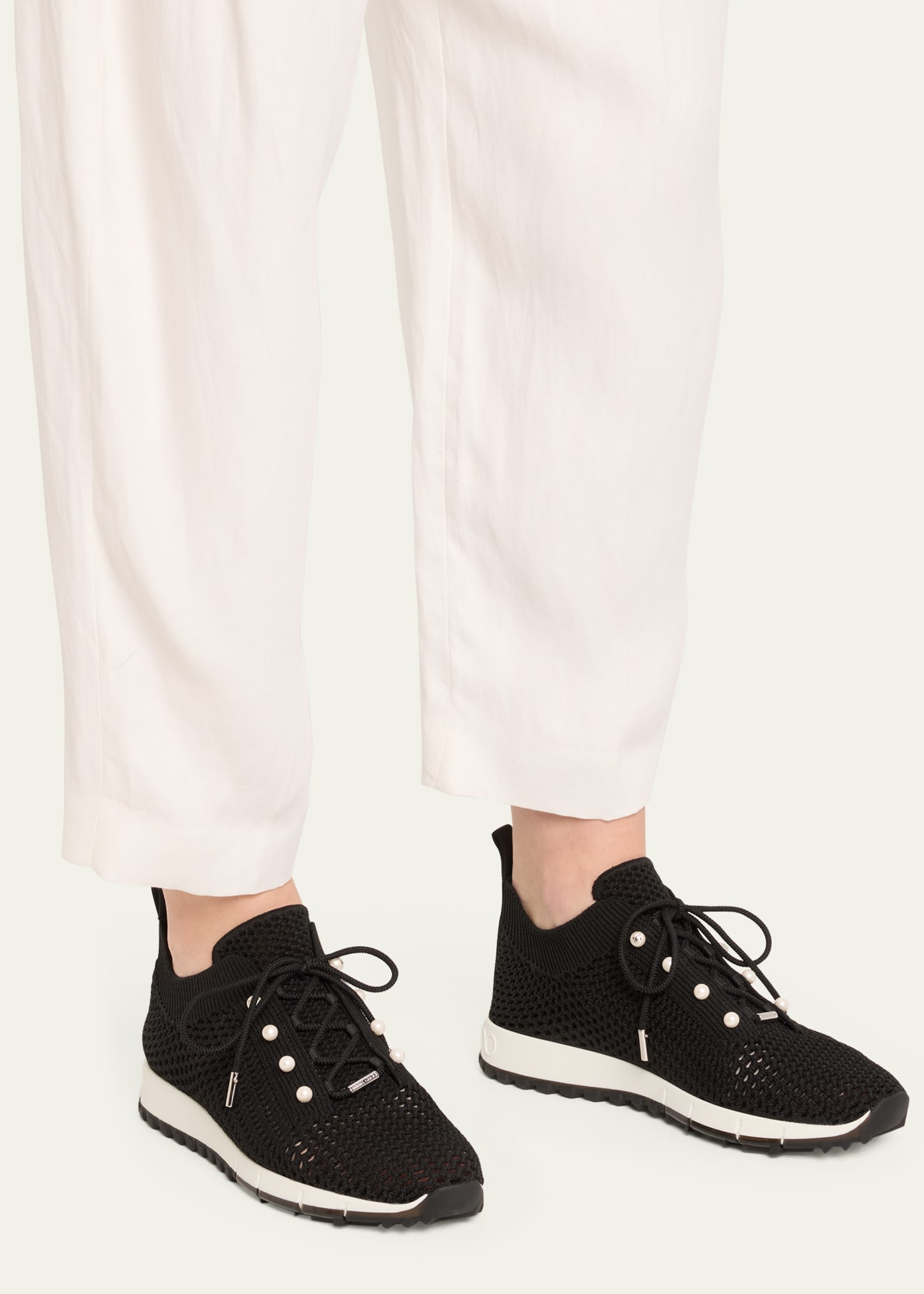 Jimmy Choo Veles Knit Pearly Lace-Up Sneakers