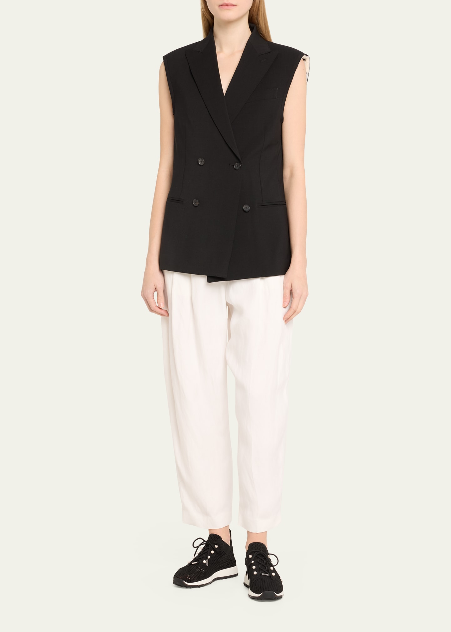 • Jimmy Choo "Veles" stretch knit fabric sneakers with pearly stud eyelets and leather trim