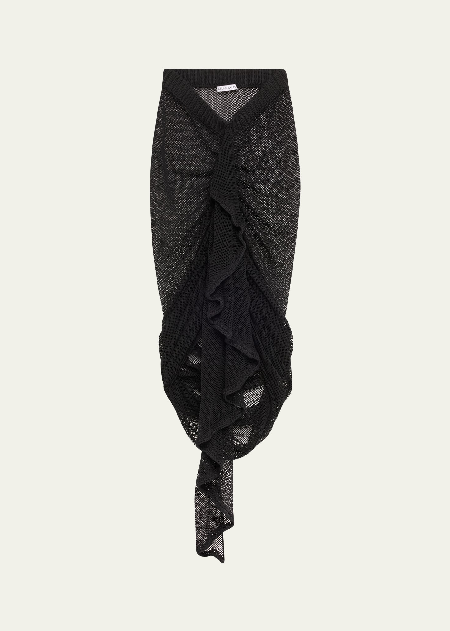 • Aisling Camps "Wave" mesh-knit skirt with a statement ruched and ruffled front detail