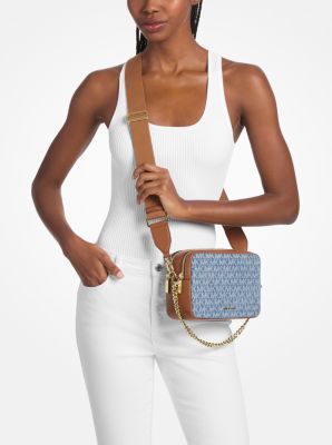 Michael Kors Bryant Medium Logo Jacquard Denim Camera Crossbody Bag