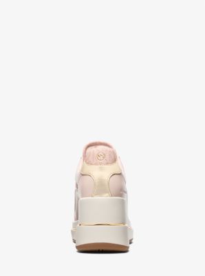 How much does the Michael Kors Emmy Signature Logo And Leather Wedge Trainer cost?