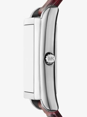 Michael Kors Essex Silver-Tone and Crocodile Embossed Leather Watch