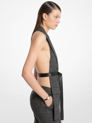 What is the Michael Kors Glen Plaid Wool Belted Backless Blazer price?