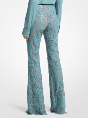 Michael Kors Hand-Embroidered Sequin Floral Lace Flared Pants