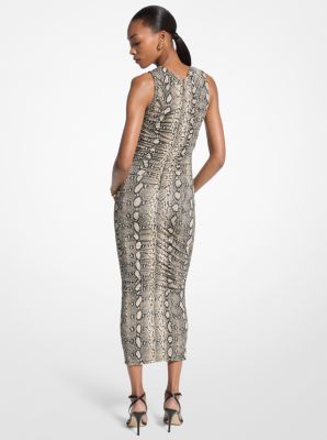 Michael Kors Snake Print Stretch Jersey Ruched Midi Dress
