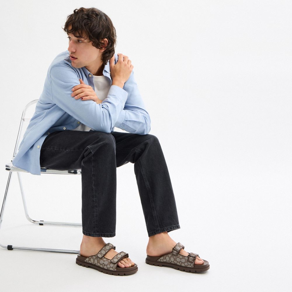 Coach Double Banded Sandal In Signature Jacquard