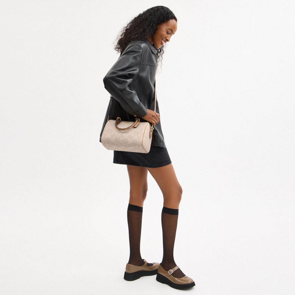 How much does the Coach Rowan Satchel Bag In Blocked Signature Canvas cost?