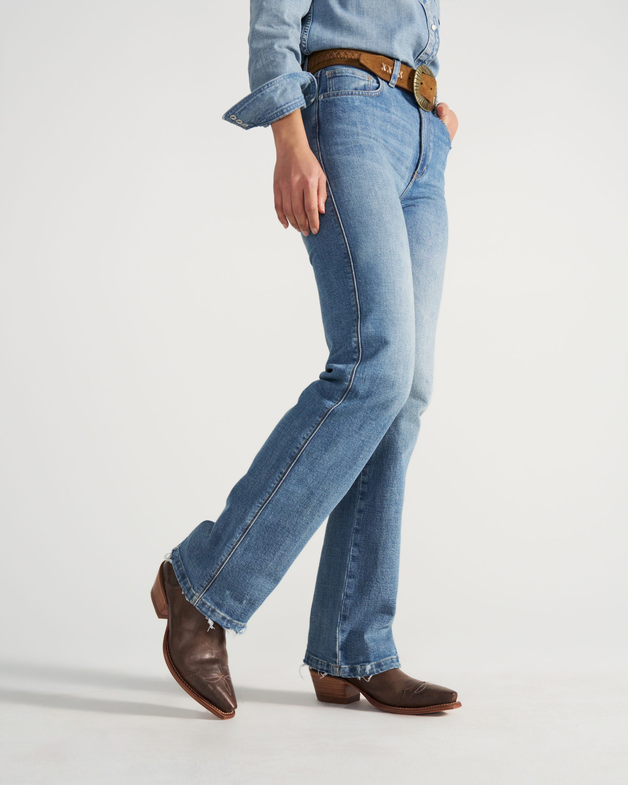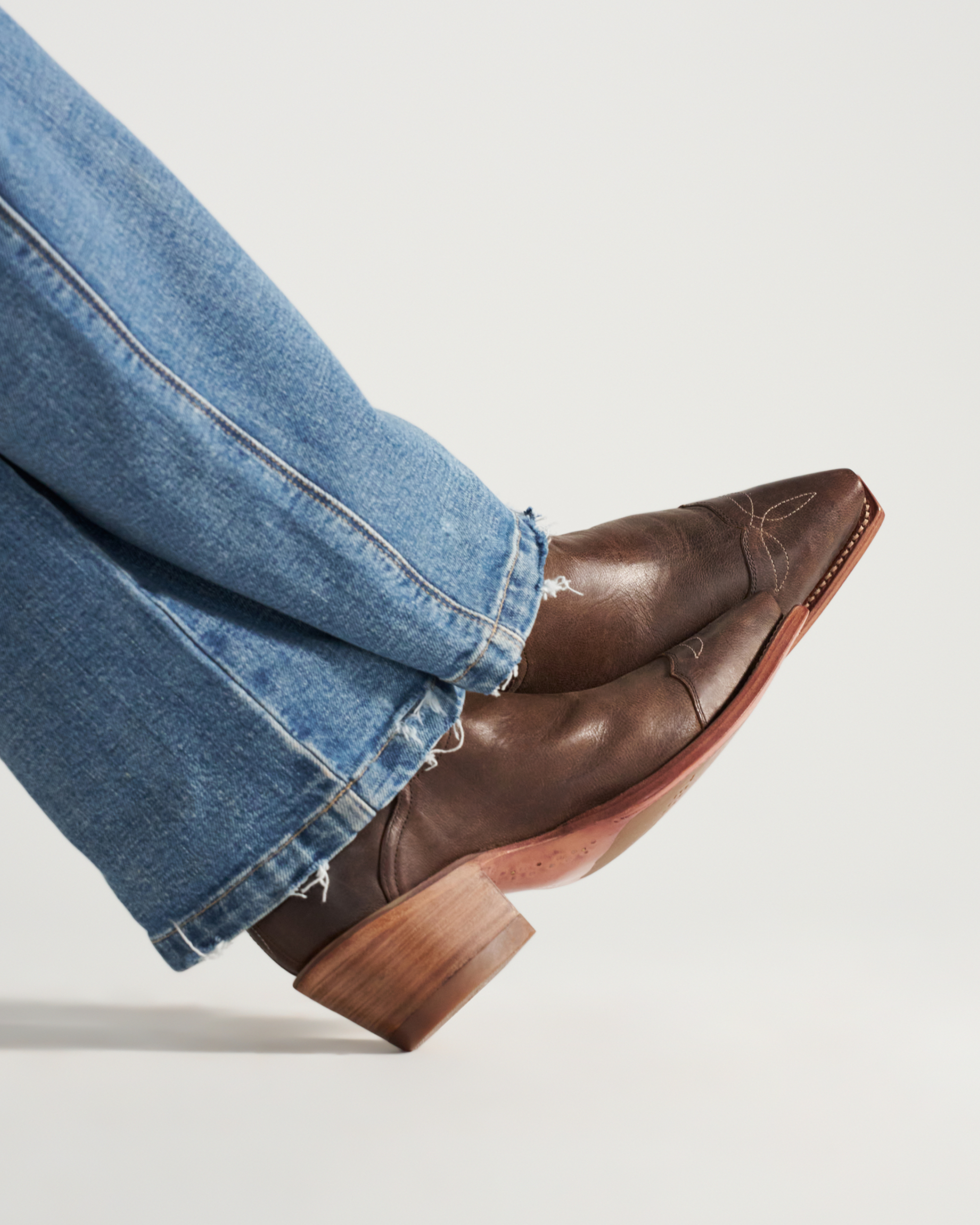 The Rosie stands out for its Western charm and everyday versatility — smooth cowhide, a hybrid sole, and a wire top you can shape to your ankle. A deeper scallop helps prevent rubbing, while subtle stitching keeps the toe classic. Wear it like a boot with jeans, or pair it with skirts and dresses for warm-weather style.