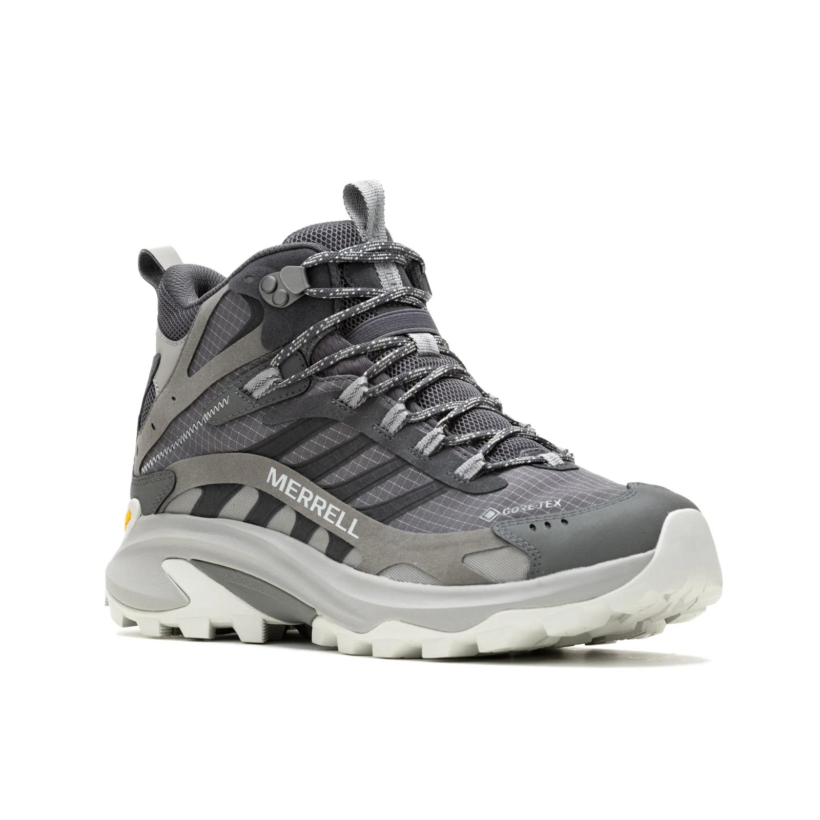 The Moab Speed 2 Mid GORE-TEX® is the latest innovation in hiking from the Merrell brand pairing the knowledge and trail insights from the best-selling hiking boot, the Merrell Moab, with the latest innovations from athletic hikers across the globe. Improved traction with the incorporation of Vibram TC5+ rubber, specially formulated for Merrell, with the an all-new design and traction lugs. Hikers know that comfort is king and the all-new Moab Speed with 30% increase in foam underfoot. Breathability also significantly improved incorporating learnings from Merrell's best selling Merrell Test Lab trail running lineup. Underfoot you will find a secure fit heel counter and a full length rock plate to keep you confident on the trail in any conditions. This version also incorporate GORE-TEX, the most trusted name in waterproofing to keep your feet dry in inclement weather.