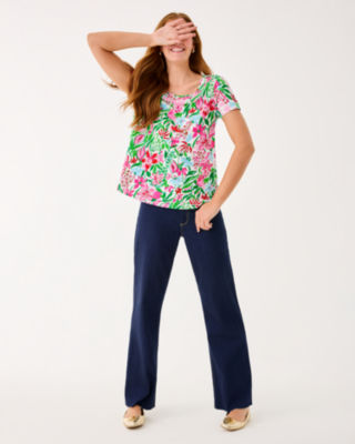 This classic tee is anything but ordinary. Our Etta Scoop Neck Top shines with signature Lilly style and amazing softness. Palm Beach slub jersey gets a fashionable upgrade with a high-low hem.How to buy the Lilly Pulitzer Etta Scoop Neck Top outside the US?
