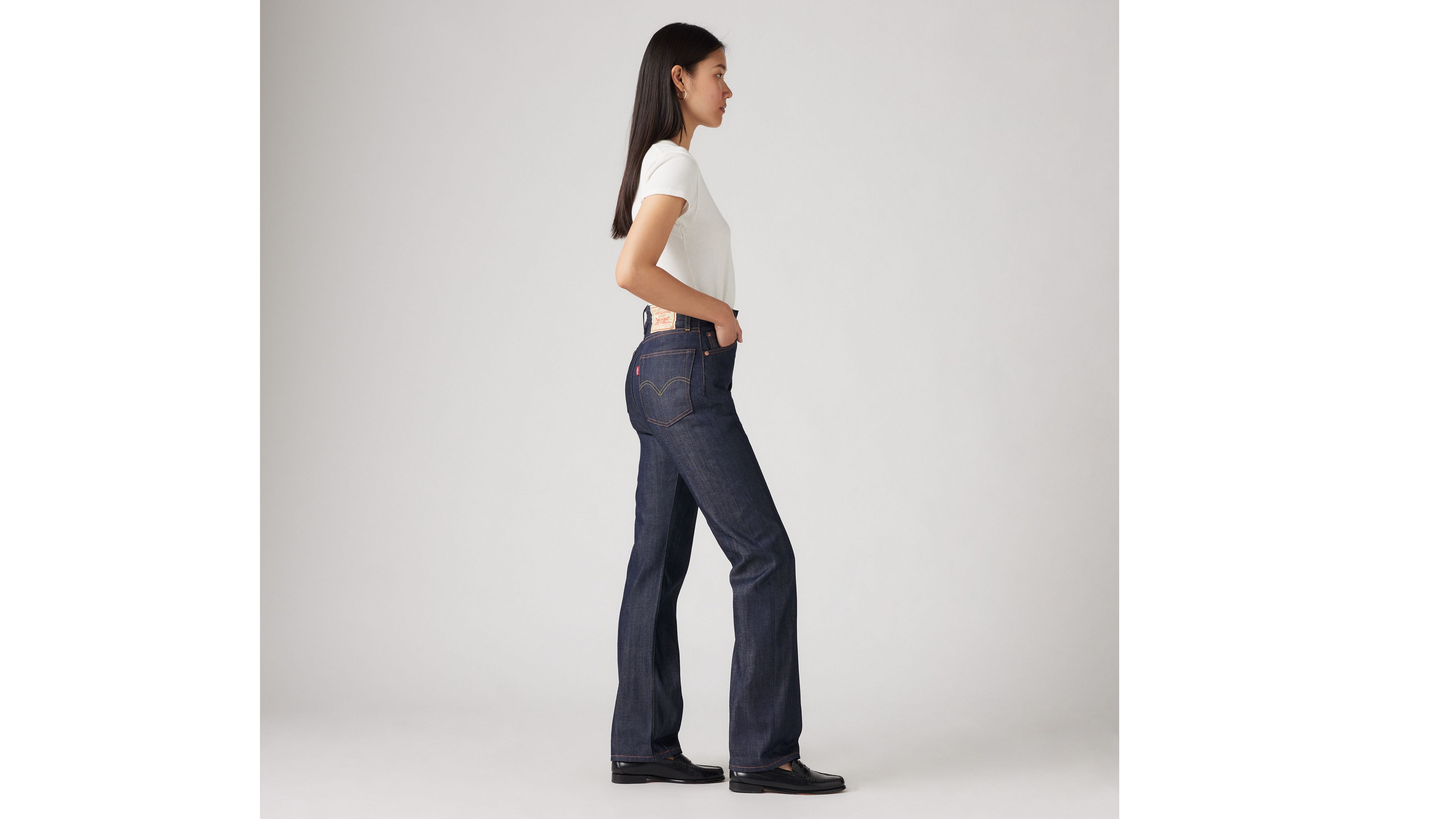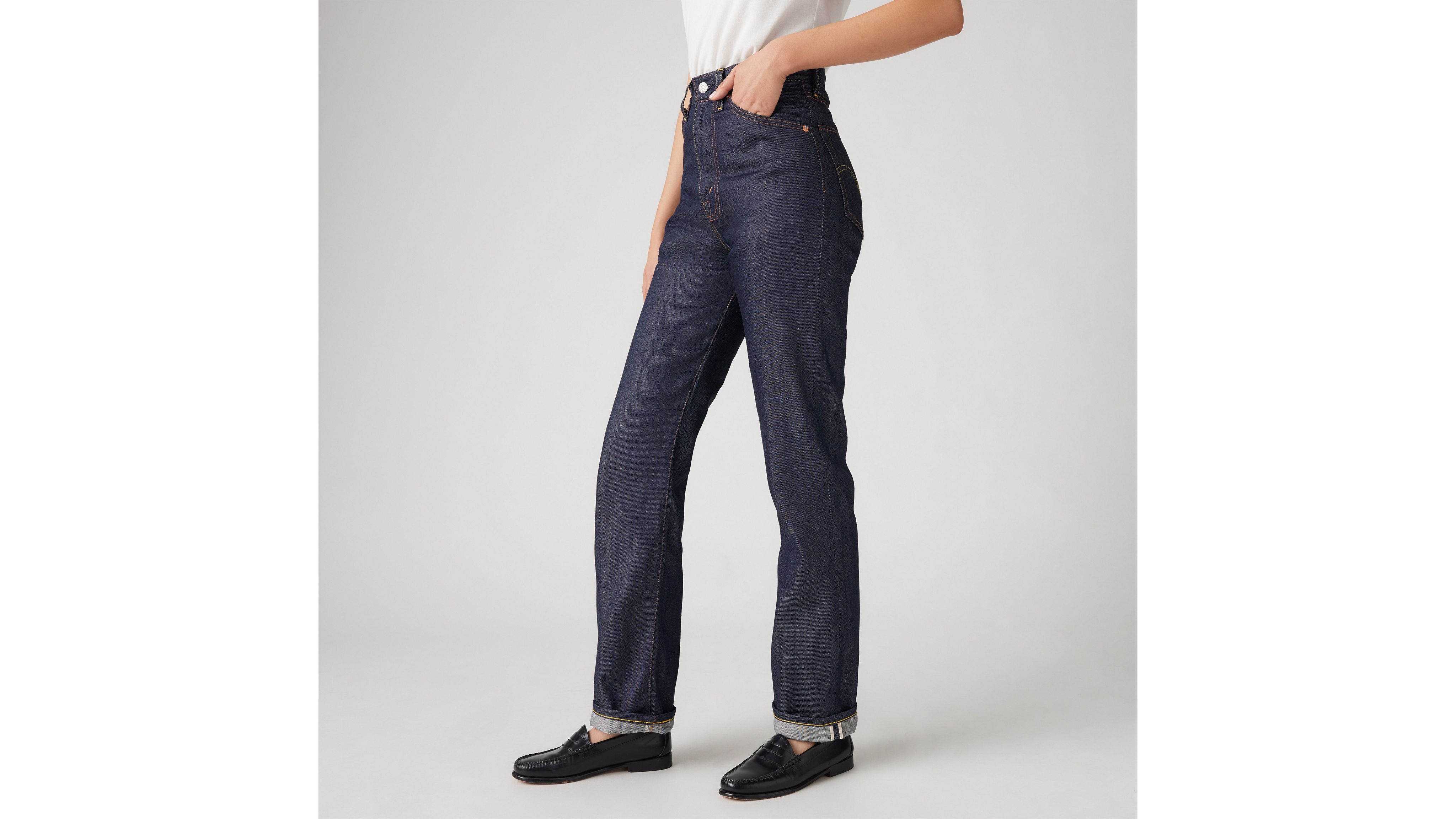 In 1934, we introduced the first five-pocket jean especially built for women: the 701®. Made famous by the premiere American fashion magazine of its time, the 701® had a distinctly high-waisted, more curved fit. Today, we reproduced these glossy magazine-approved 1950s Women's 701 Jeans stitch-for-stitch using premium selvedge denim.