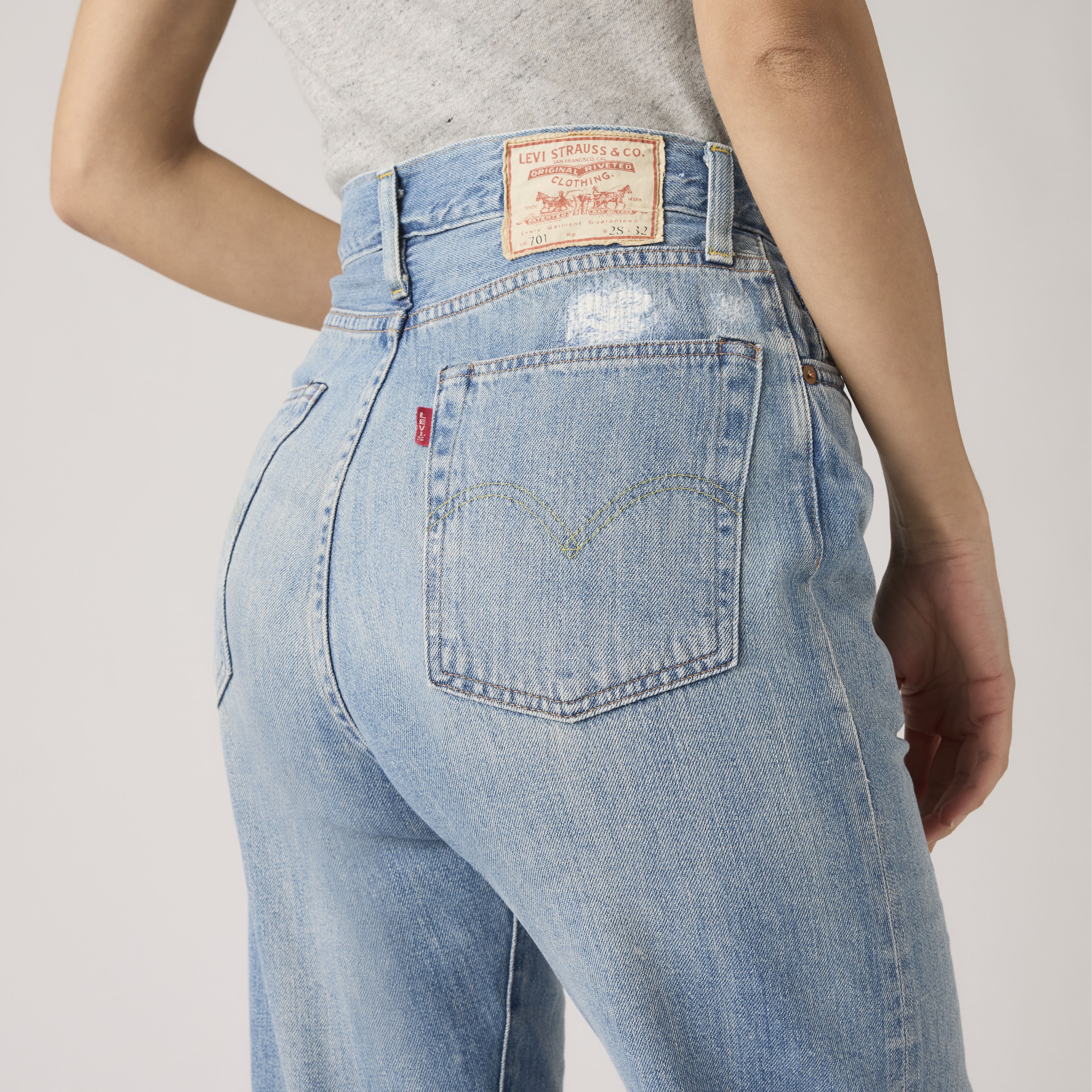 In 1934, we introduced the first five-pocket jean especially built for women: the 701®. Made famous by the premiere American fashion magazine of its time, the 701® had a distinctly high-waisted, more curved fit. Today, we reproduced these glossy magazine-approved 1950s Women's 701 Jeans stitch-for-stitch using premium selvedge denim.