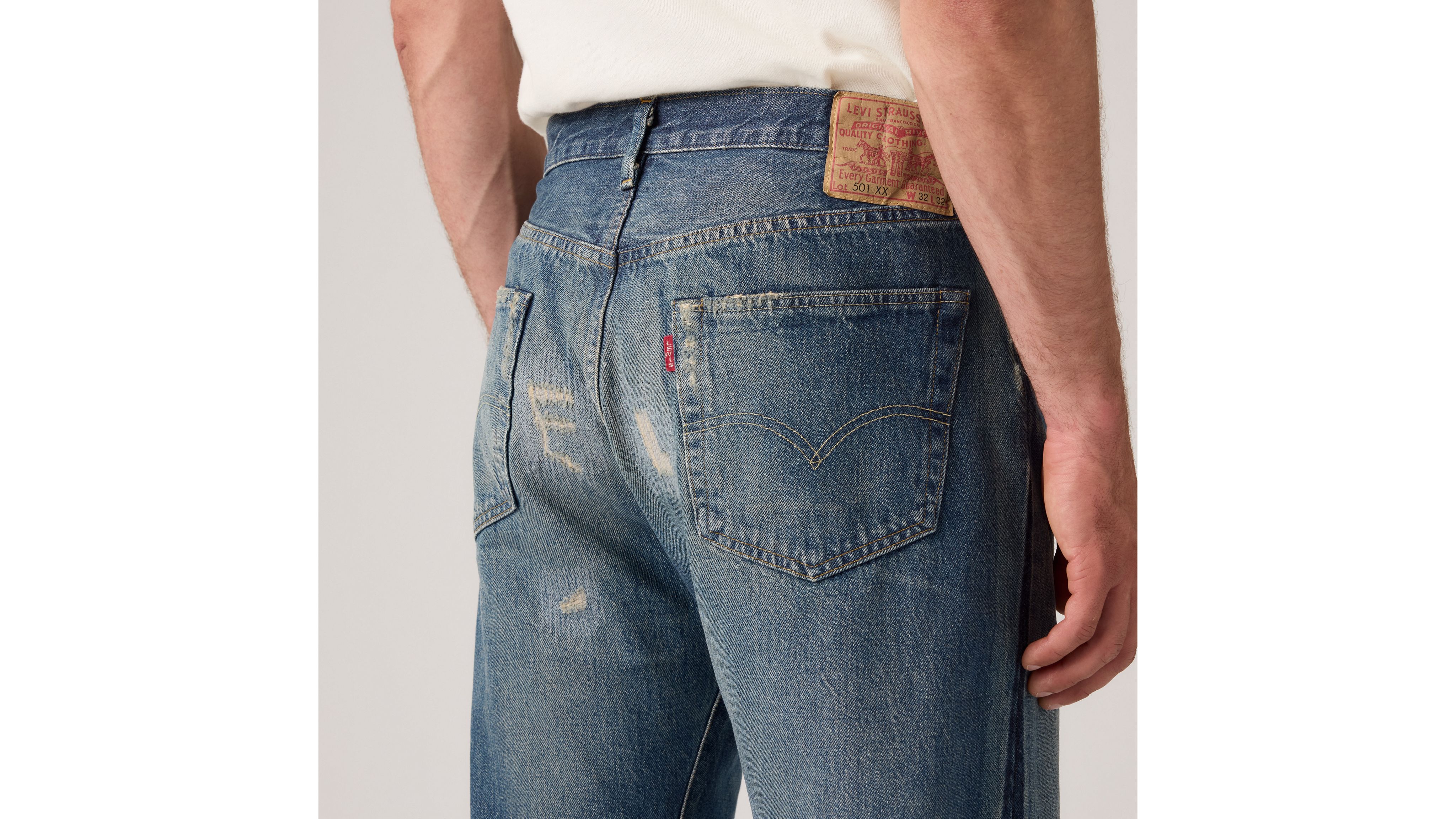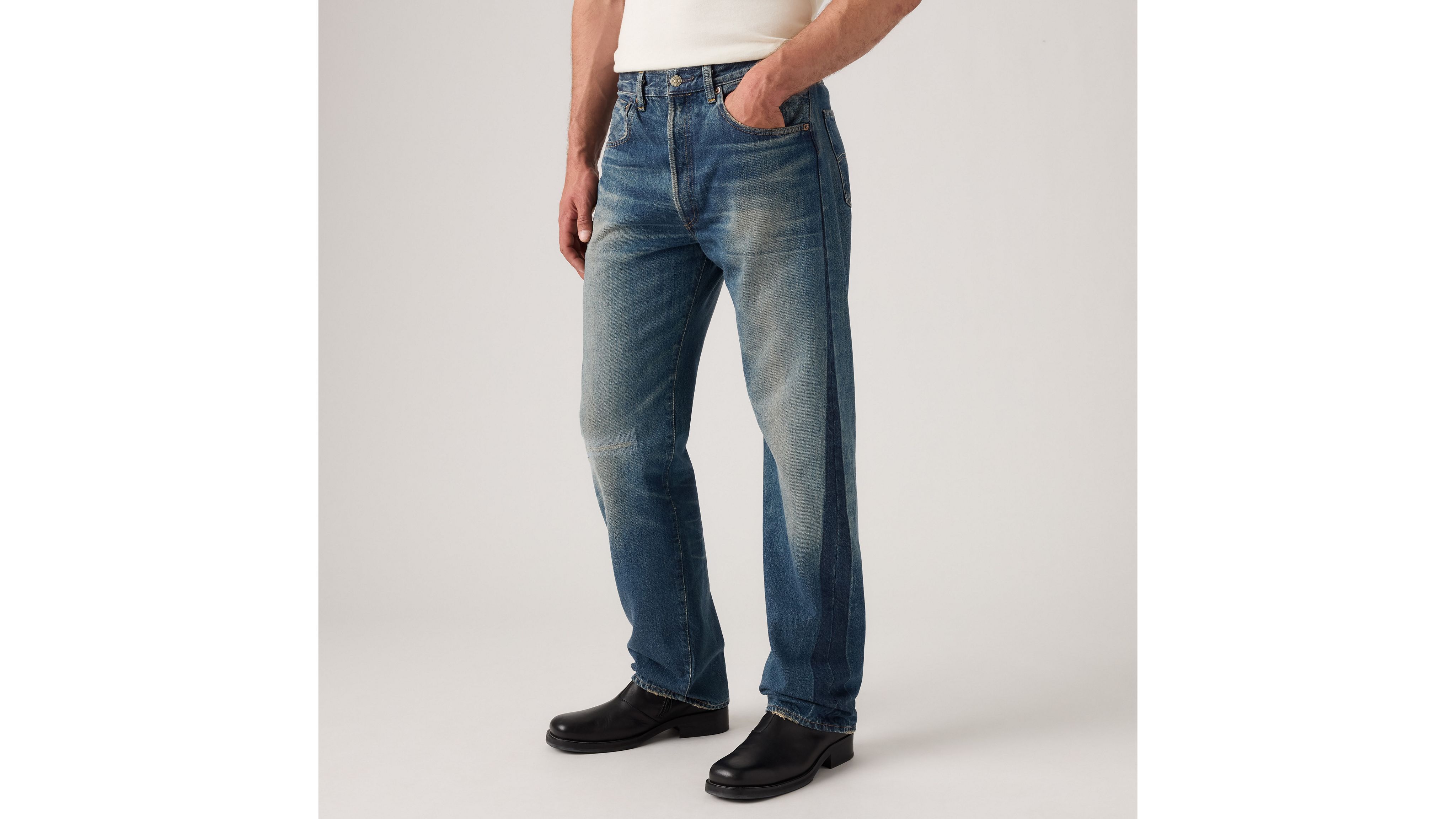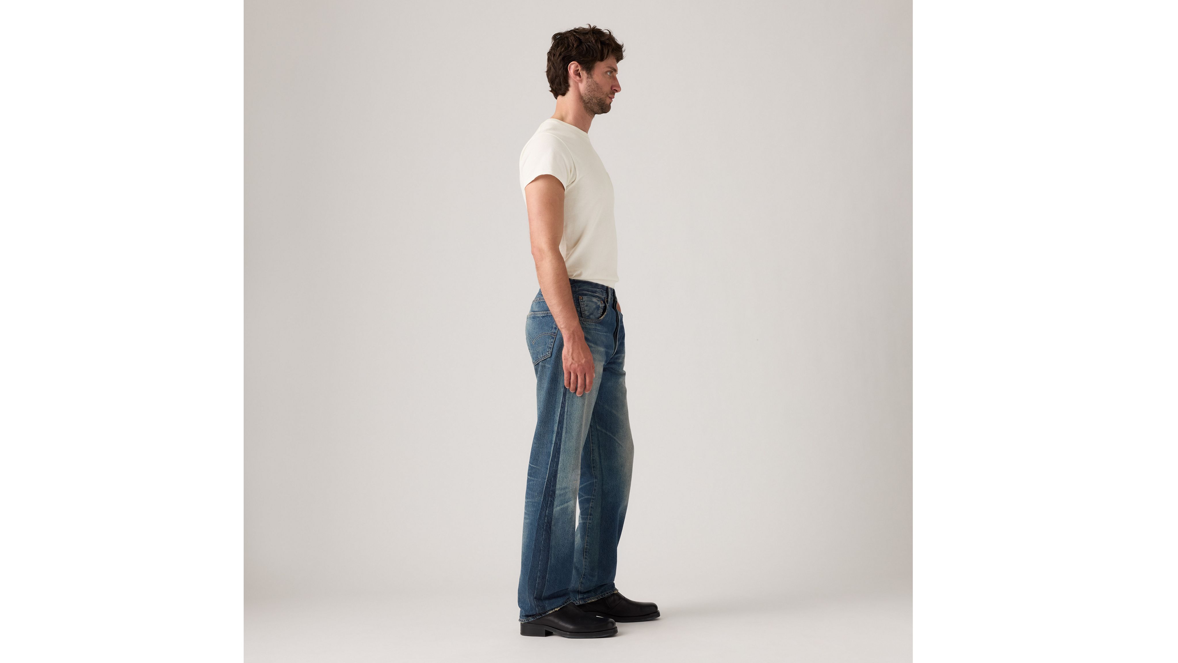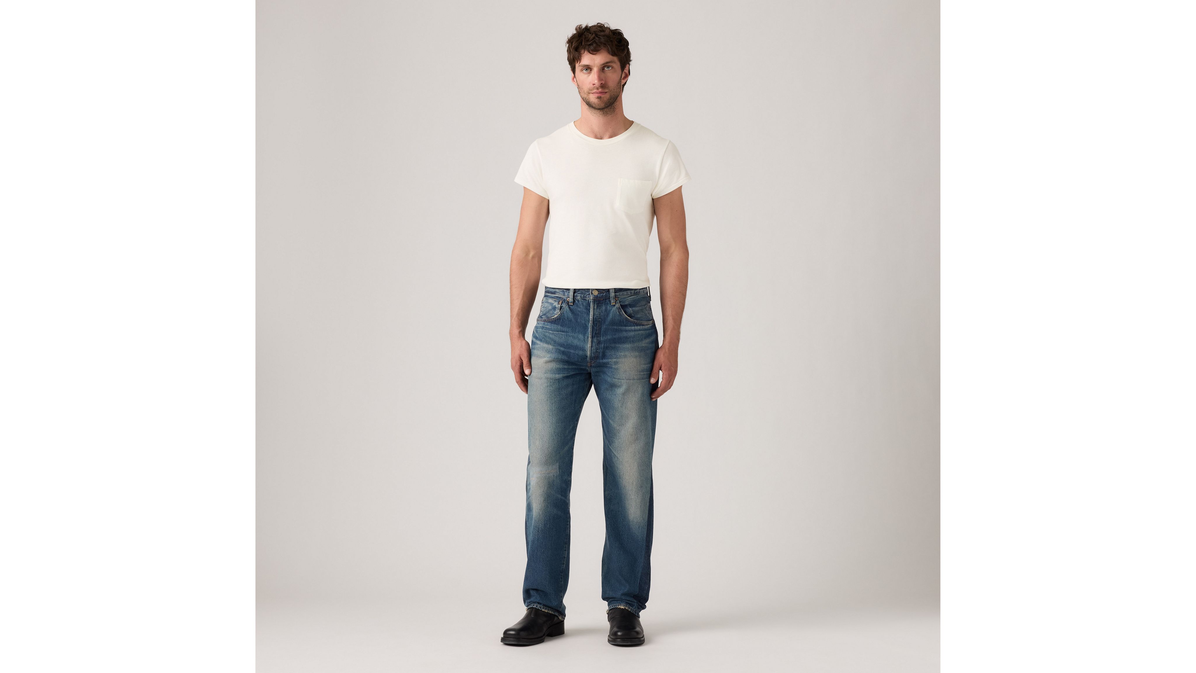 An homage to the ultimate thrill-seekers of the '50s: bikers. Our 1955 501® jeans have a distinct “anti-fit” (or, slightly looser cut that stands in opposition to slimmer and skinnier styles) in the seat, as well as slightly fuller cut around the leg and an overall boxier silhouette. This version of the 501® still retains some classic features of its 1947 predecessor: belt loops as the only method of waist adjustment, hidden copper rivets on the back pockets, and a zinc button fly.