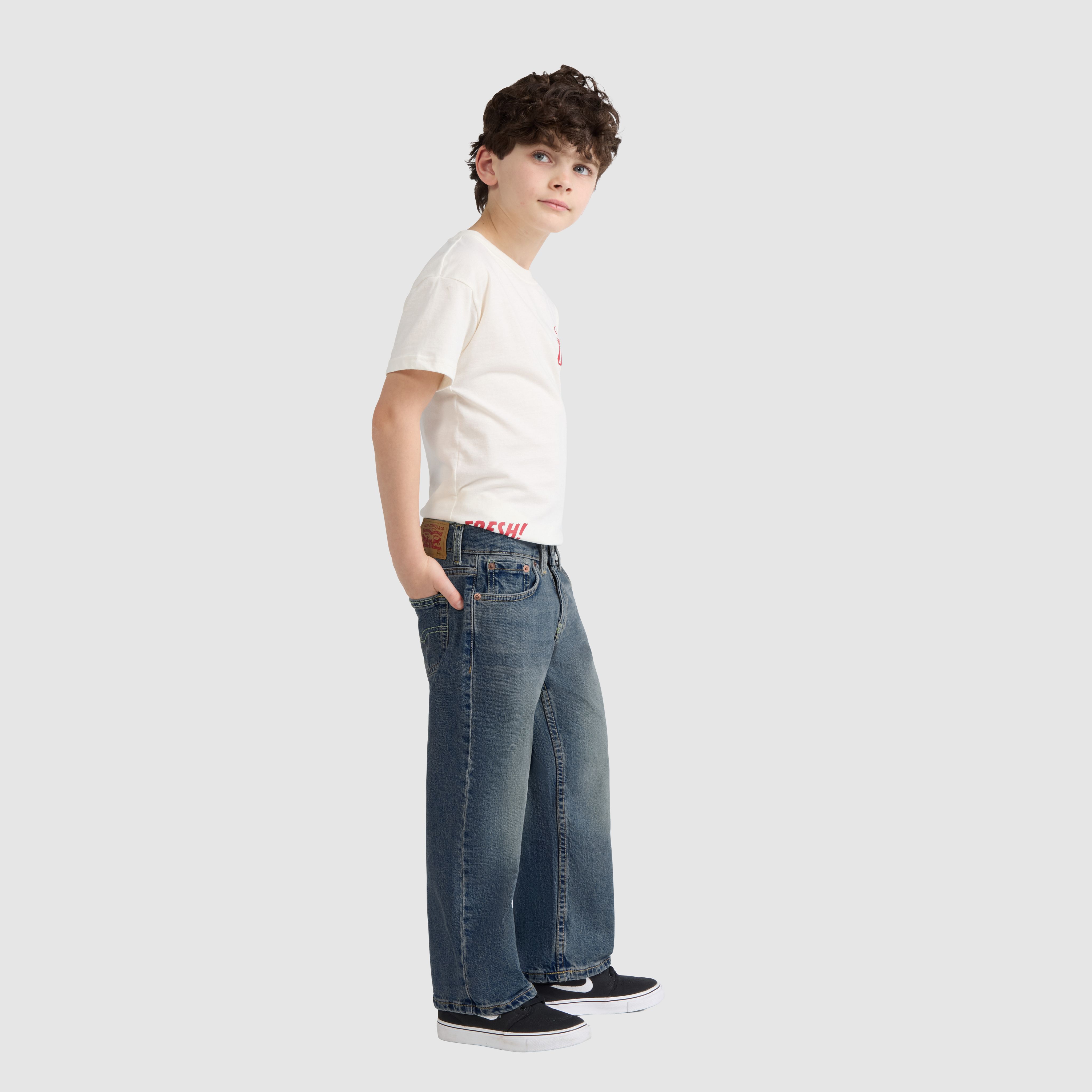 A loose straight leg delivers an easy, relaxed fit. Designed with classic denim structure for everyday wear.
