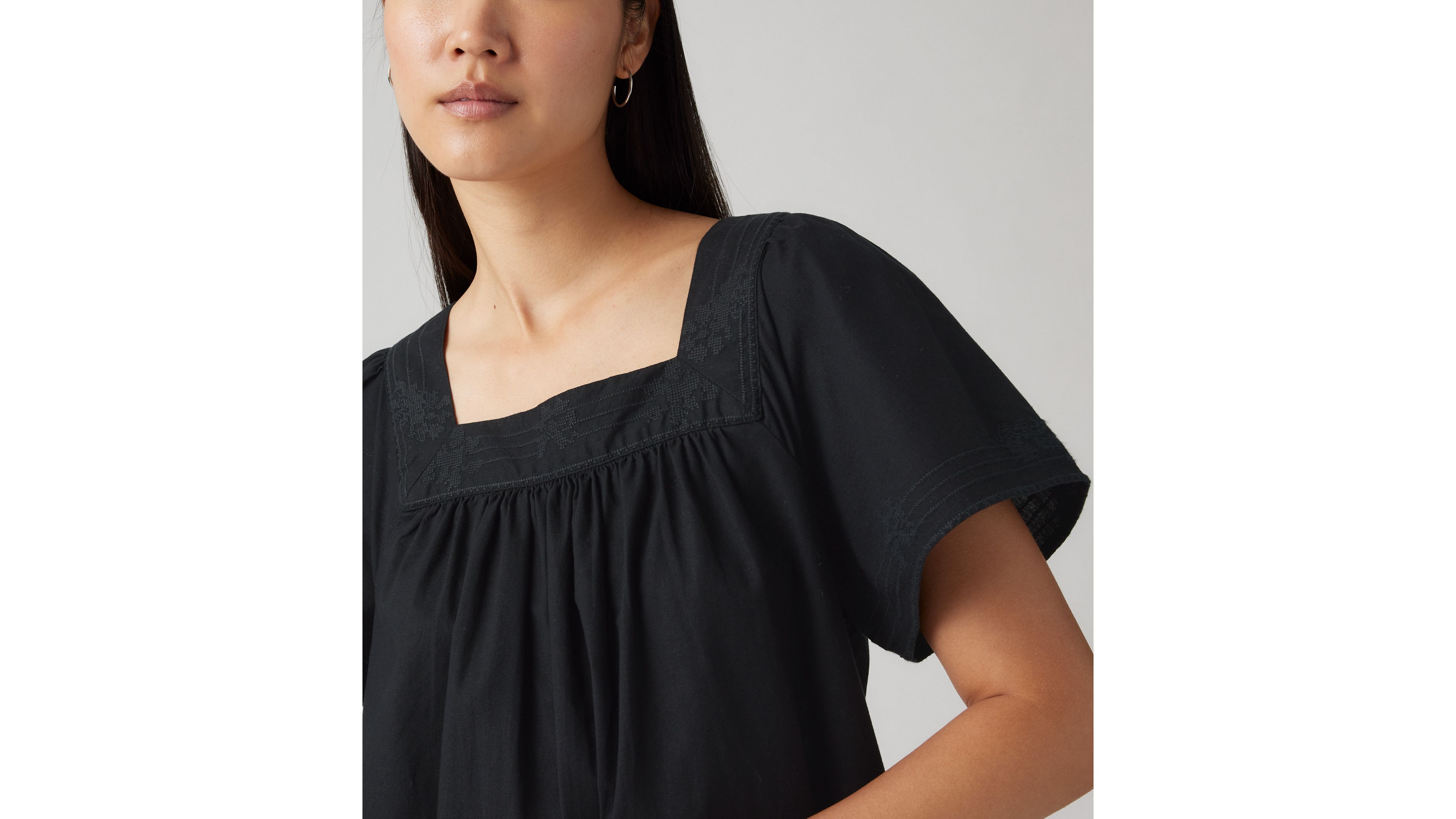 We love the super-flattering square neckline and flowy fit of our Ambre Babydoll Dress, a piece made to throw on and go. To top it off, we gave it embroidery detailing on the neck and sleeves.
