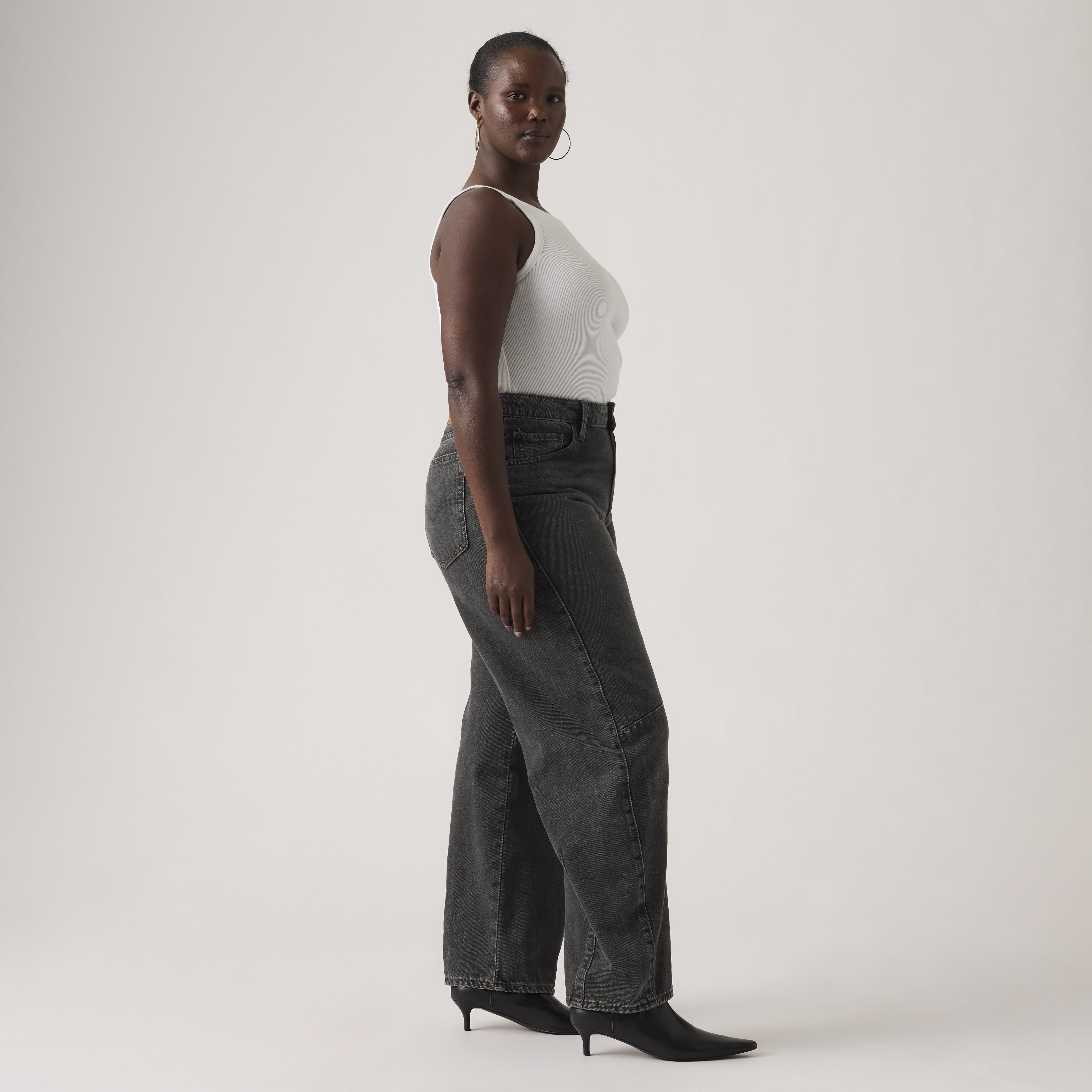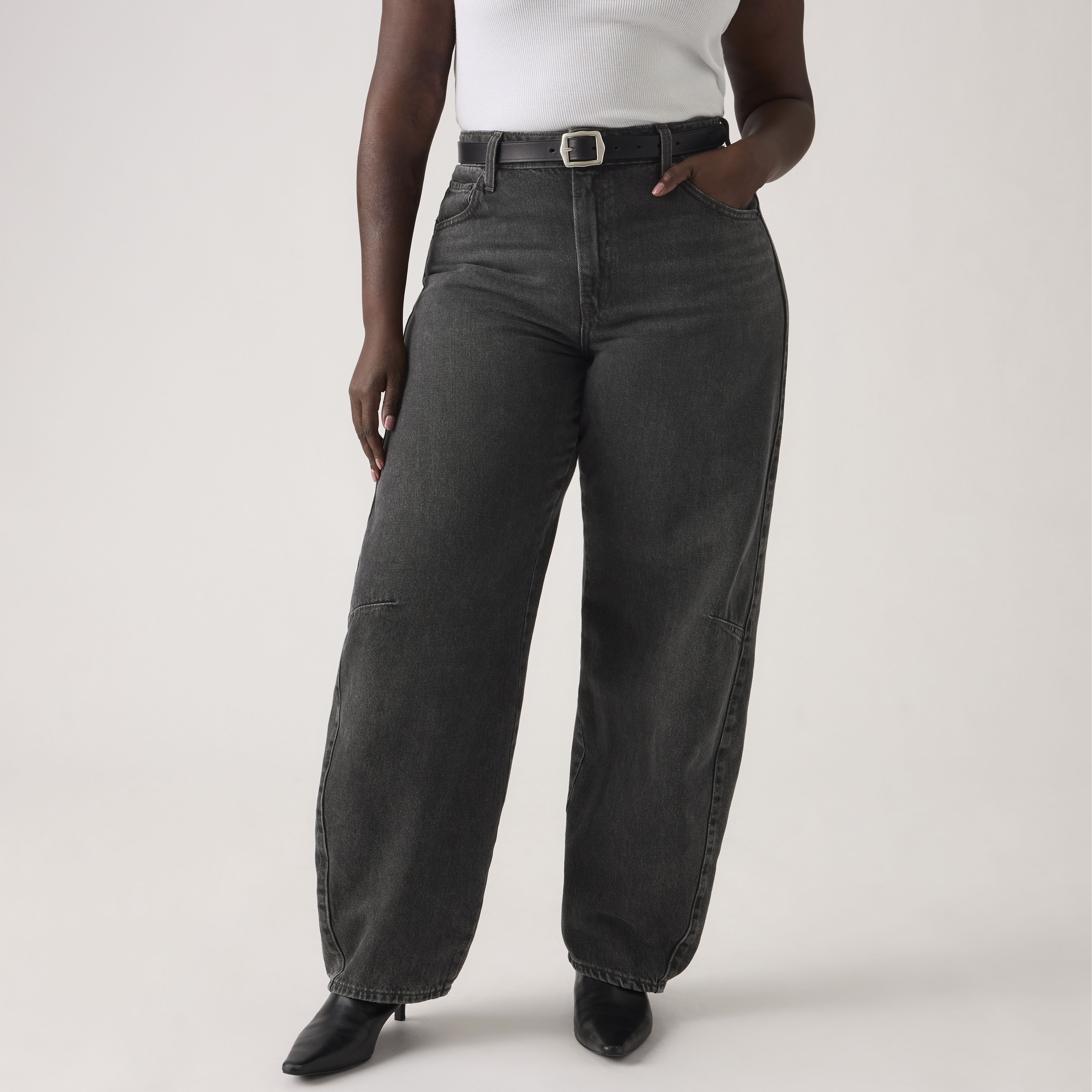 The curved leg is here to stay. With a mid rise and a loose fit, our Baggy Dad Barrel jeans are relaxed yet flattering with extra room for a subtle edge.