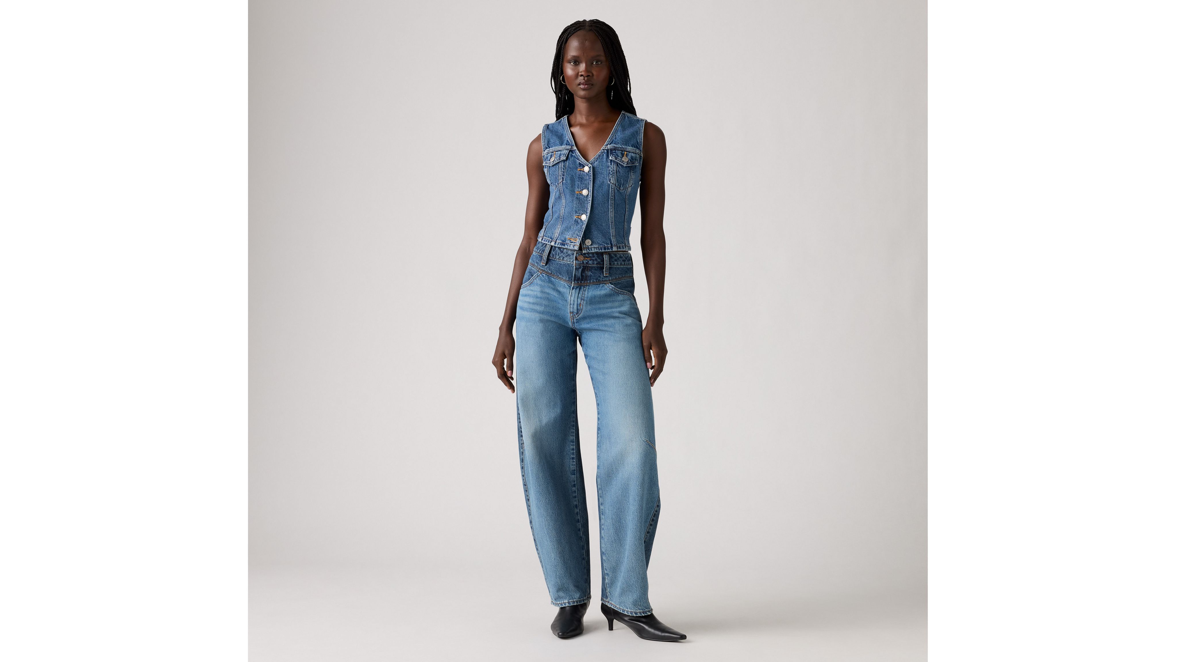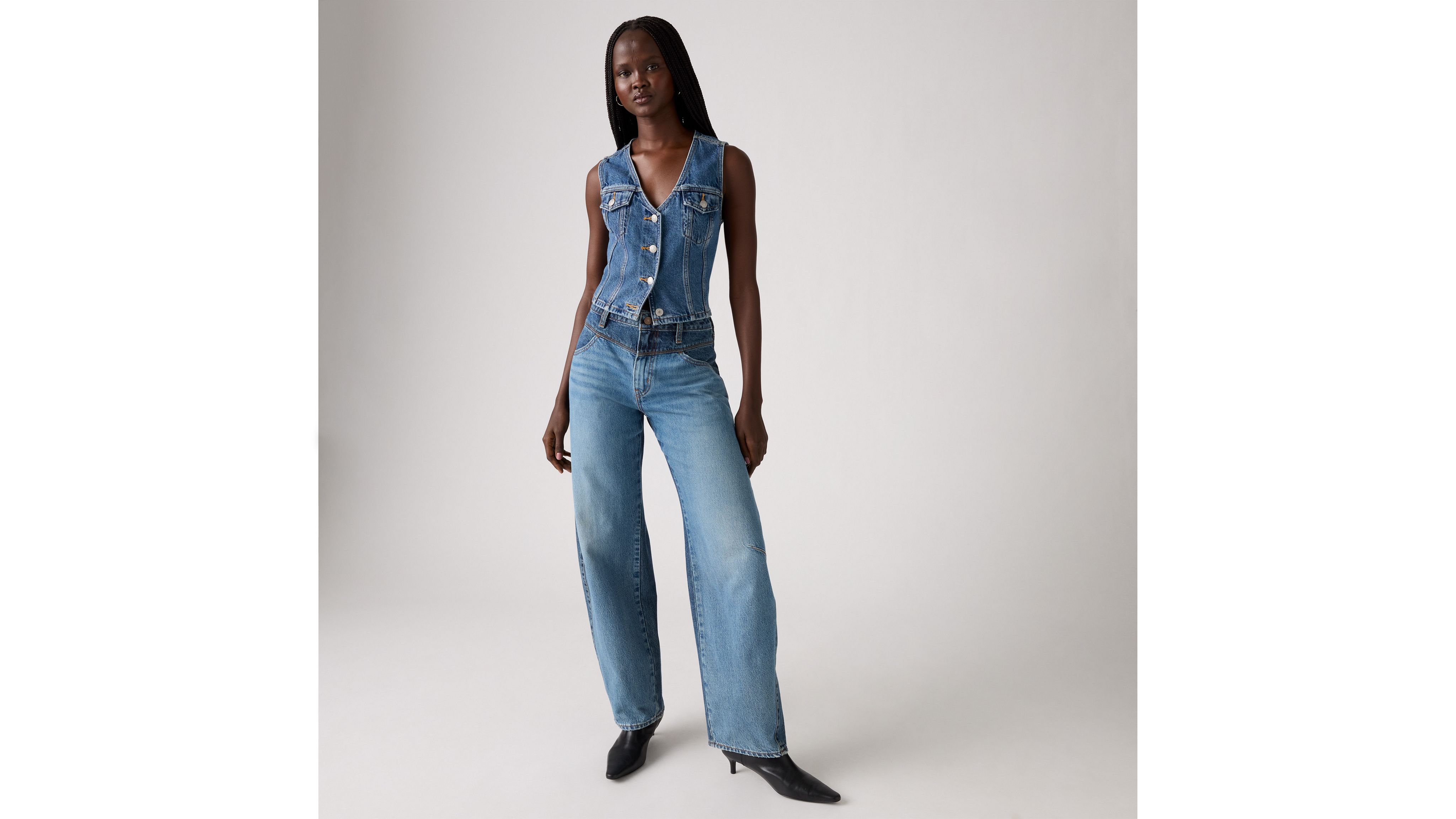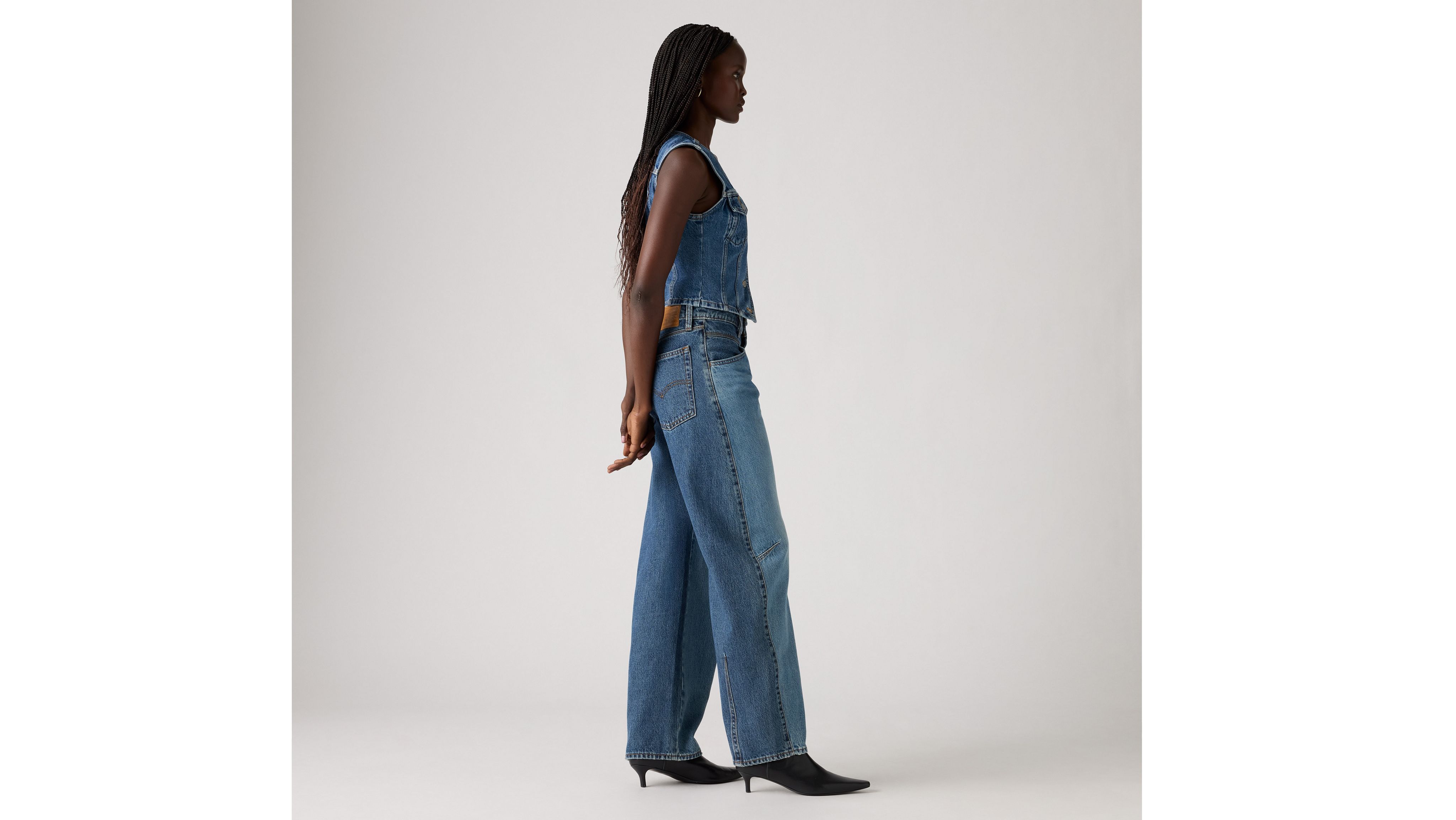 There's a new western in town. Our Barrel Saddle Back jeans feel classic yet modern with a mid rise and a loose fit. They're relaxed yet flattering with extra room for a subtle edge.