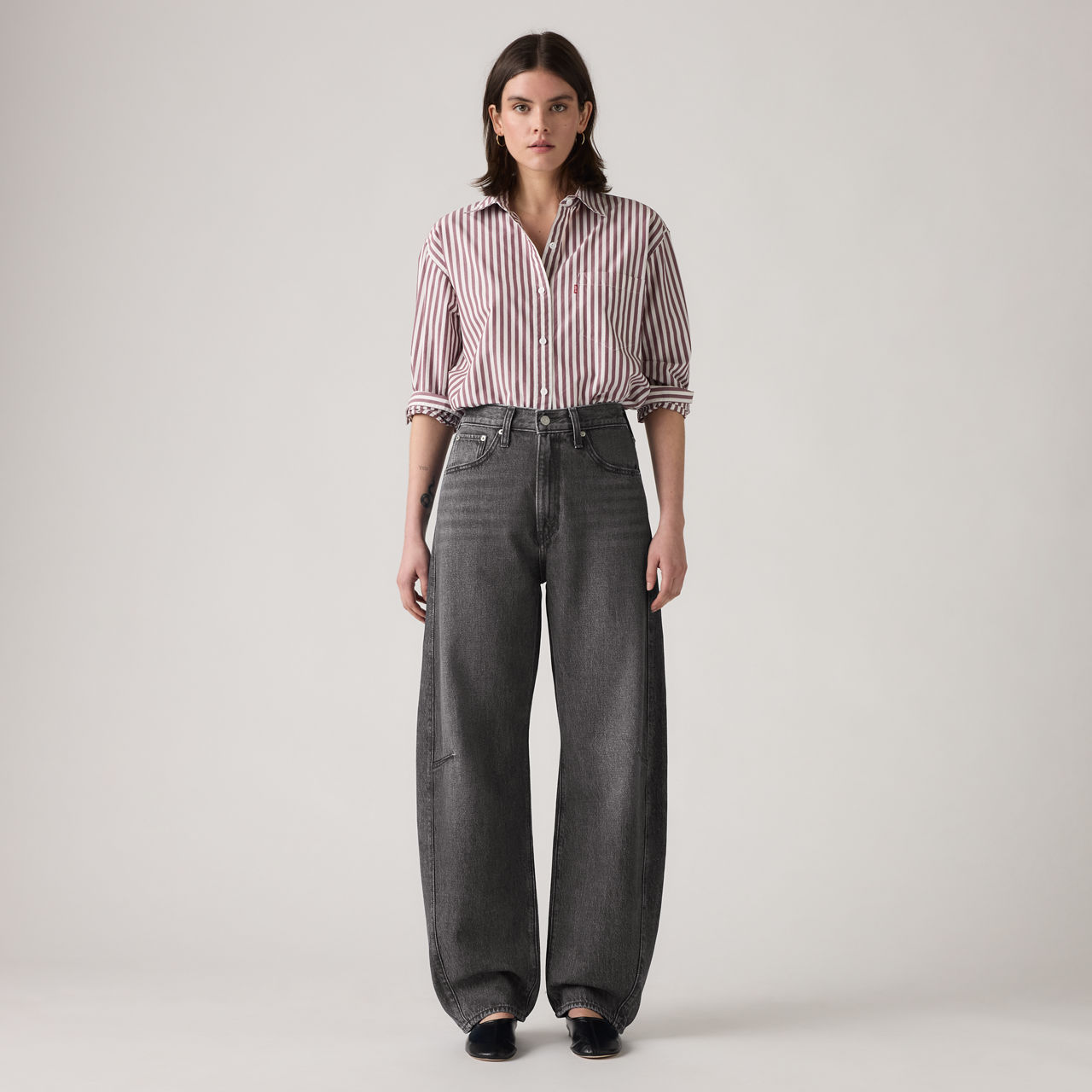 Love the classic baggy denim look but dread the waist gap? Look no further than our Cinch Barrel jeans. Cut with a flattering high rise and a curved leg, this style features adjusters on the back for a tailored-to-you fit that celebrates every curve.