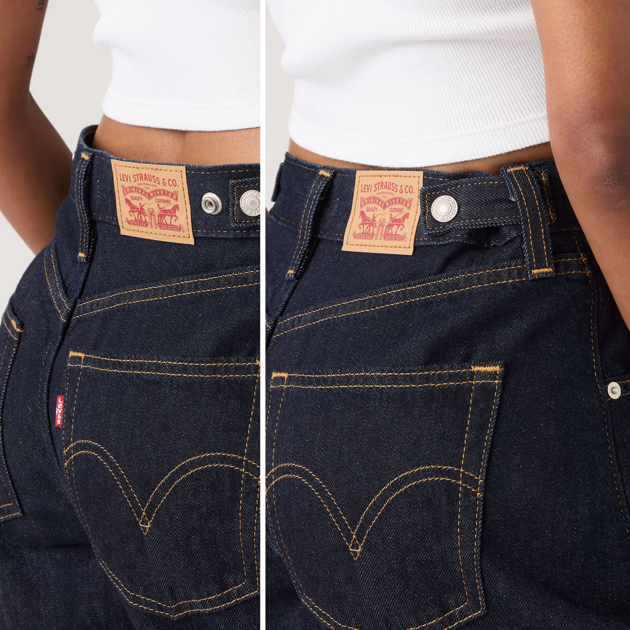 Love the classic baggy denim look but dread the waist gap? Look no further than our Cinch Barrel jeans. Cut with a flattering high rise and a curved leg, this style features adjusters on the back for a tailored-to-you fit that celebrates every curve.