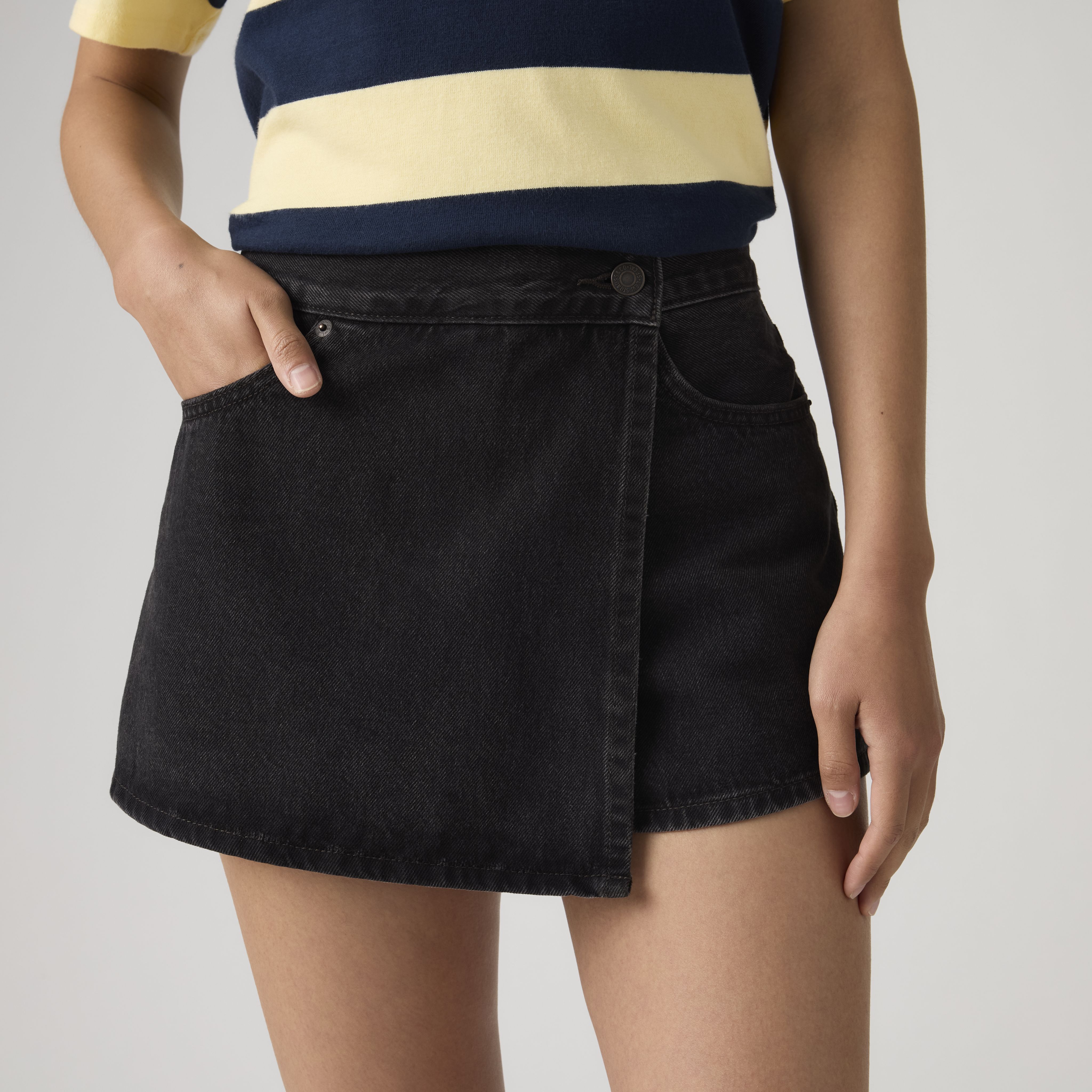 Party in the front, business in the back. A playful hybrid between a skirt and a short, this Skort combines two of our favorite things: the feminine silhouette of a skirt at the front with shorts underneath. It features a mid rise, a handy 5-pocket design and an A-line silhouette for a vintage-inspired vibe.