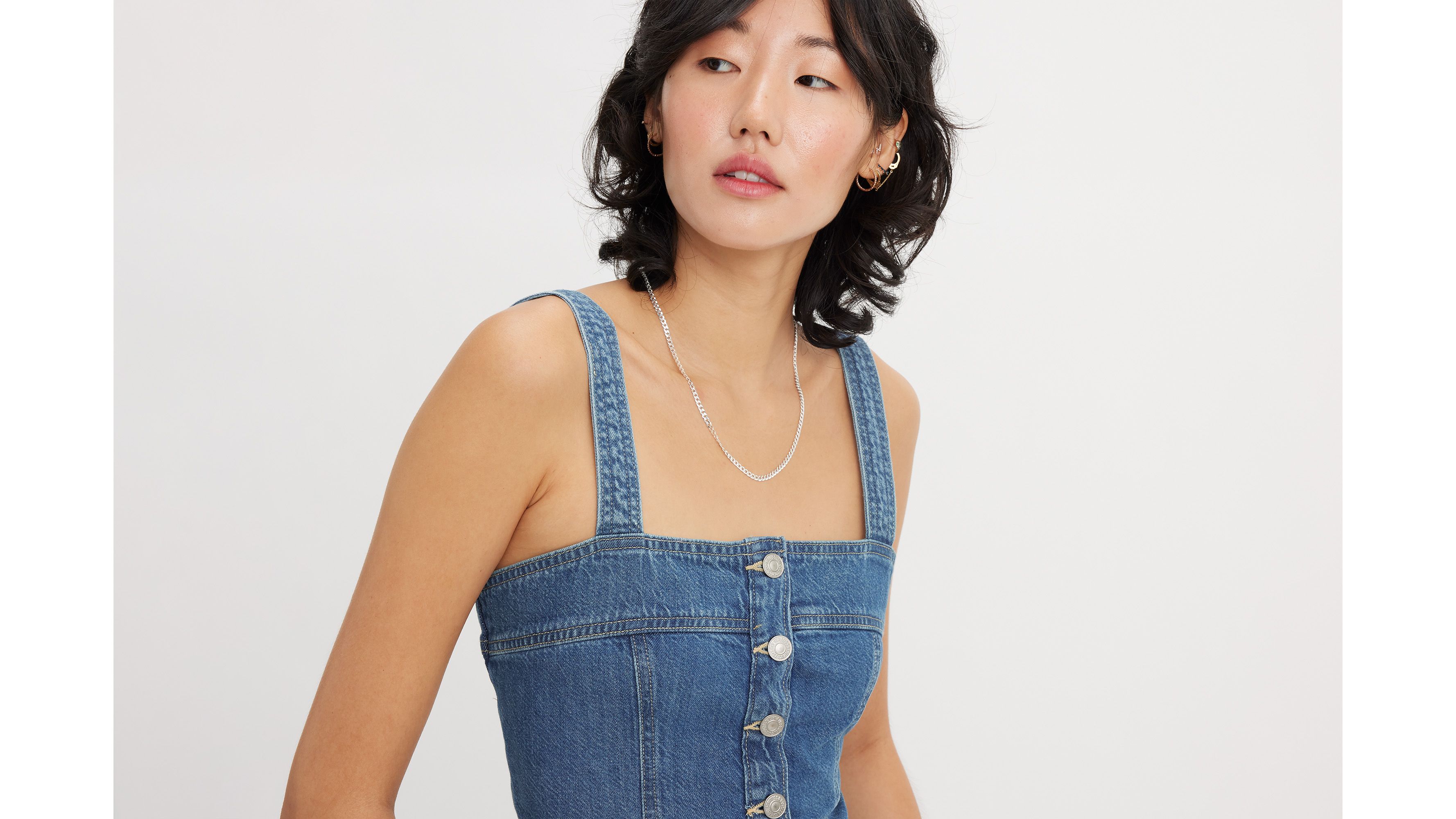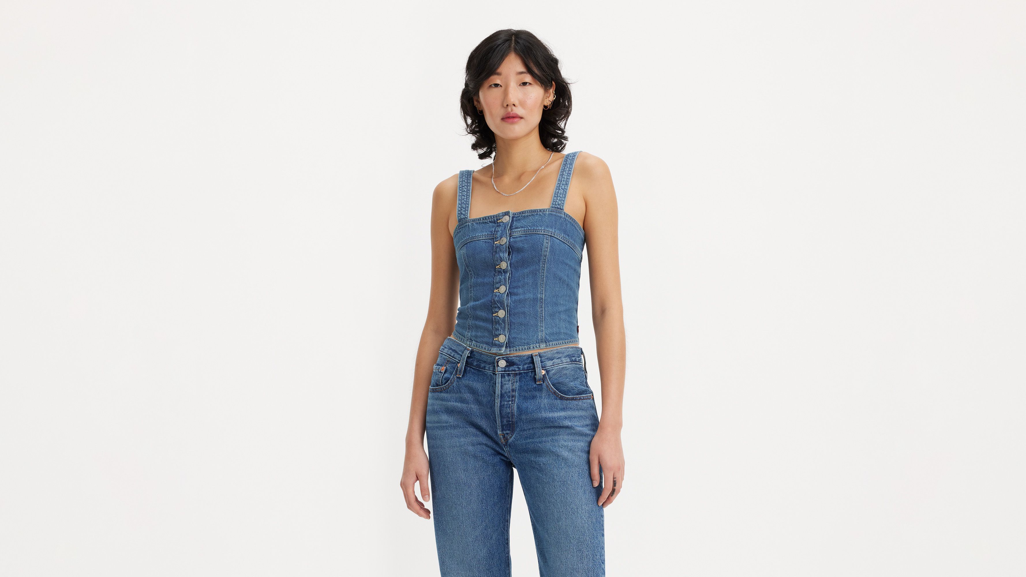 Part tank, part corset. Our Drea Tank features a cropped, figure-hugging fit, thin straps and a button-up front. To top it off, we added corset seam detailing and smocked panels for added comfort.