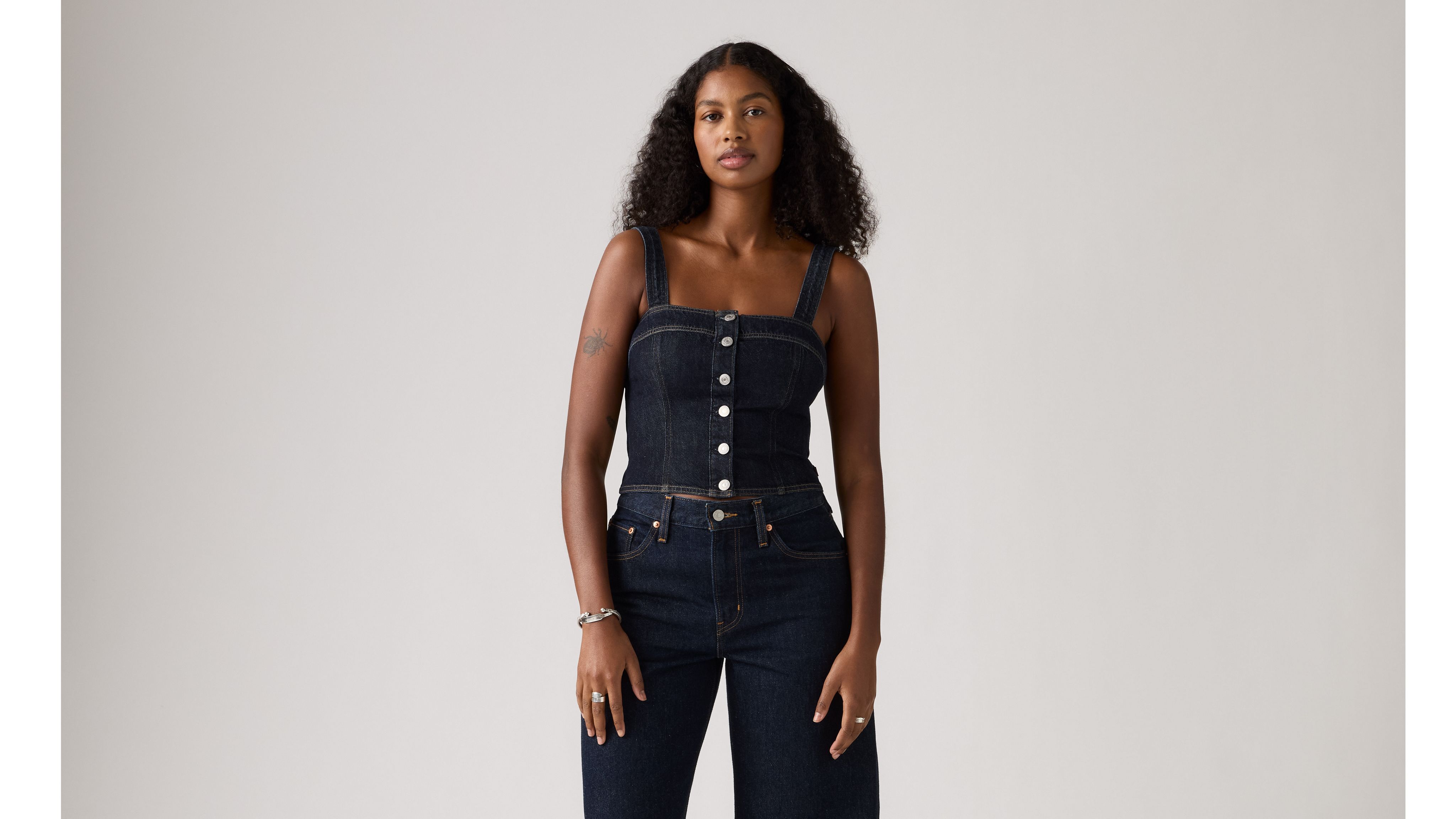 Part tank, part corset. Our Drea Tank features a cropped, figure-hugging fit, thin straps and a button-up front. To top it off, we added corset seam detailing and smocked panels for added comfort.