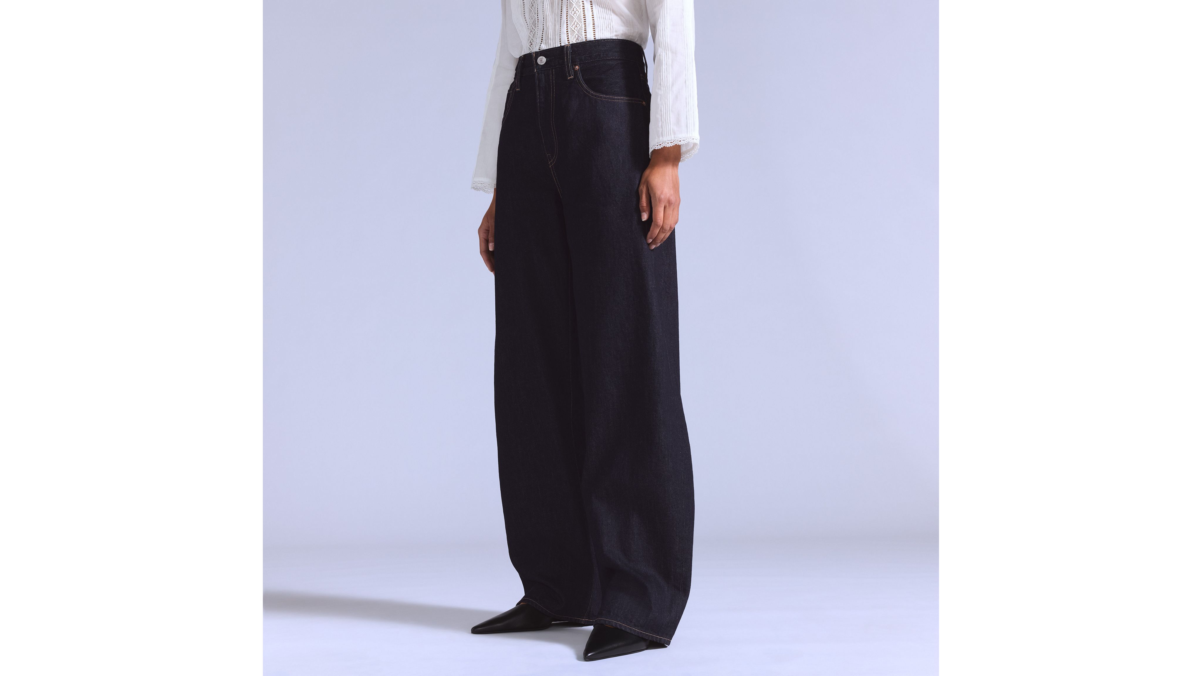 The perfectly sculpted curve. We designed our Drop Barrel jeans with a mid rise, a relaxed, slouchy fit and a barrel-shaped leg.