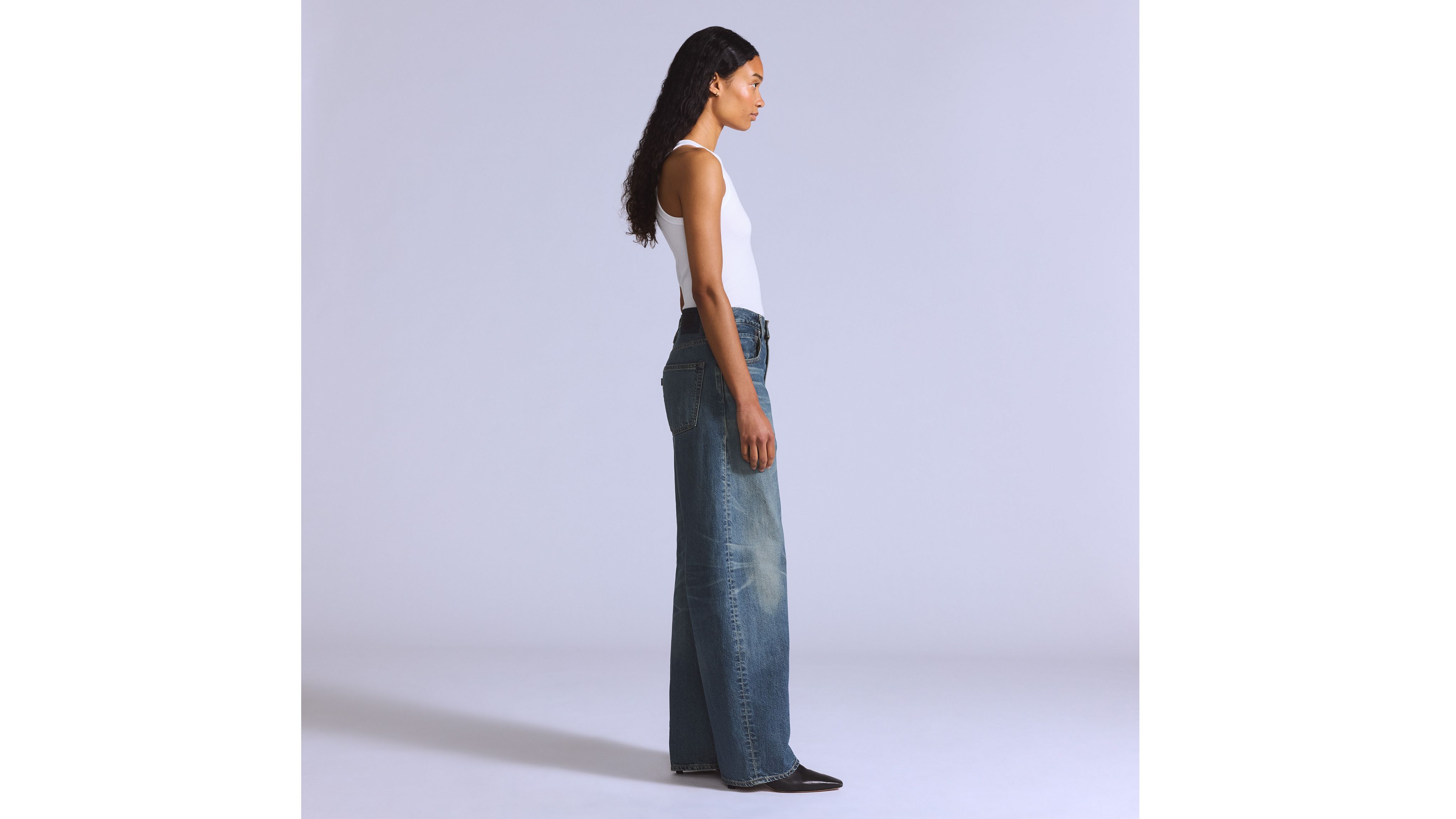 The perfectly sculpted curve. We designed our Drop Barrel jeans with a mid rise, a relaxed, slouchy fit and a barrel-shaped leg.