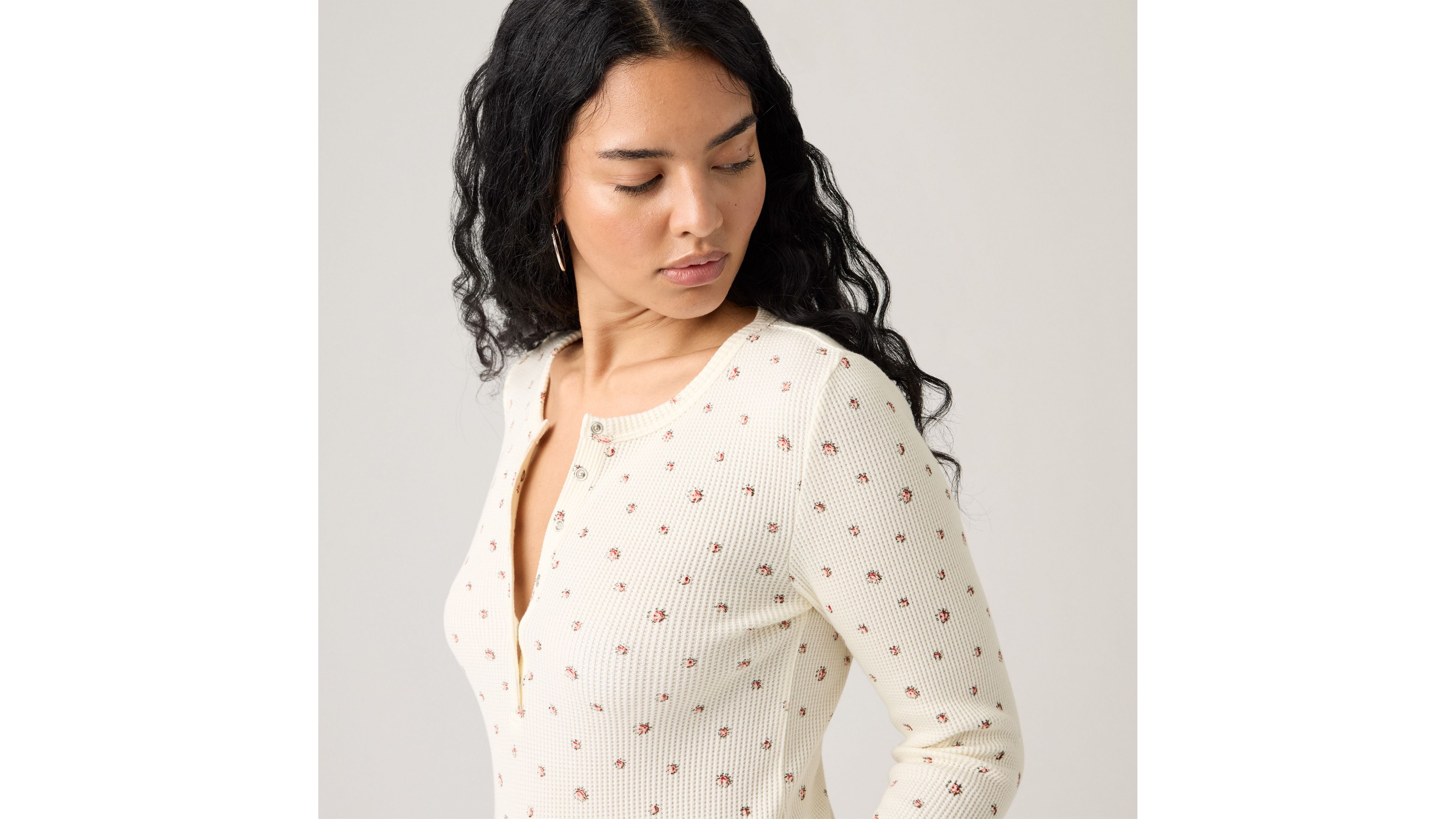 Straight from the '90s, this Waffle Henley is designed with a v-neckline, a three-button placket, a cropped, slim fit and a soft, waffle-knit fabric.