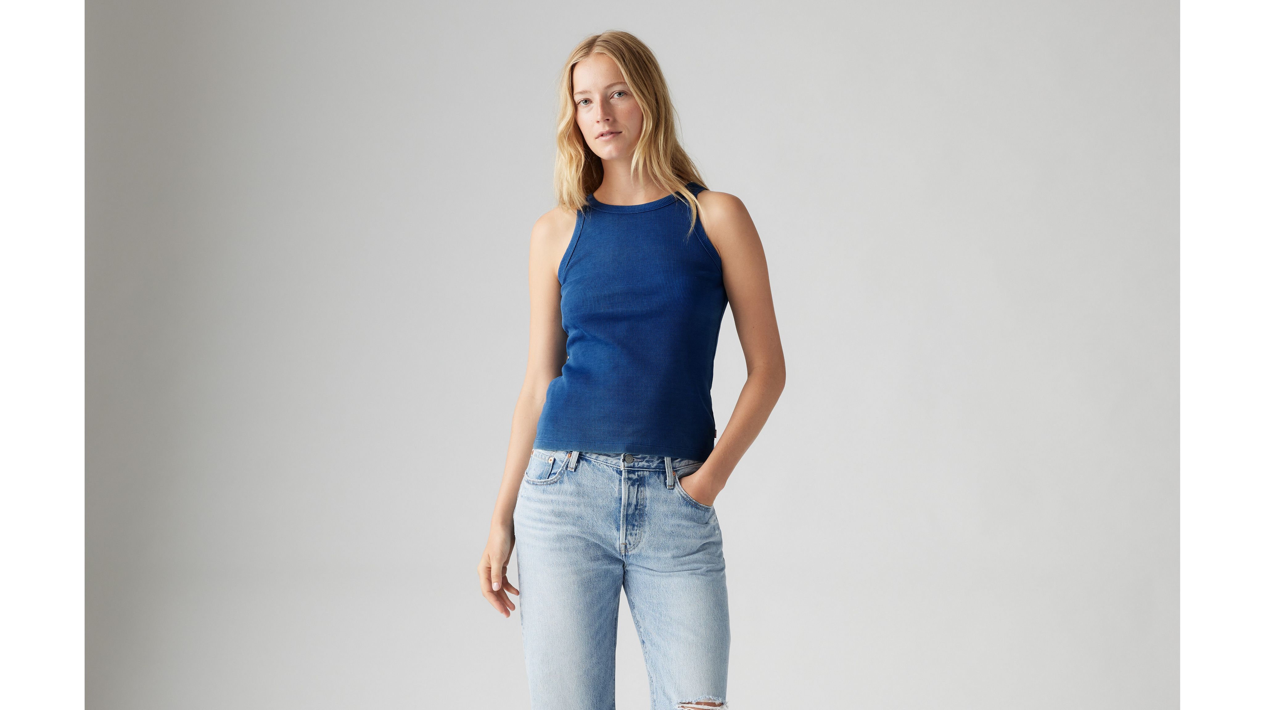 Classics like our Essential Racer Tank never go out of style. We made this one with a timeless crew neckline and a fitted cut—all topped off with our signature red tab.
