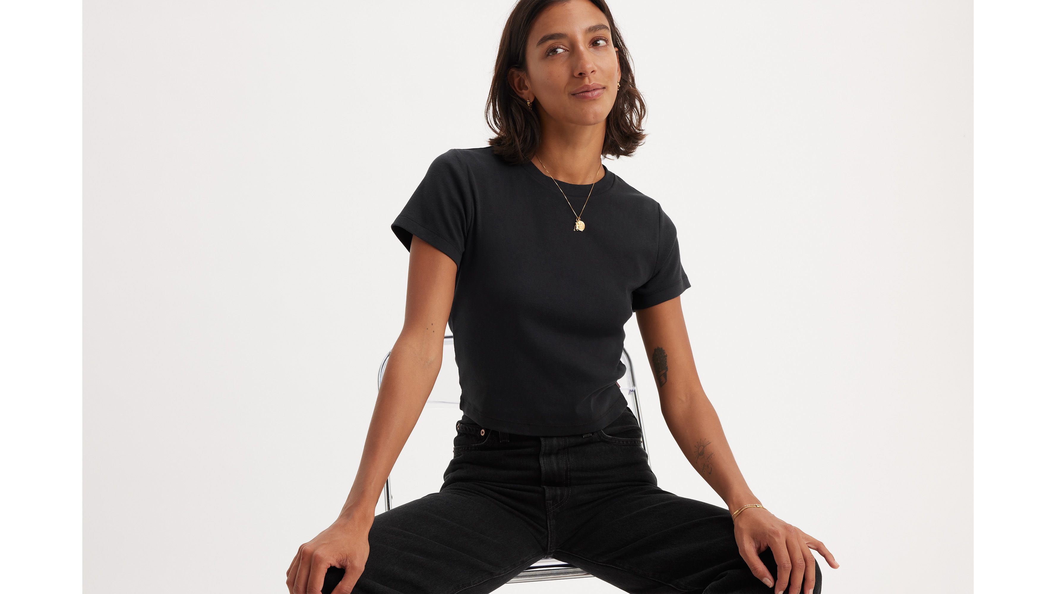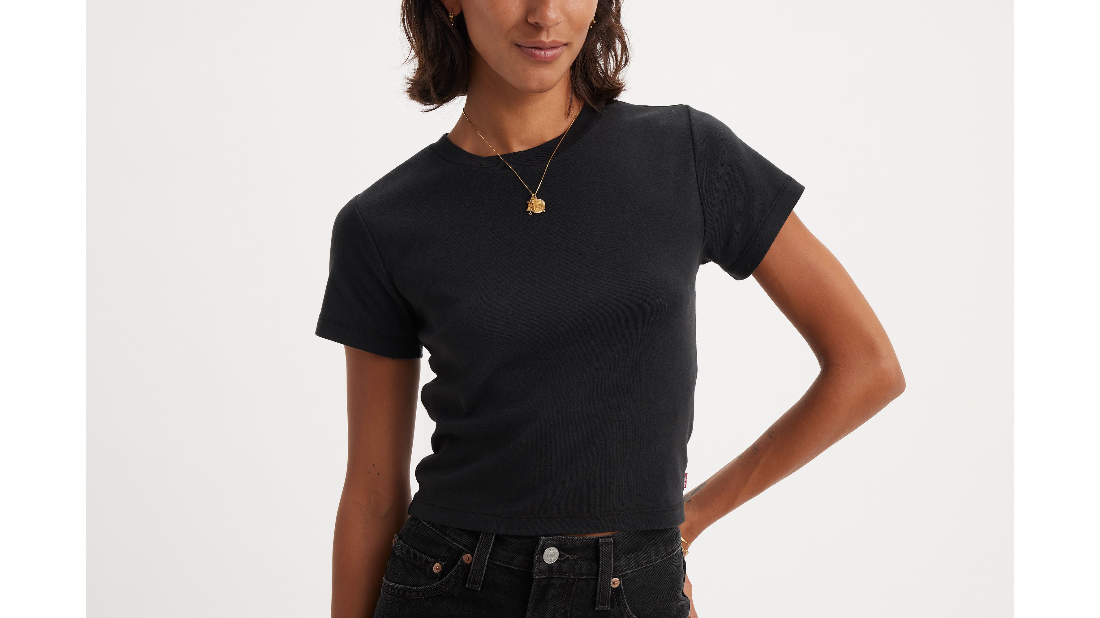 Classics like our Essential Sporty T-Shirt never go out of style. We made this one with an ultra-flattering high neckline and a fitted cropped cut—all topped off with our signature red tab.