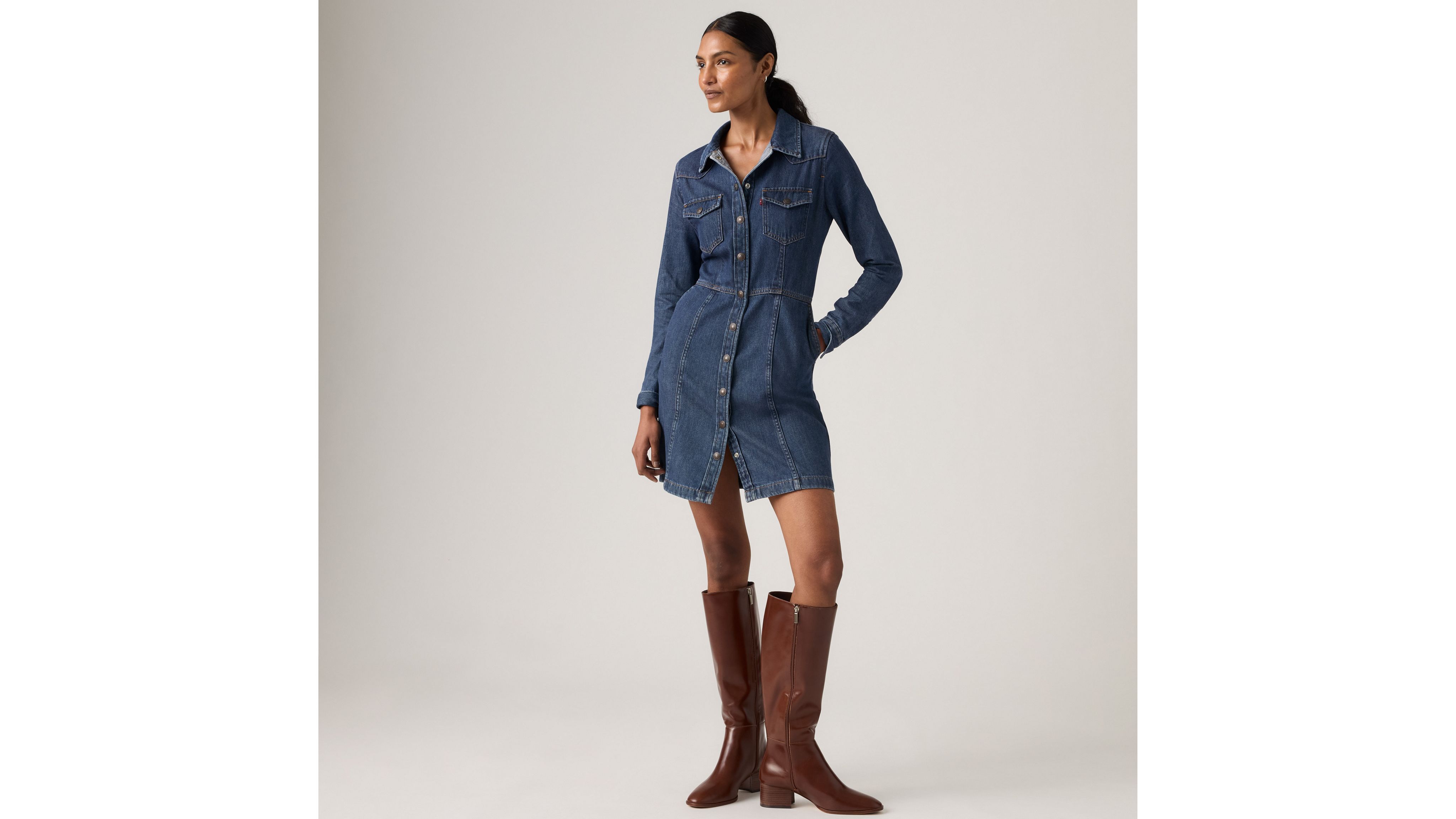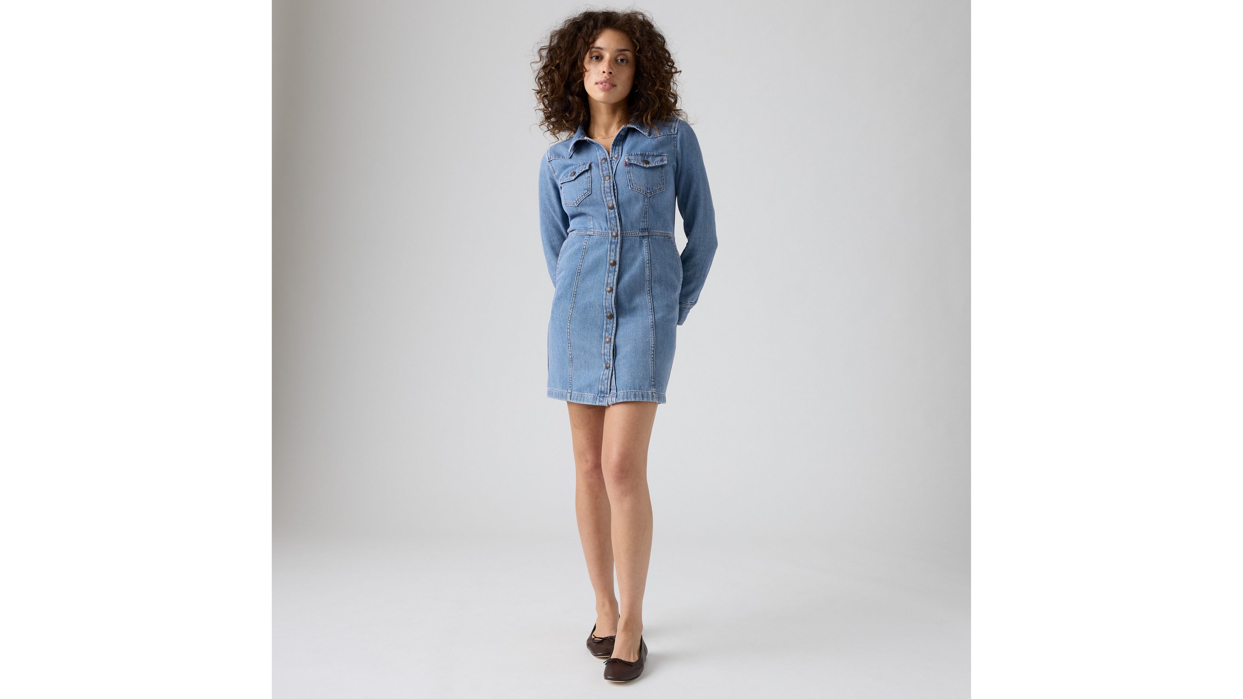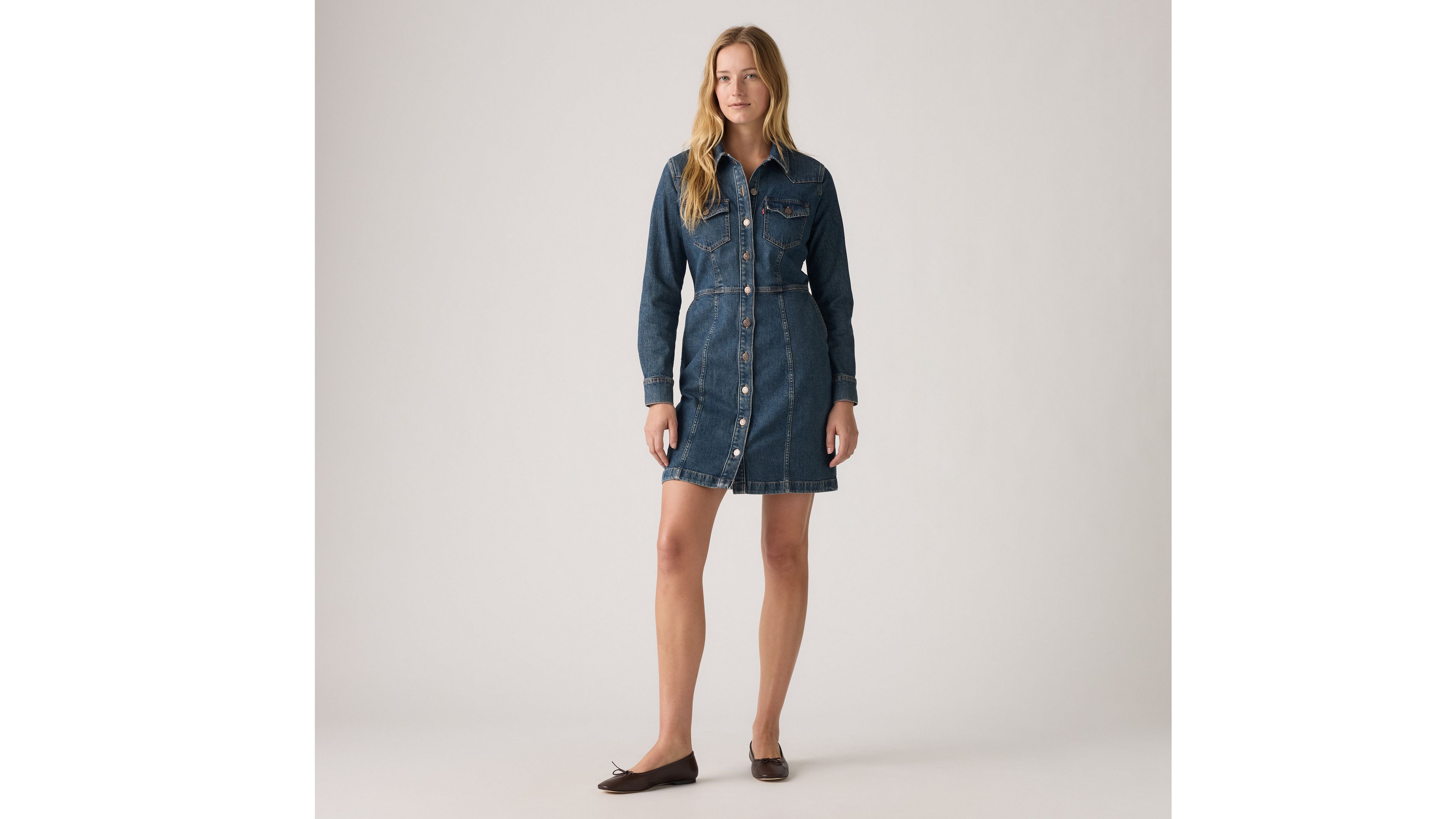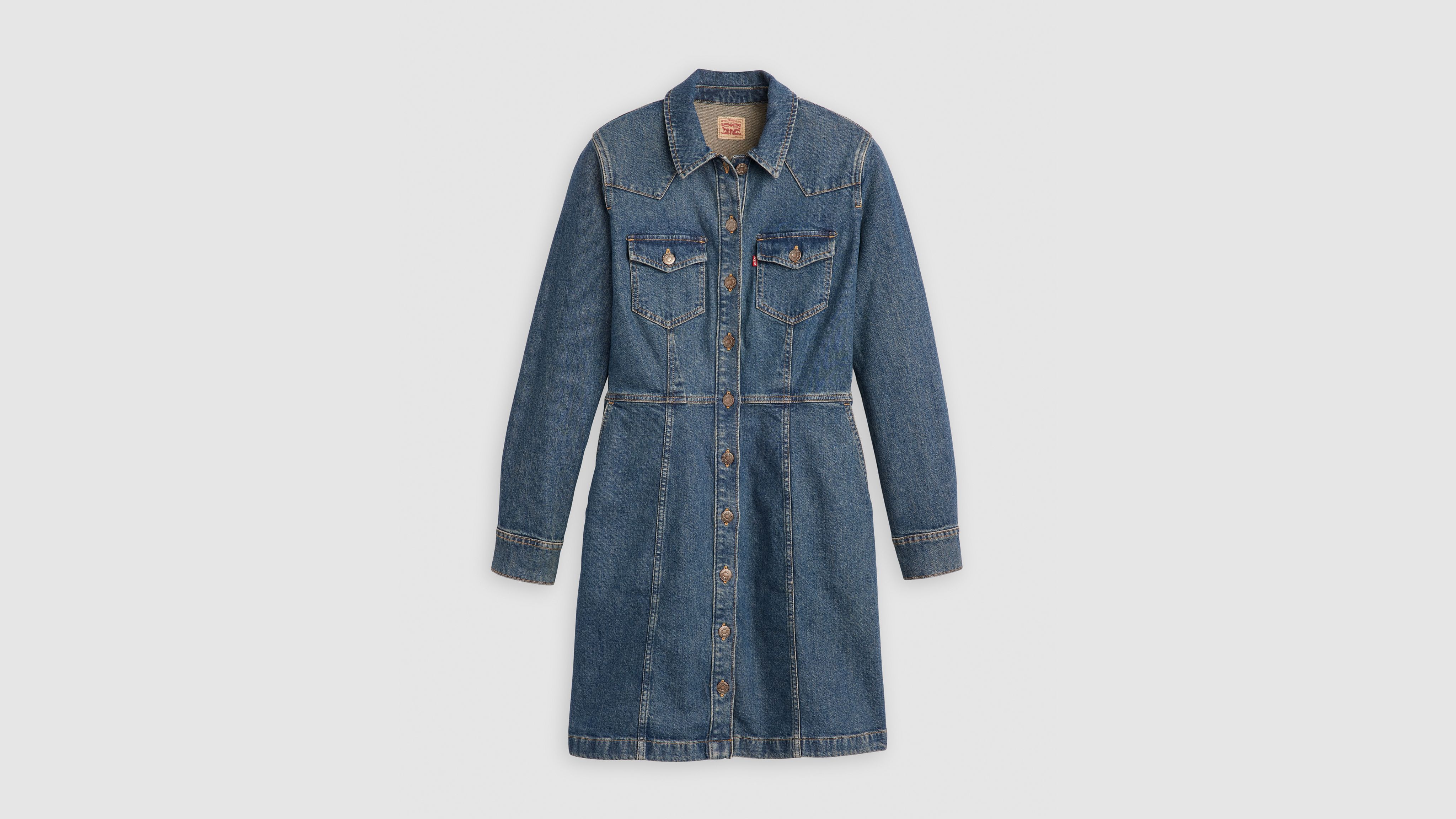 An A-line take on the classic Levi's® shirt, our Flynn Western Dress gives denim a major upgrade. We designed it with classic Levi's® details like double front pockets, a pointed collar and buttons down the front.