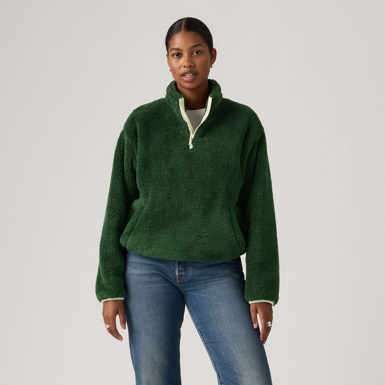 You can't beat a comfortable pullover like our Gemma Sherpa Quarter-Zip. We designed it with a relaxed fit and soft, fleece fabric to keep you cozy.