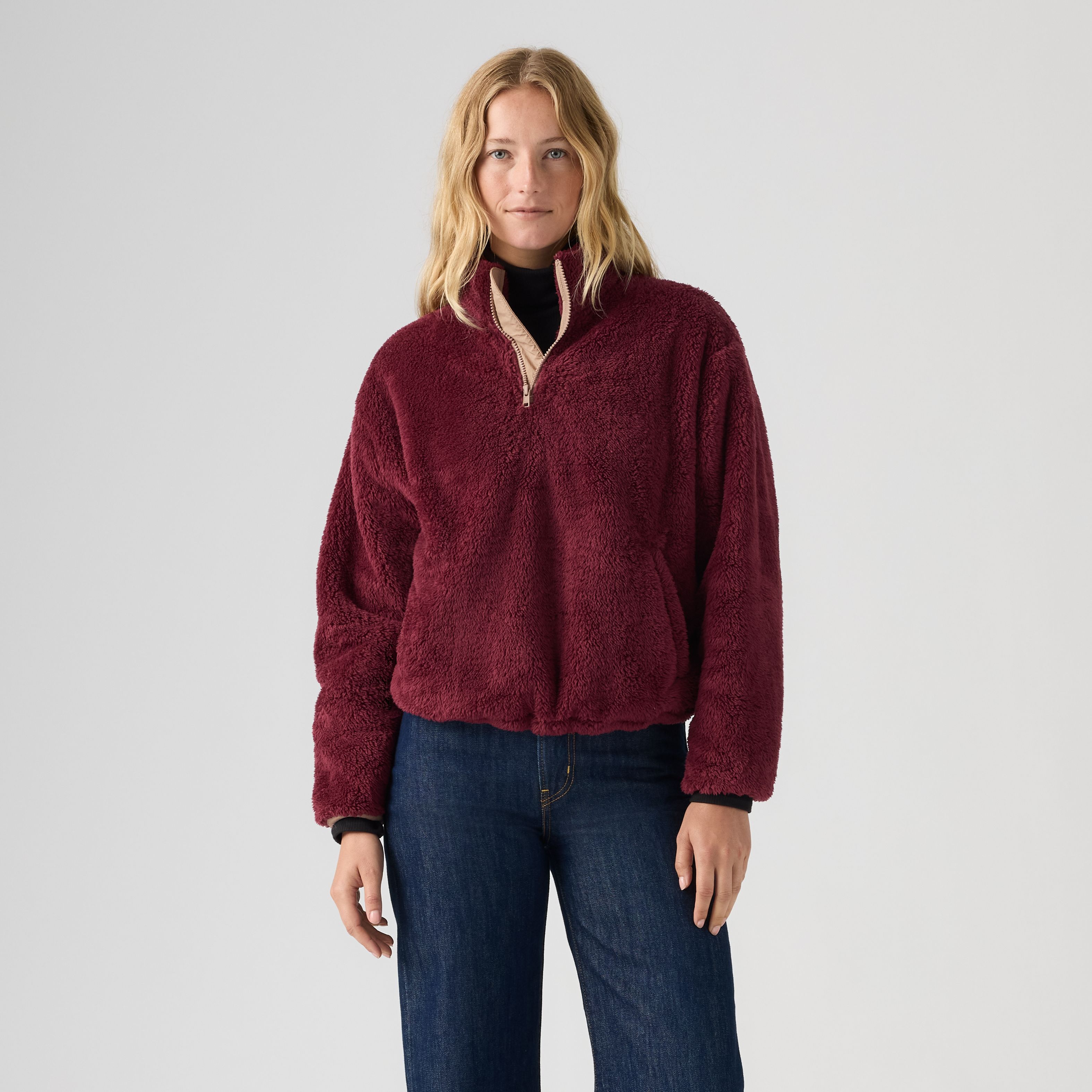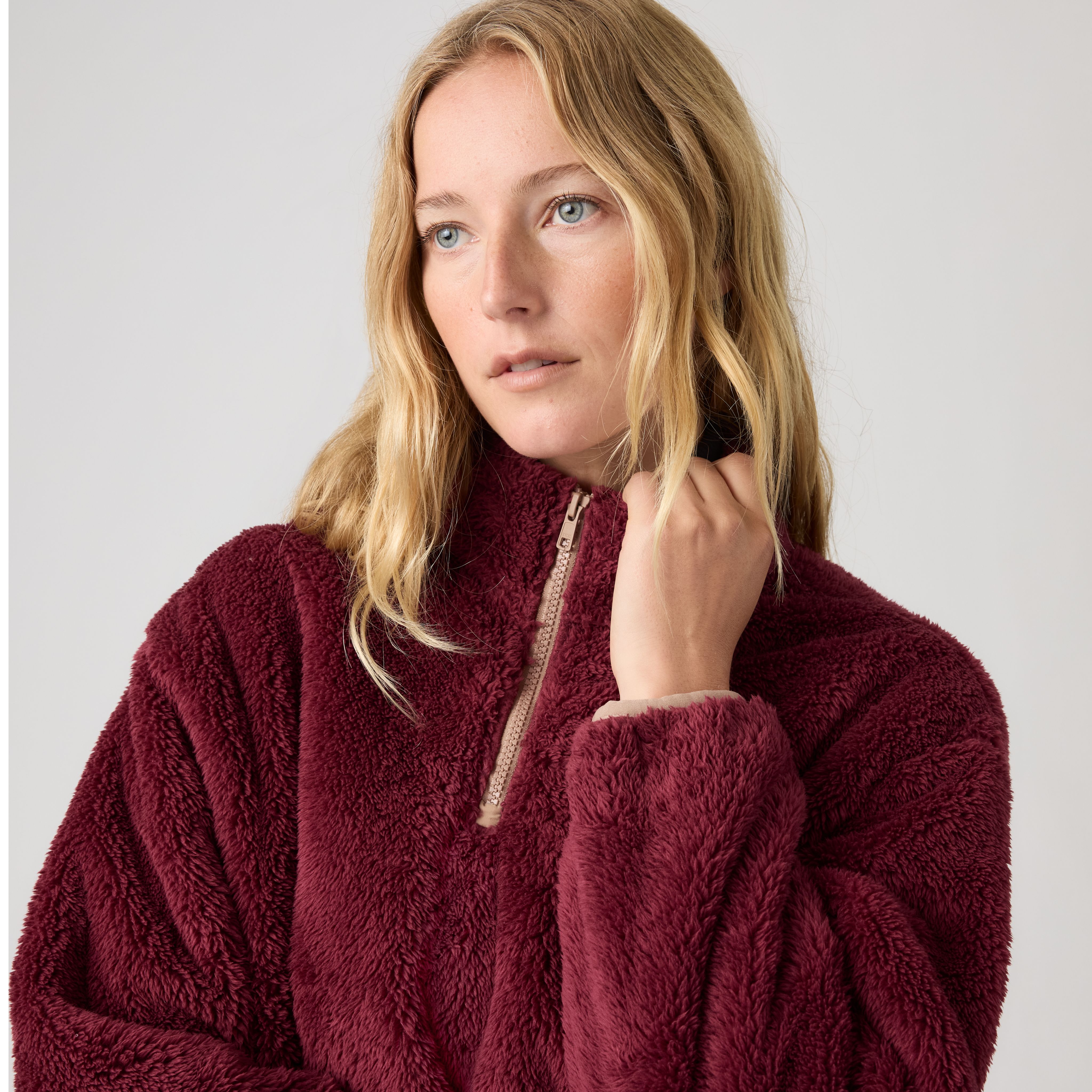 You can't beat a comfortable pullover like our Gemma Sherpa Quarter-Zip. We designed it with a relaxed fit and soft, fleece fabric to keep you cozy.