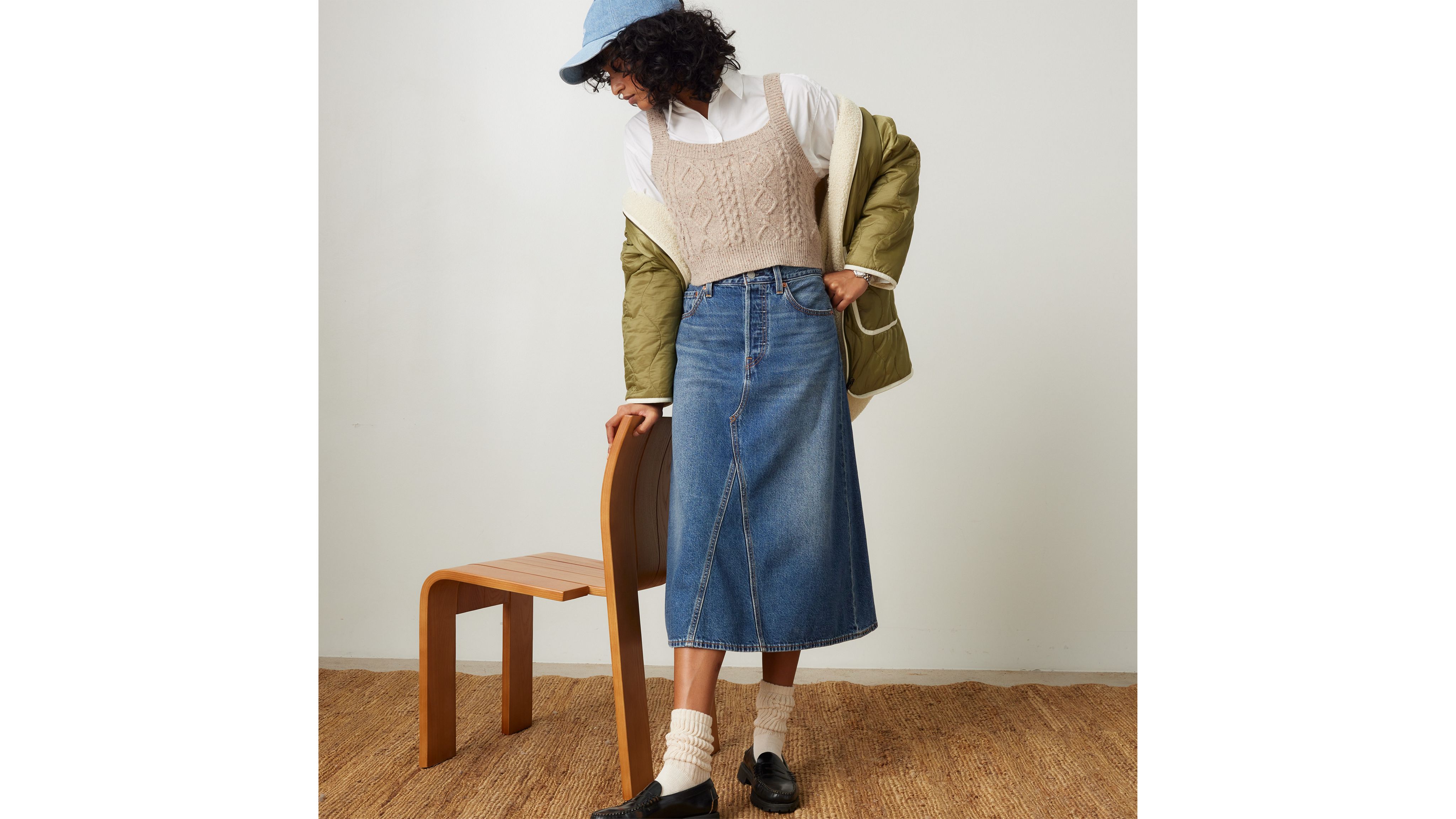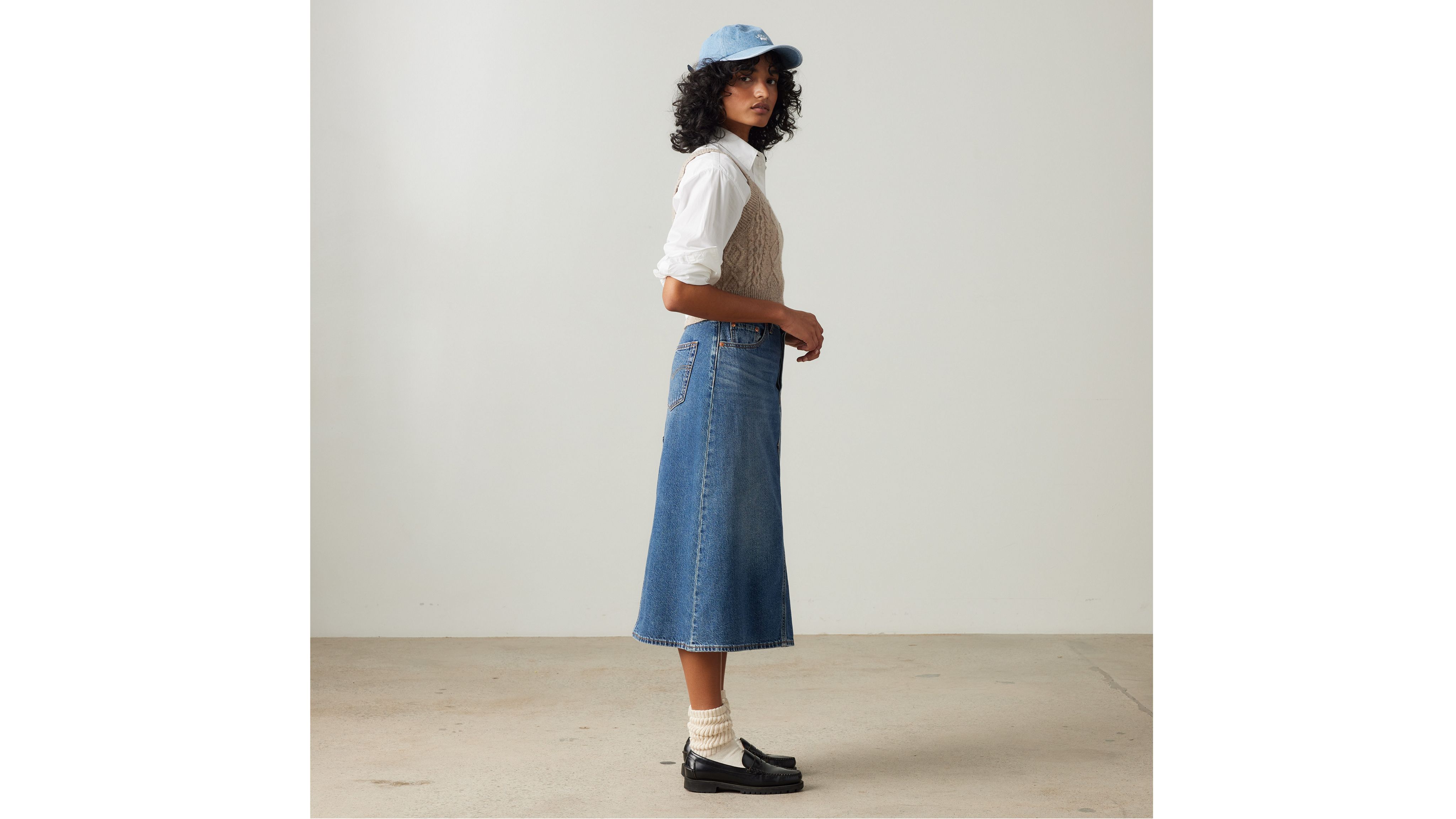 Swap out your everyday jeans for our High-Rise A-Line Decon Skirt. We cut this one with an easy high rise, a flattering A-line midi silhouette and deconstructed denim design.