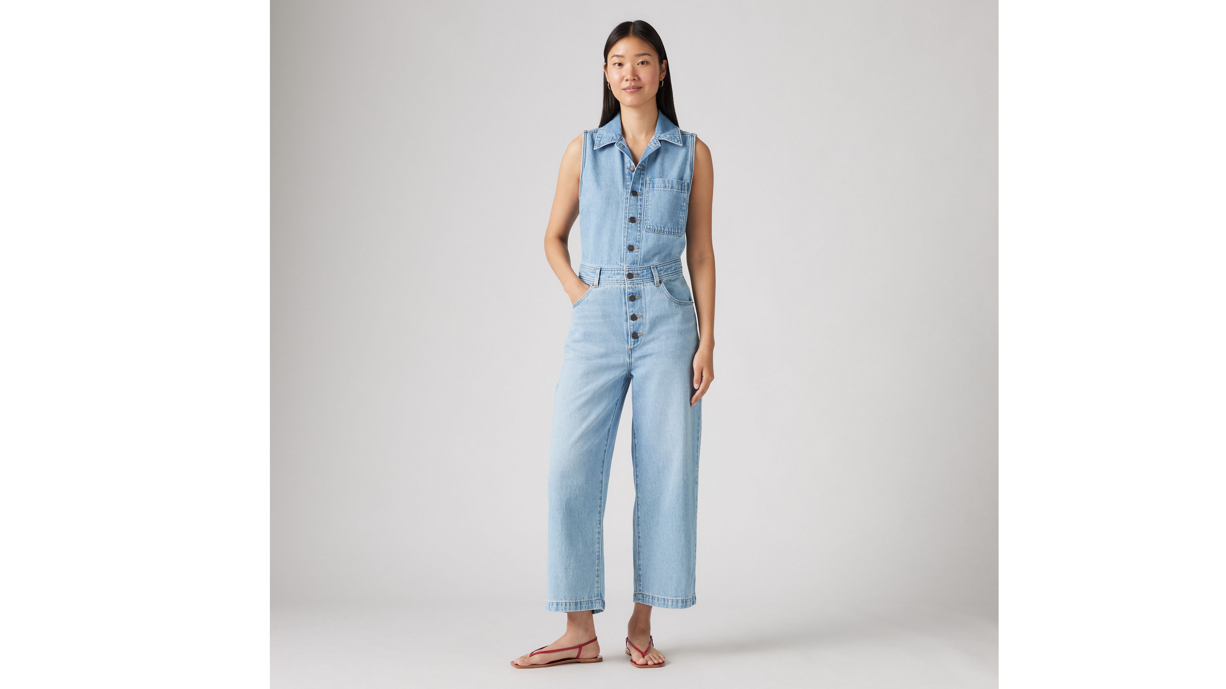 Getting dressed doesn't have to be difficult. Introducing our Sleeveless Jumpsuit: a one-and-done jumpsuit that fits just right. Featuring front buttons, lots of pockets and our signature red tab, it goes wherever you go.