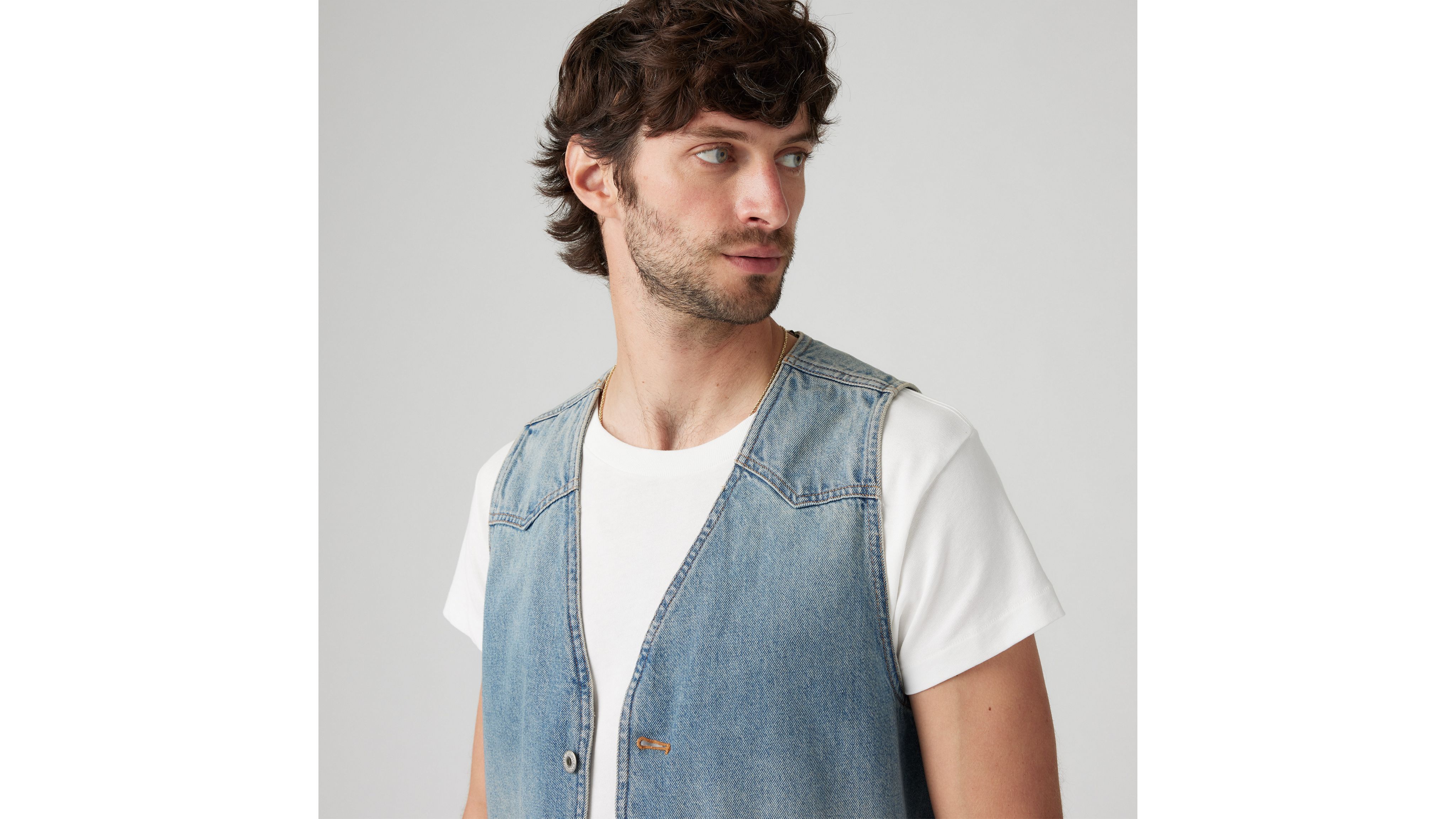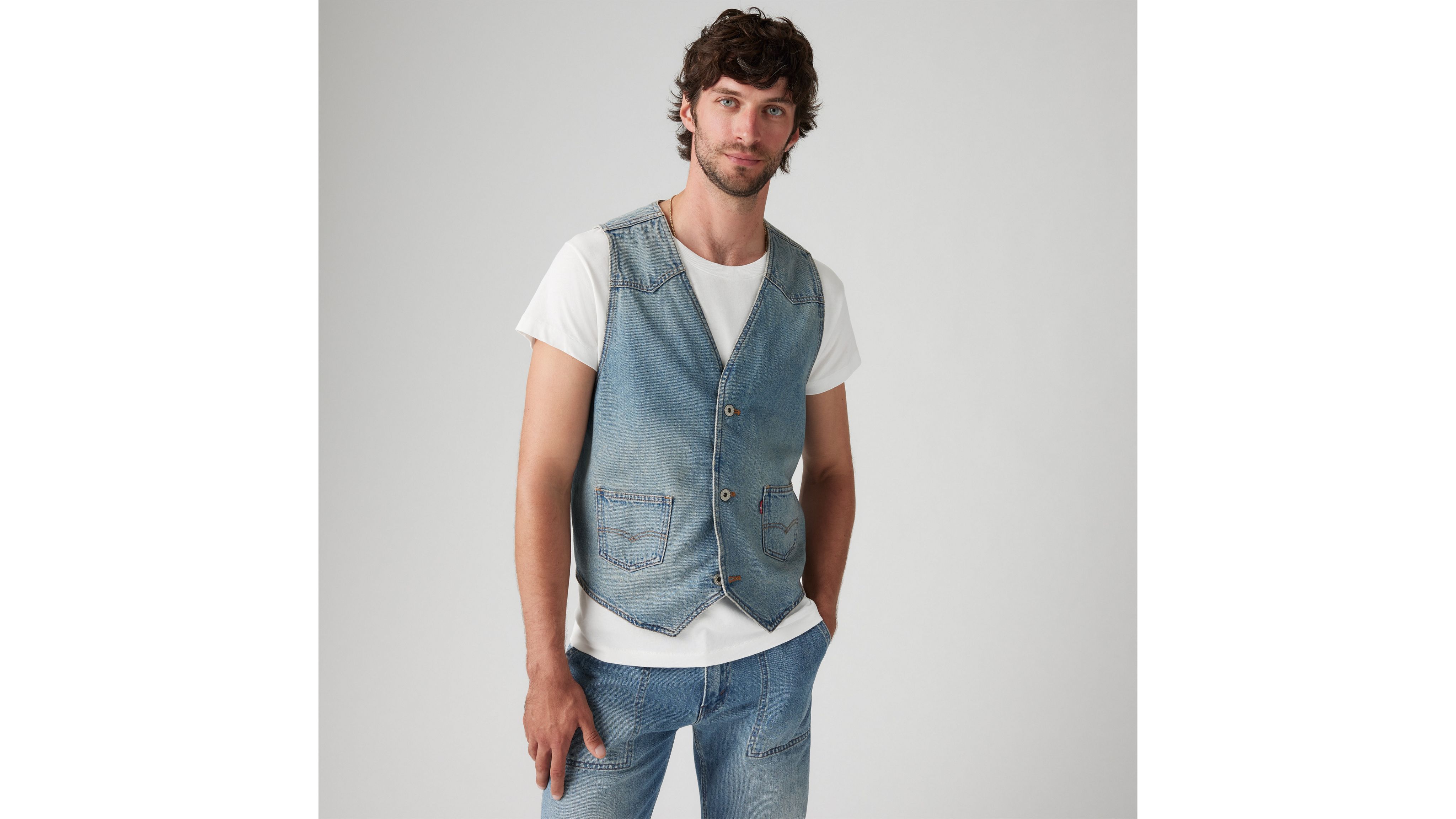 Classic and versatile, our Mission Denim Vest keeps things timeless with a button-up front, a standard fit and classic, non-stretch denim.