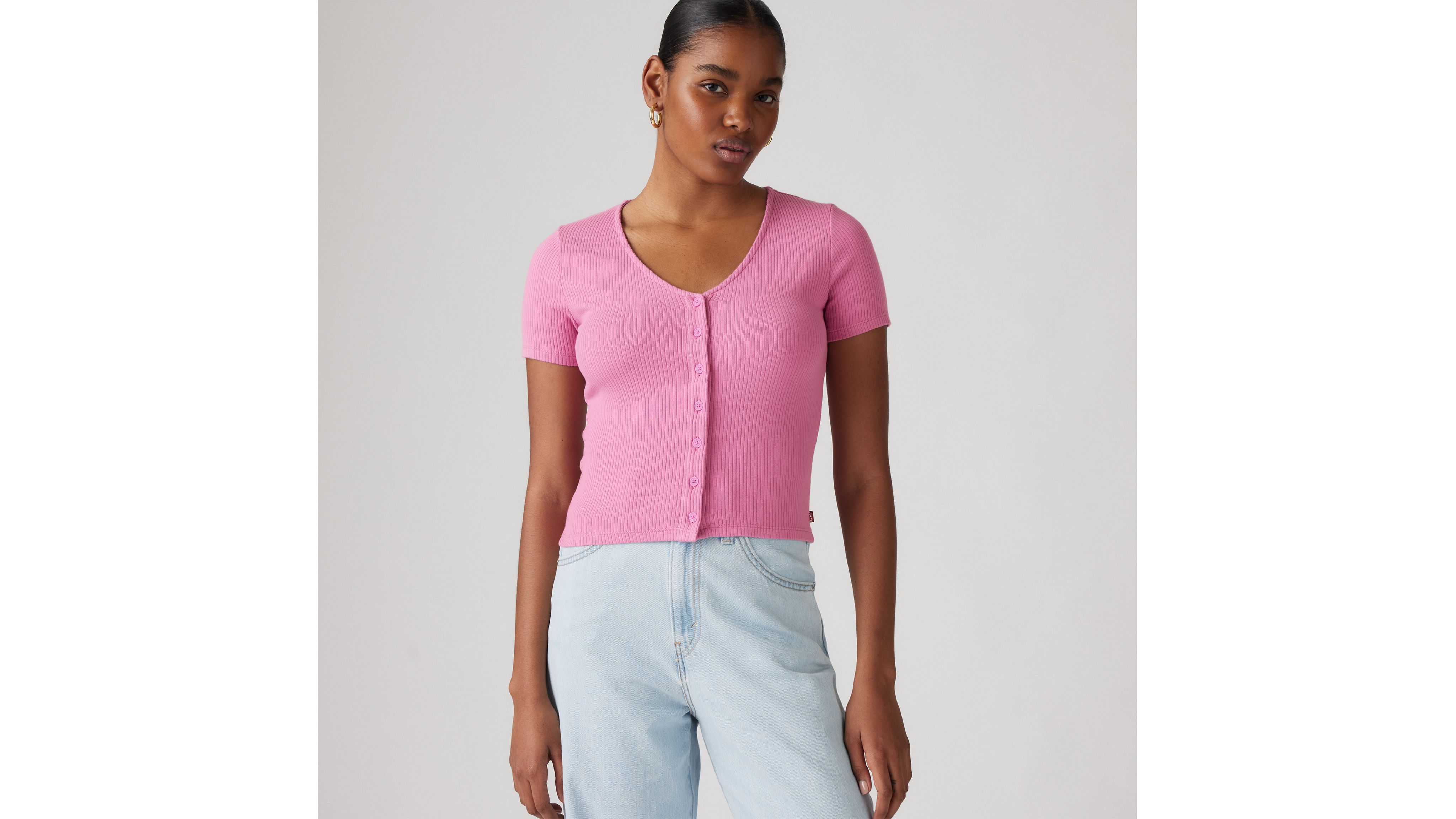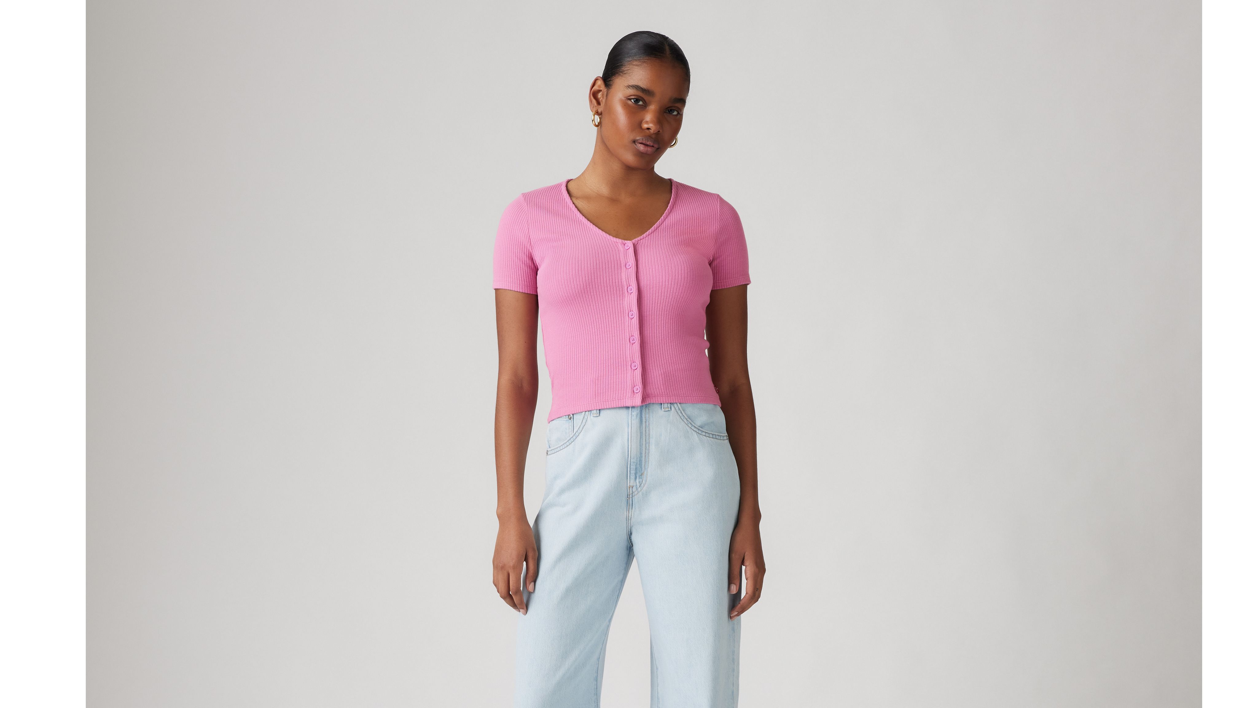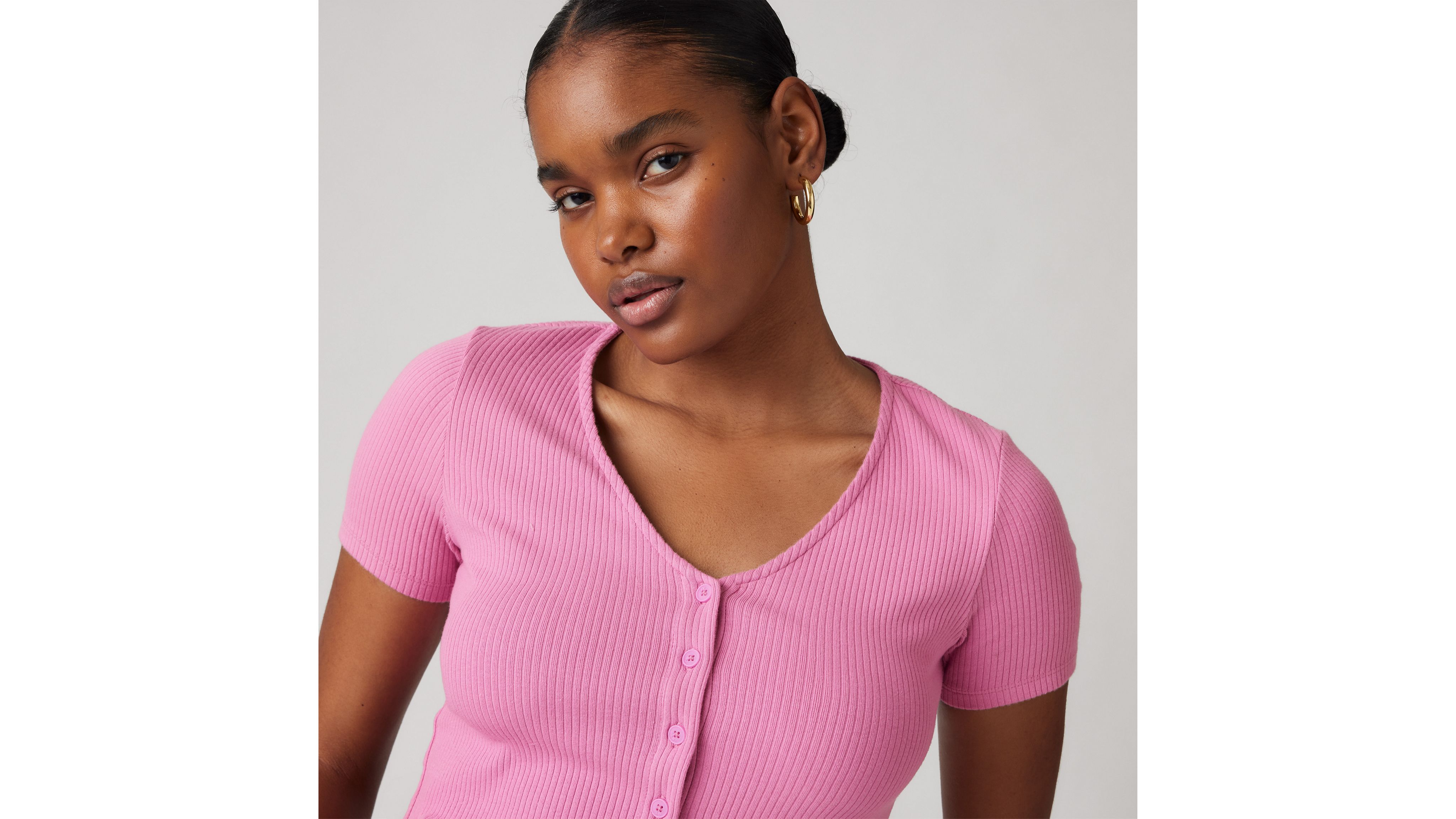 We love a top that does it all. Part cardigan, part everyday knit, our Muse Short-Sleeve Tee features a flattering V-neckline, a button-up front and a body-hugging slim fit.