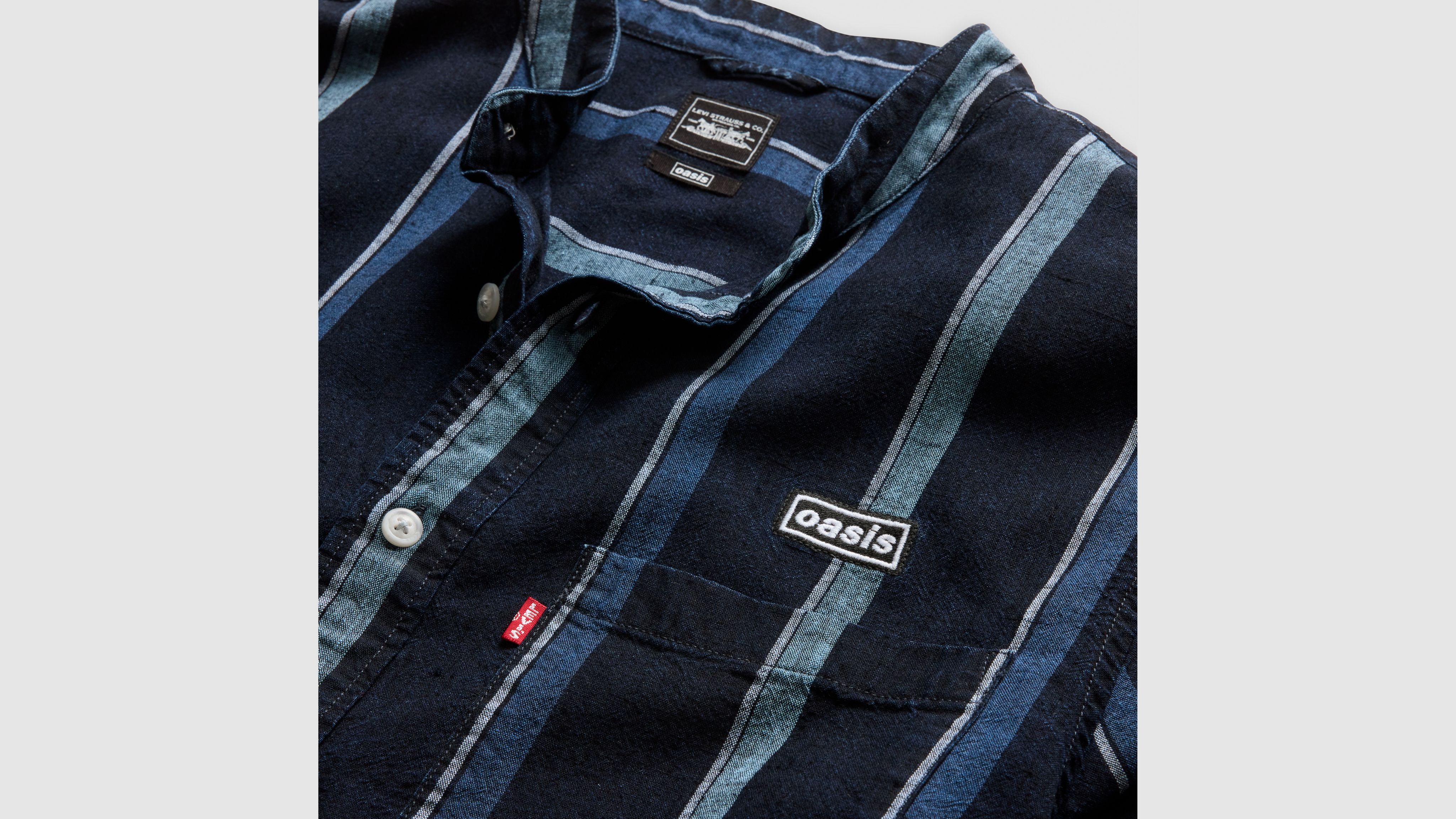 Our Oasis Banded Collar Shirt was created as an homage to some of our favorite music. We made this one with a classic crew neckline, a relaxed fit and an Oasis graphic design.