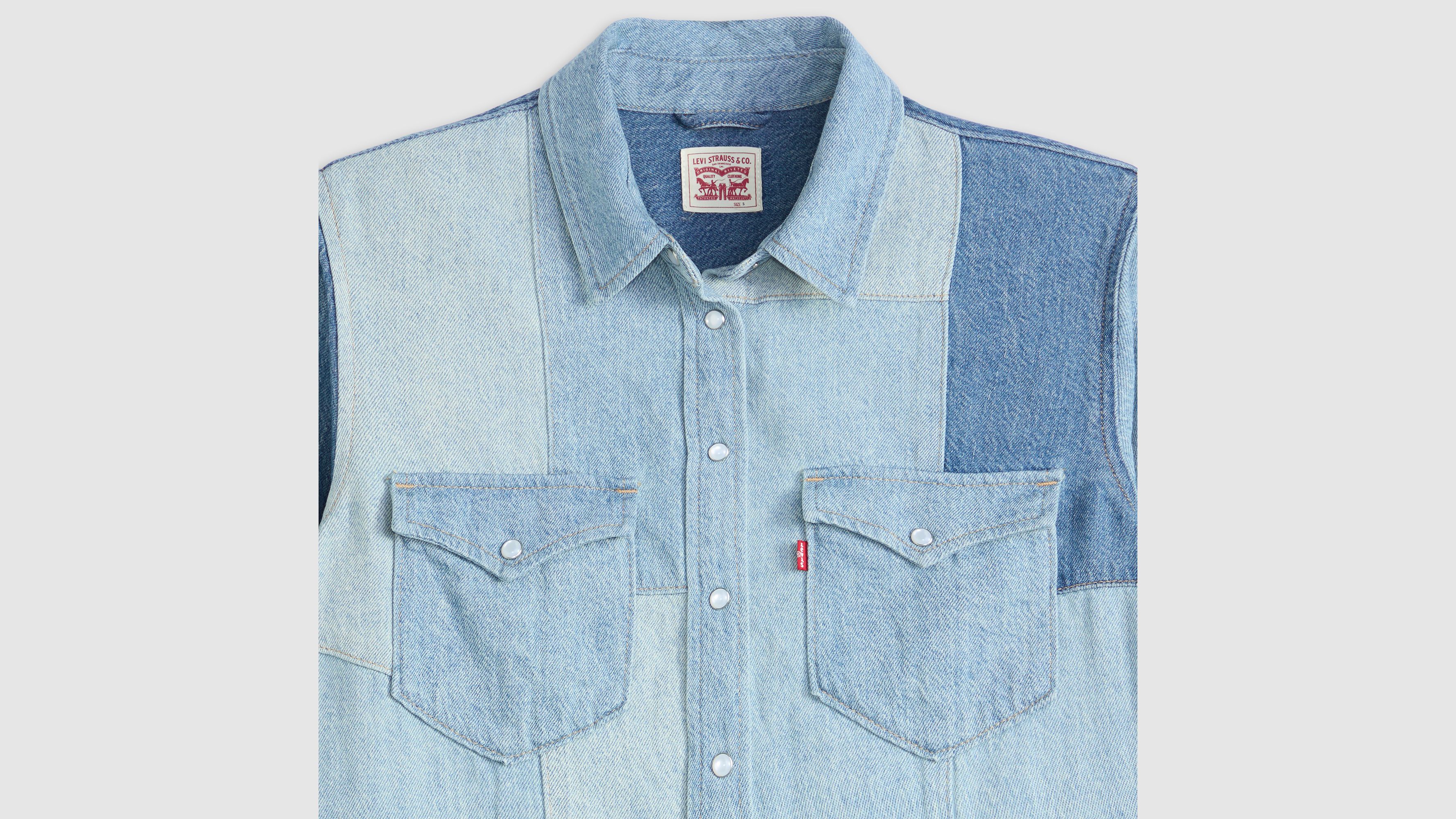 We took the timeless button-up shirt and gave it a special denim patchwork design. Our Patchwork Iconic Western is cut with an easy, standard fit and features a button-up front with two classic chest pockets.