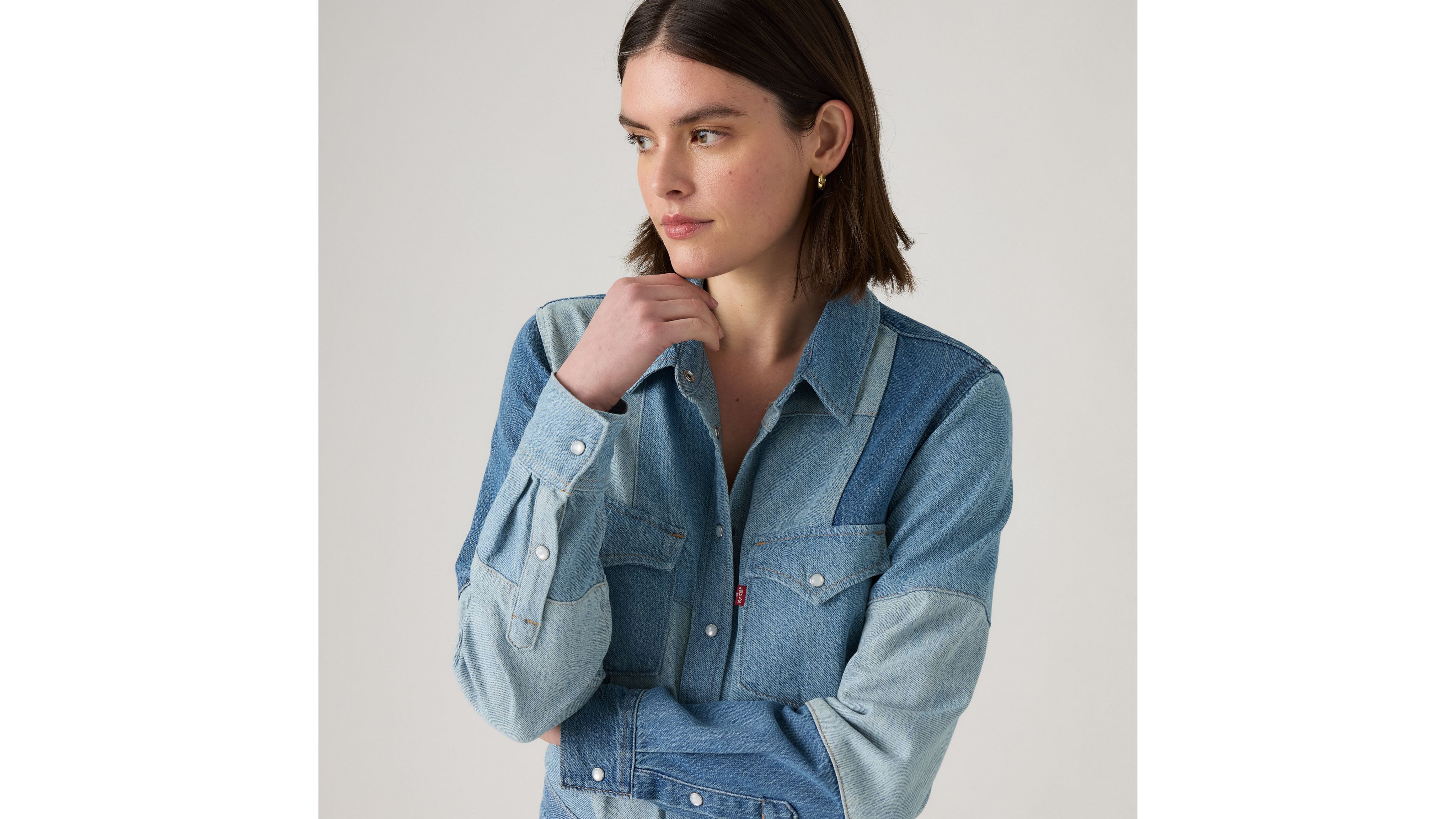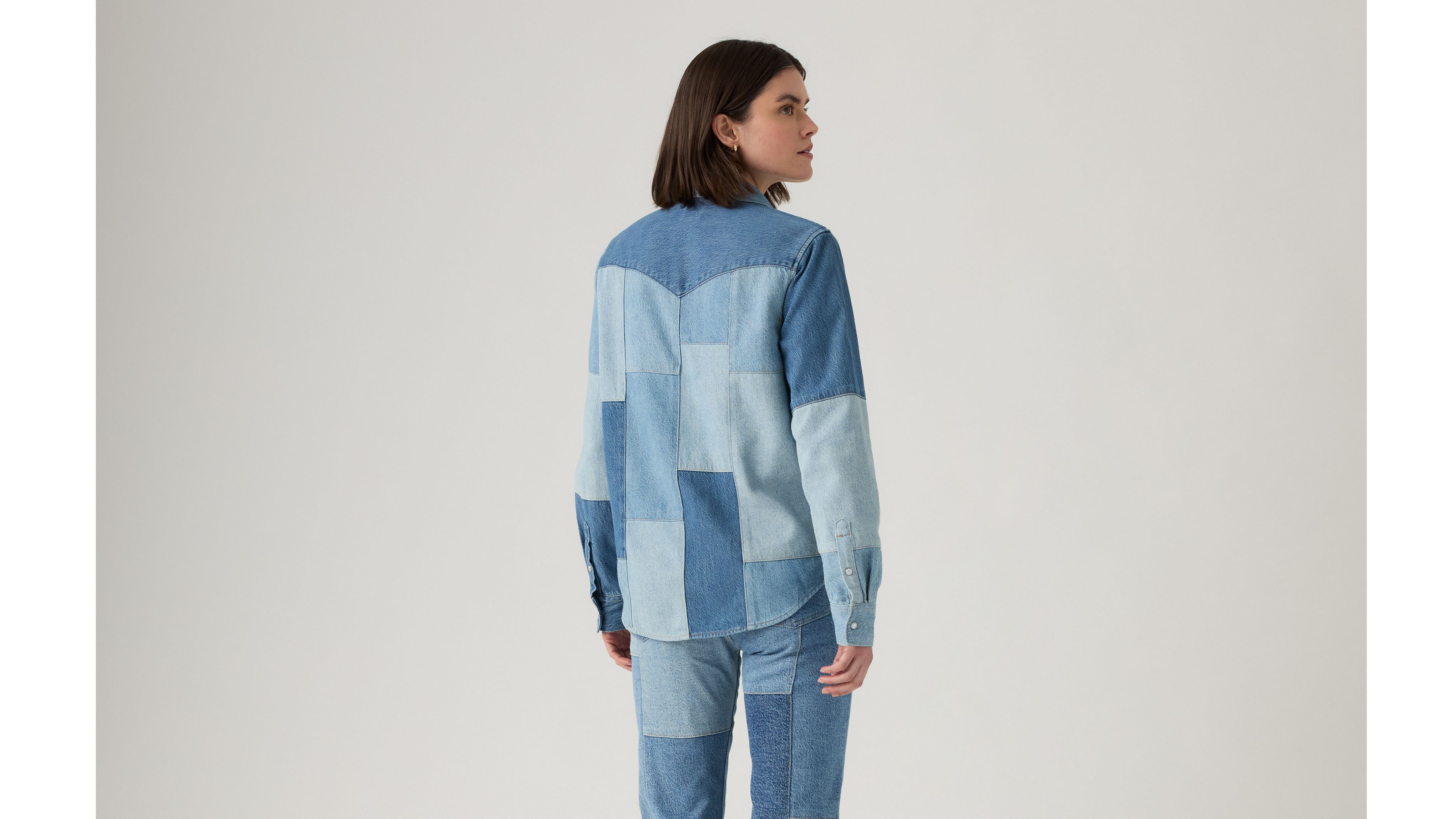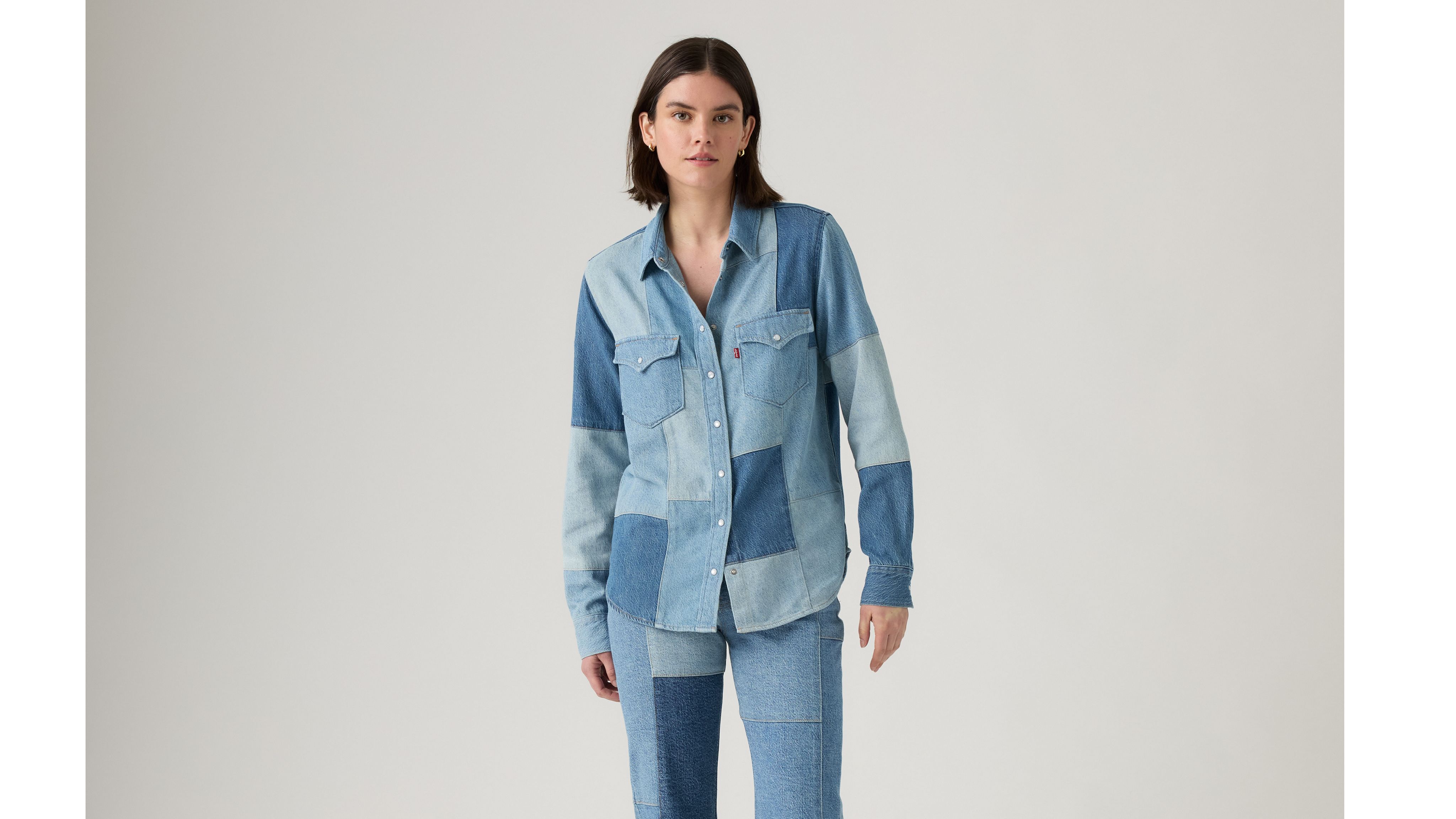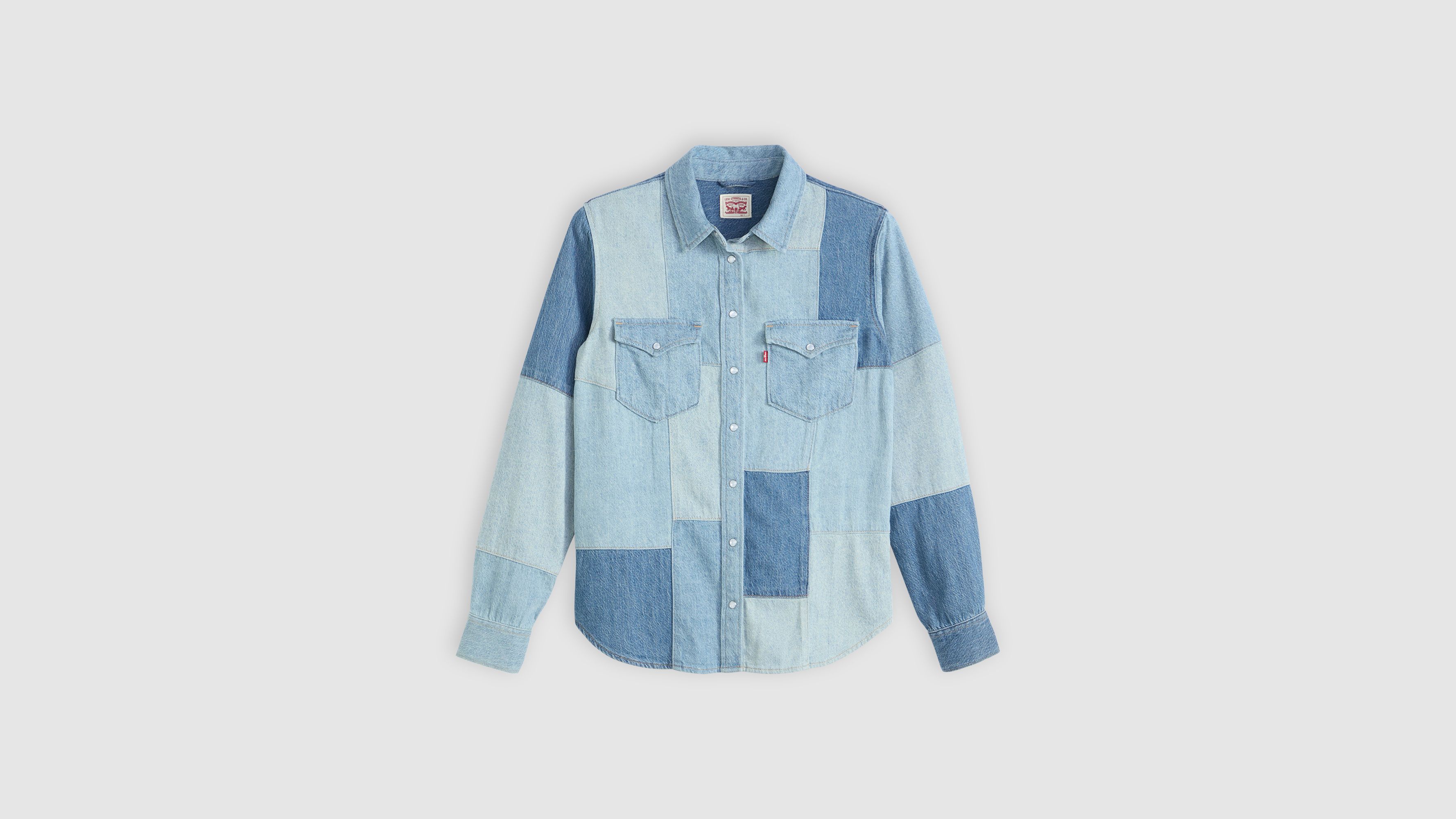 We took the timeless button-up shirt and gave it a special denim patchwork design. Our Patchwork Iconic Western is cut with an easy, standard fit and features a button-up front with two classic chest pockets.
